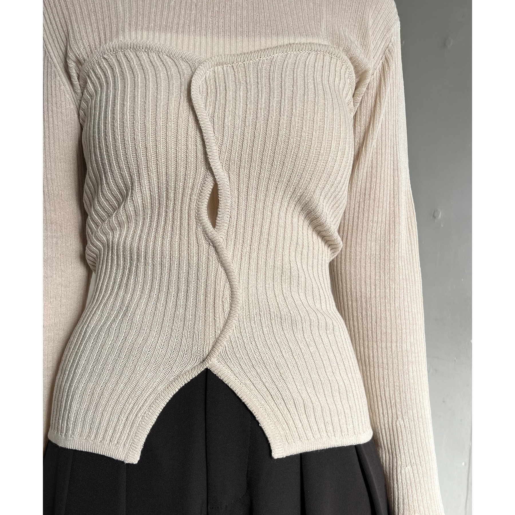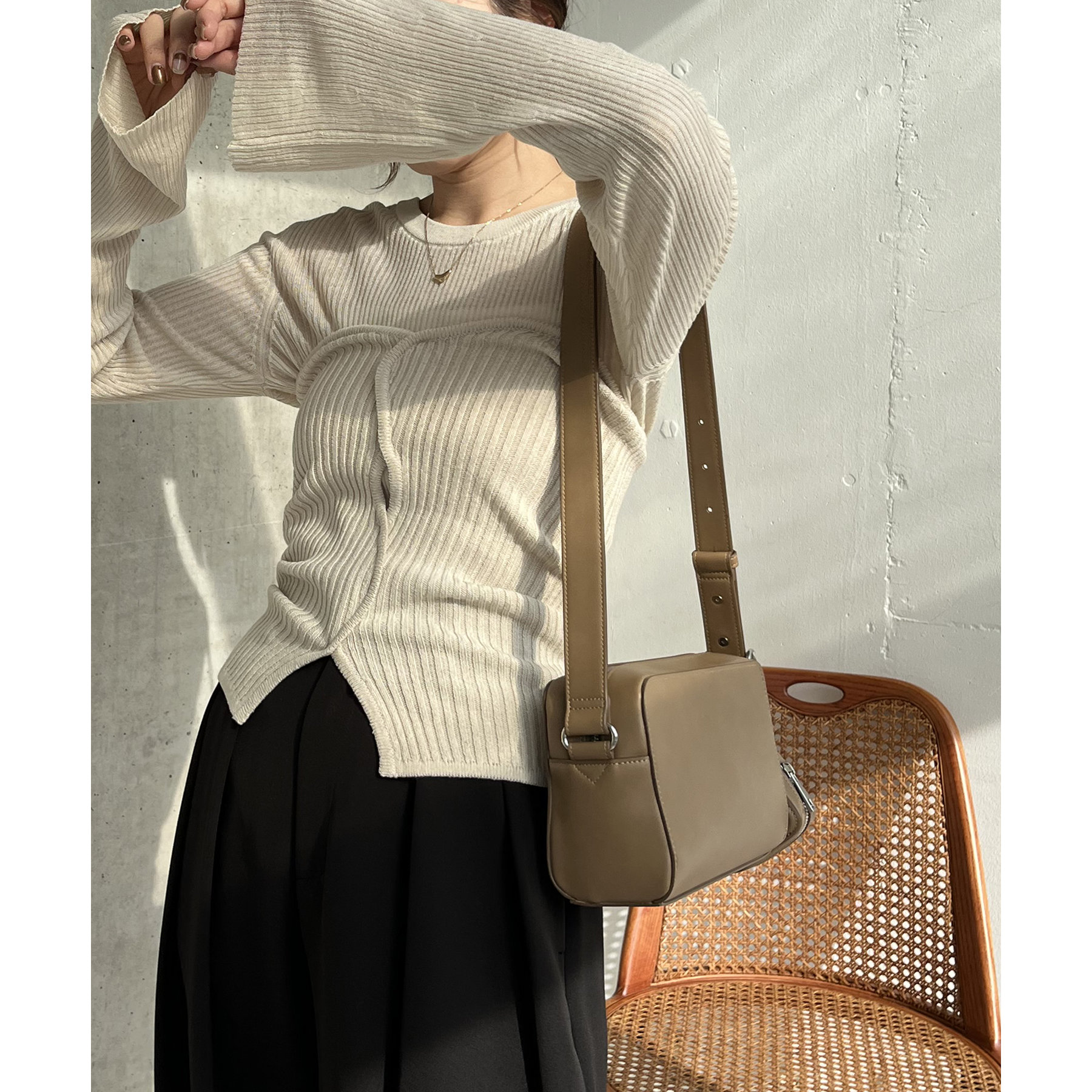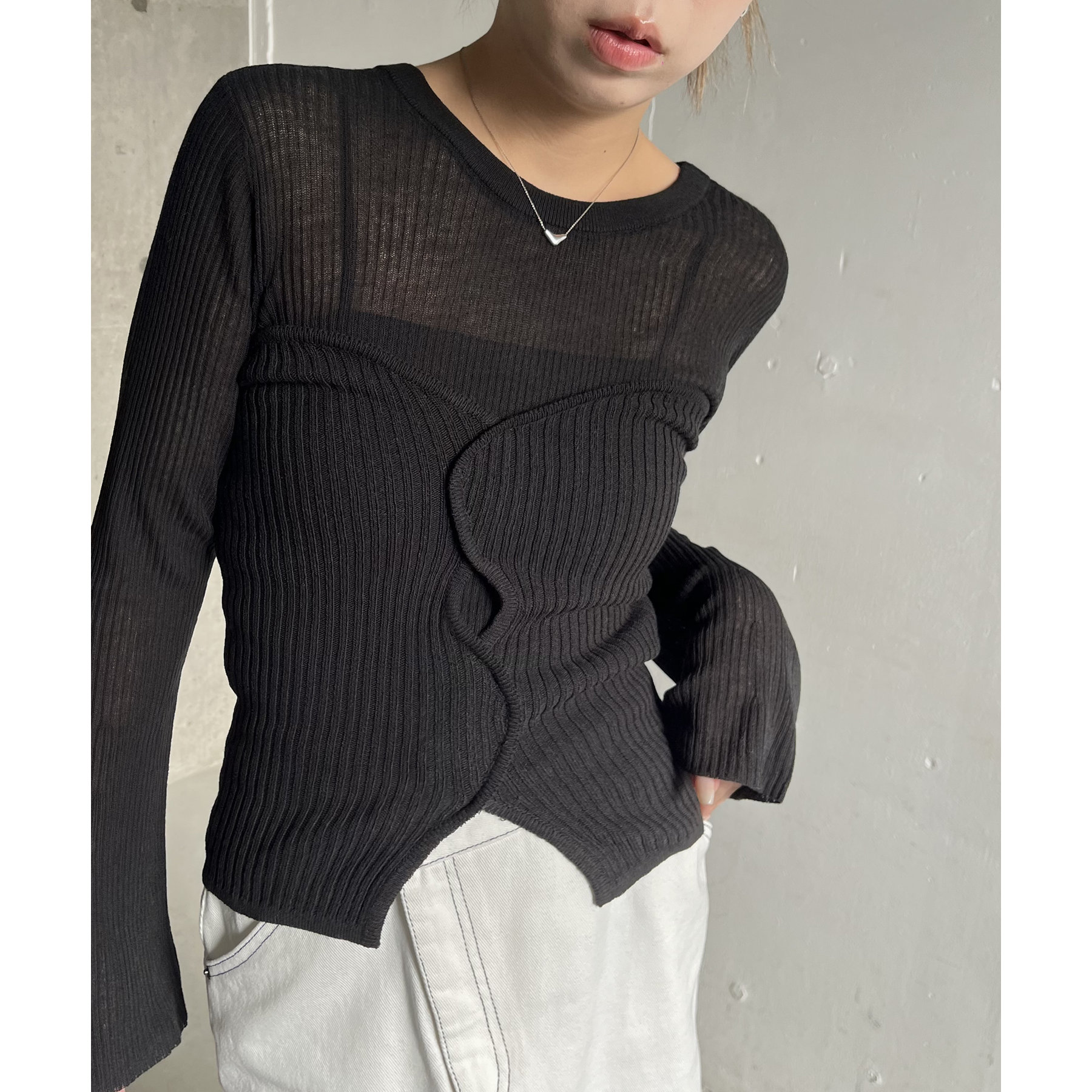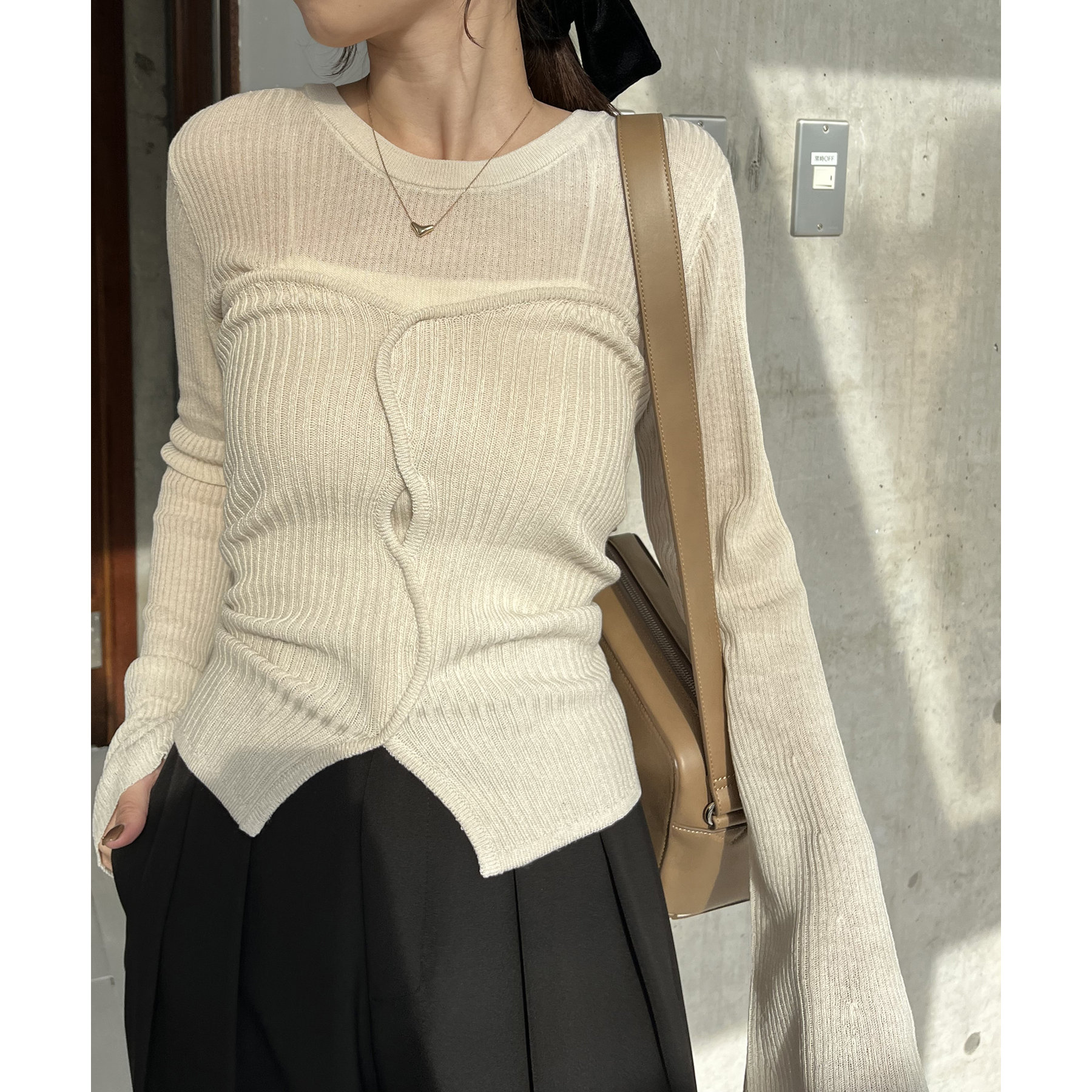 ・太リブのビスチェとシアーニットがセットになったお得なデザインニット