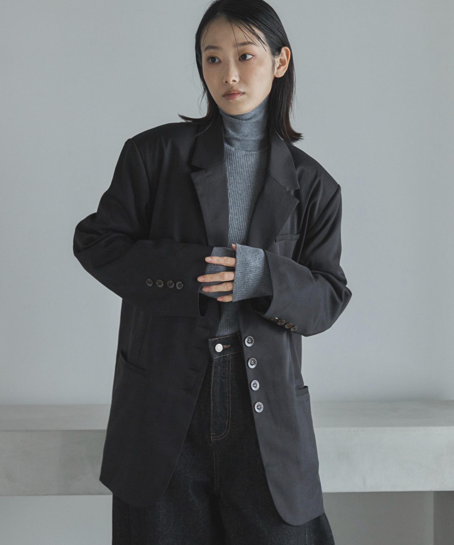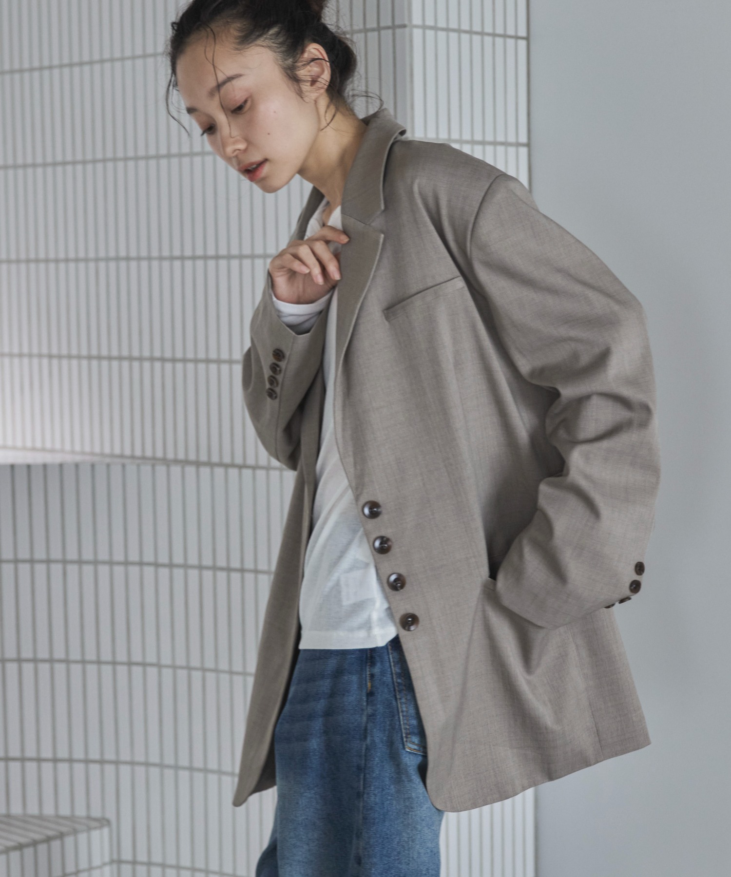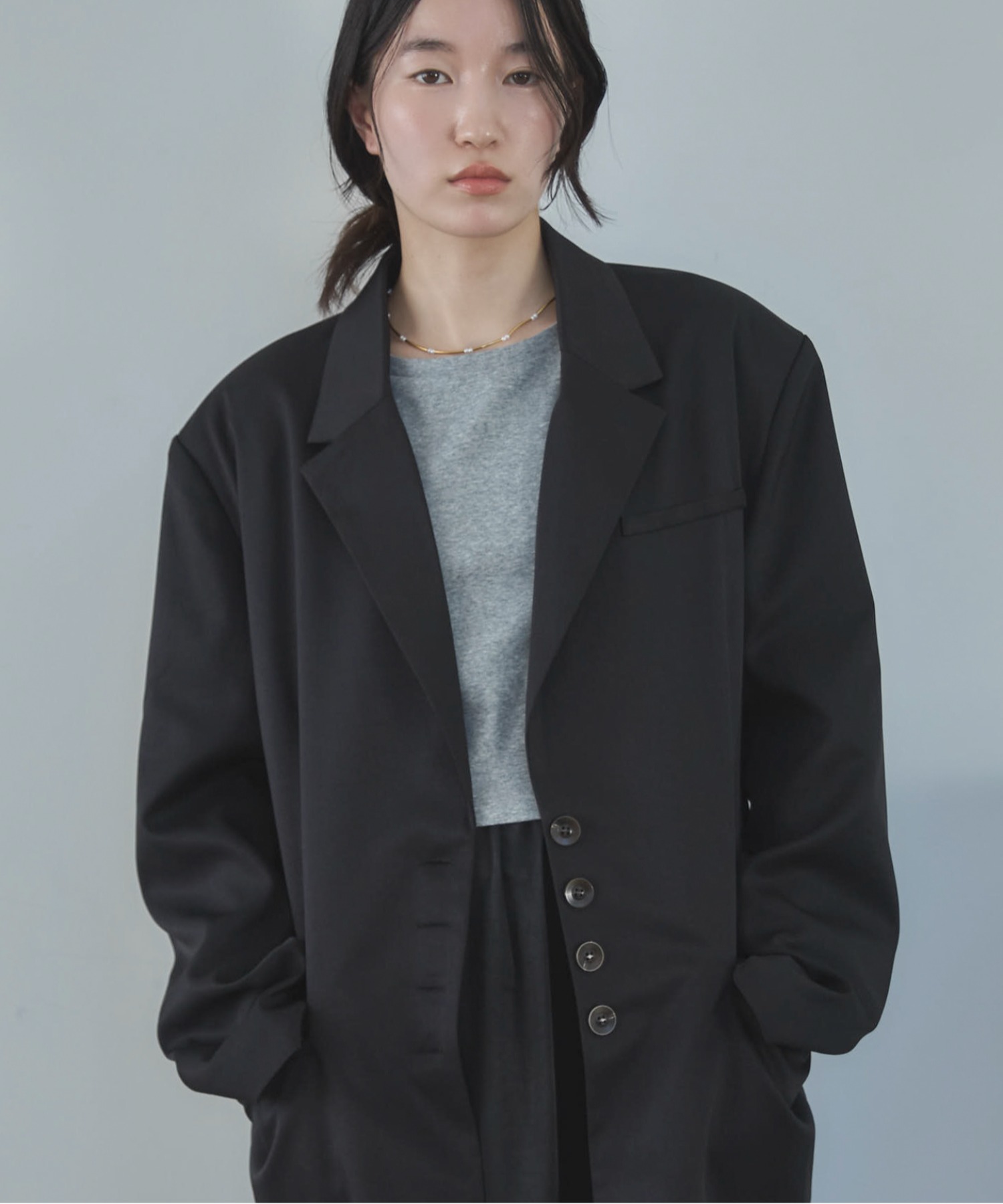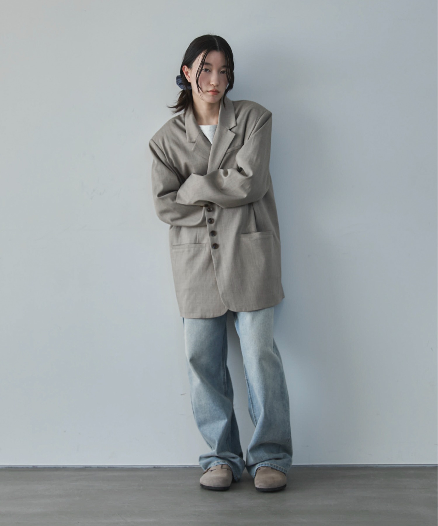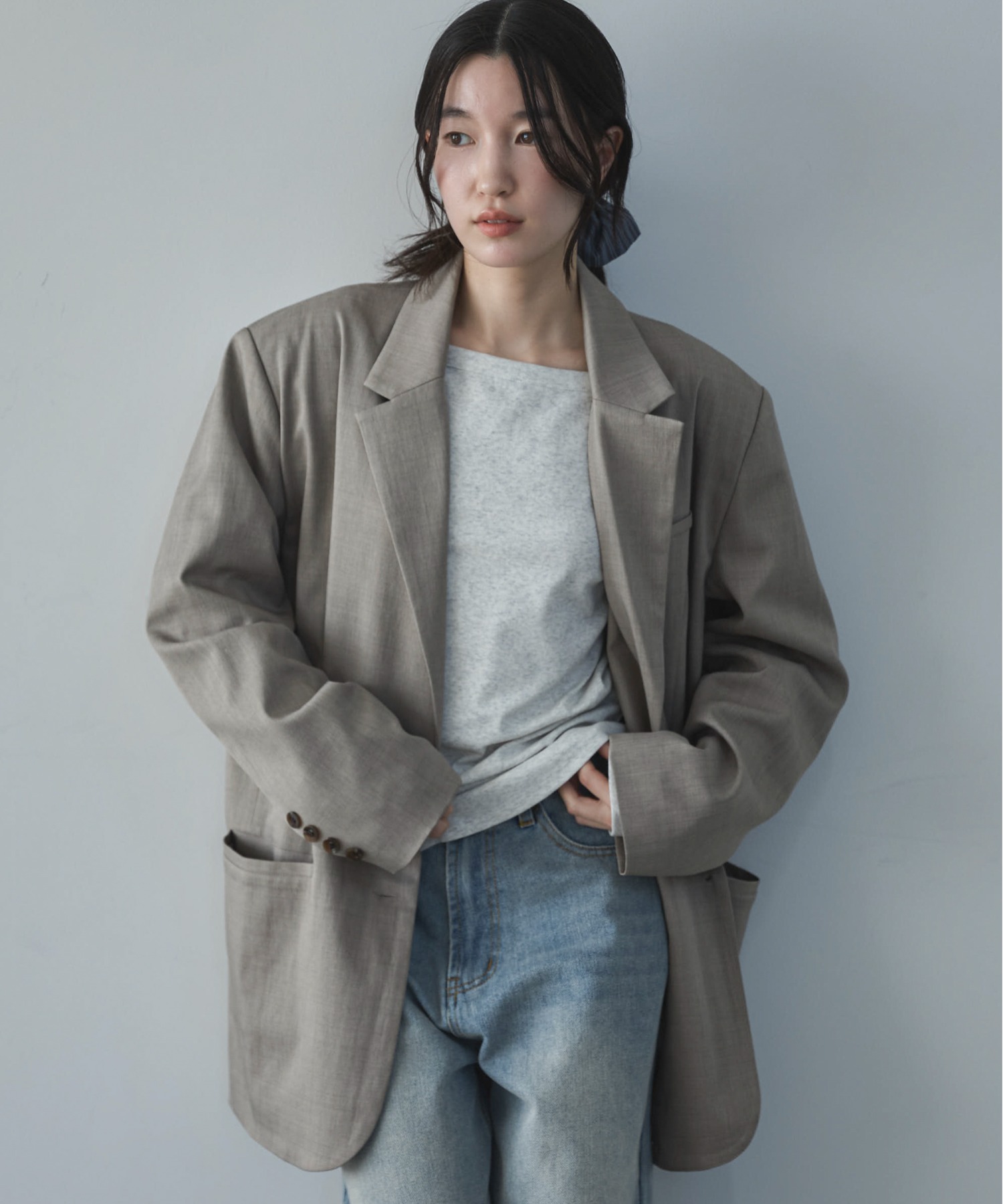 トレンドのオーバーサイズが最大の魅力で、程よい厚みの肩パッドも採用◎ハンサムなスタイリングの叶う一着です。
