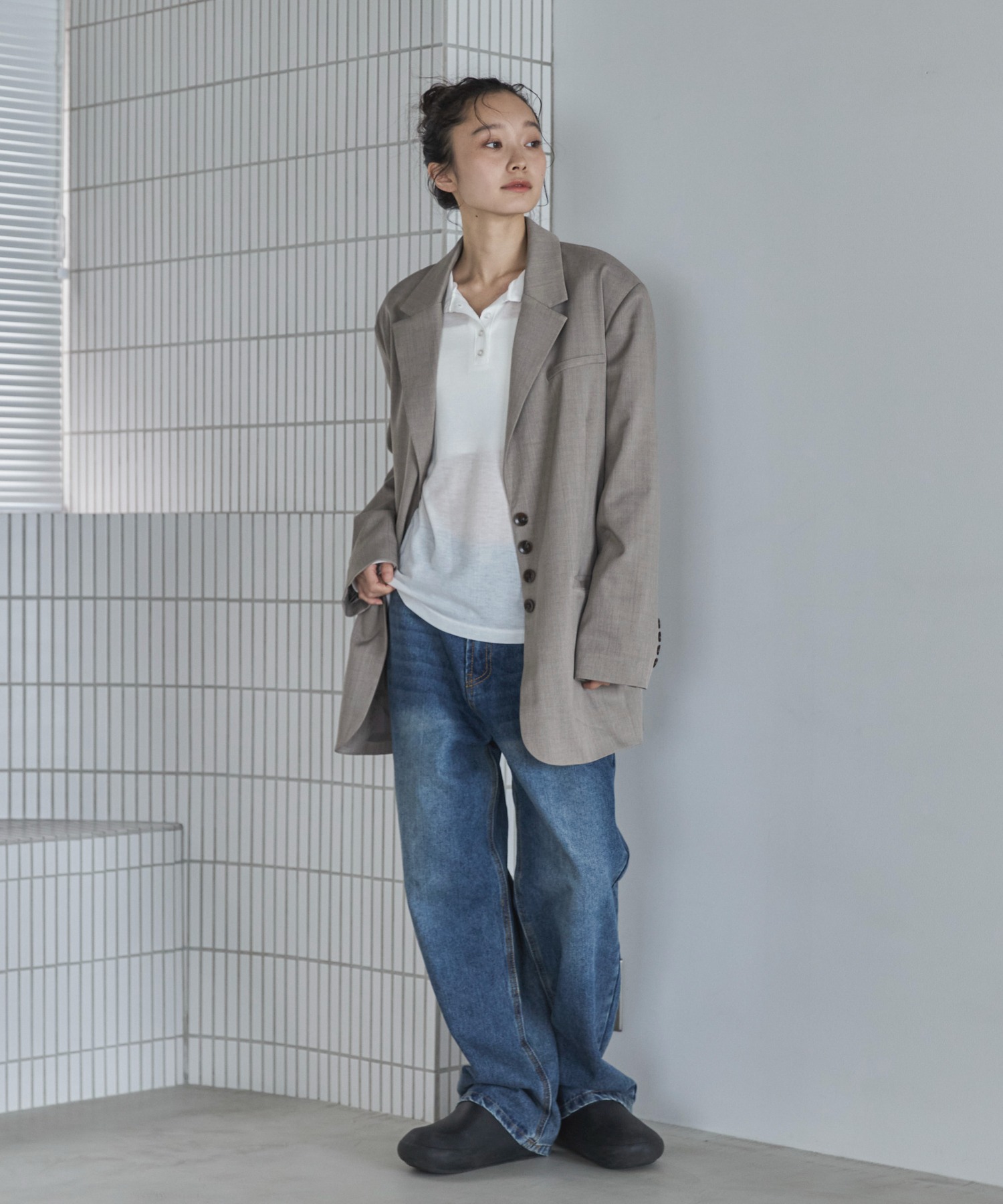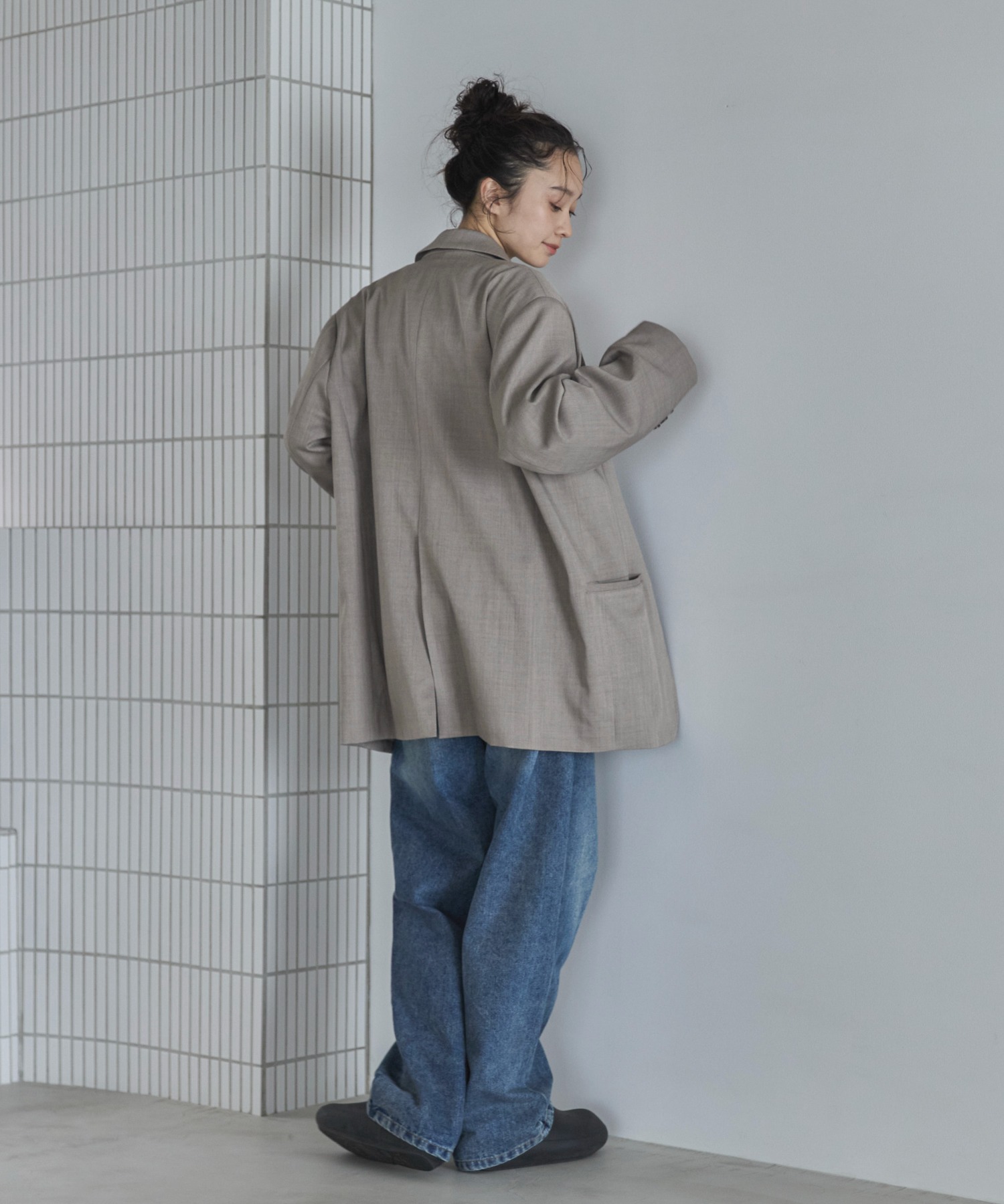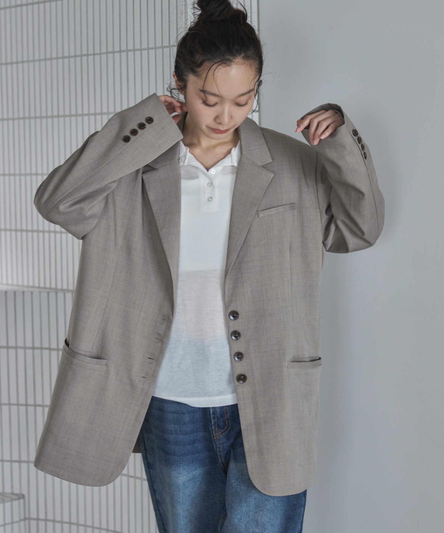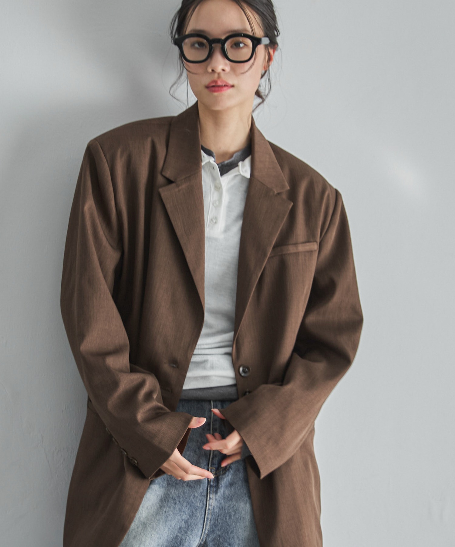 トレンドのオーバーサイズが最大の魅力で、程よい厚みの肩パッドも採用◎ハンサムなスタイリングの叶う一着です。