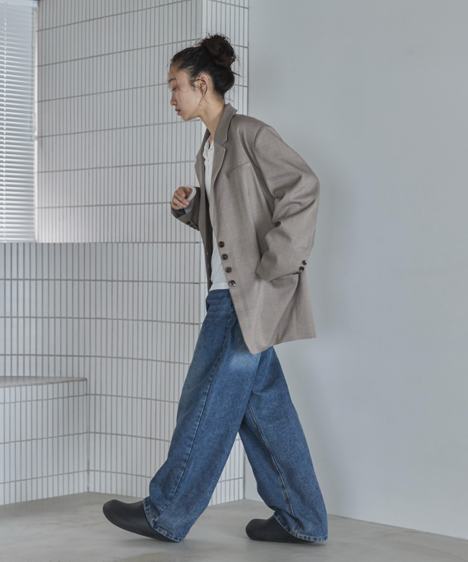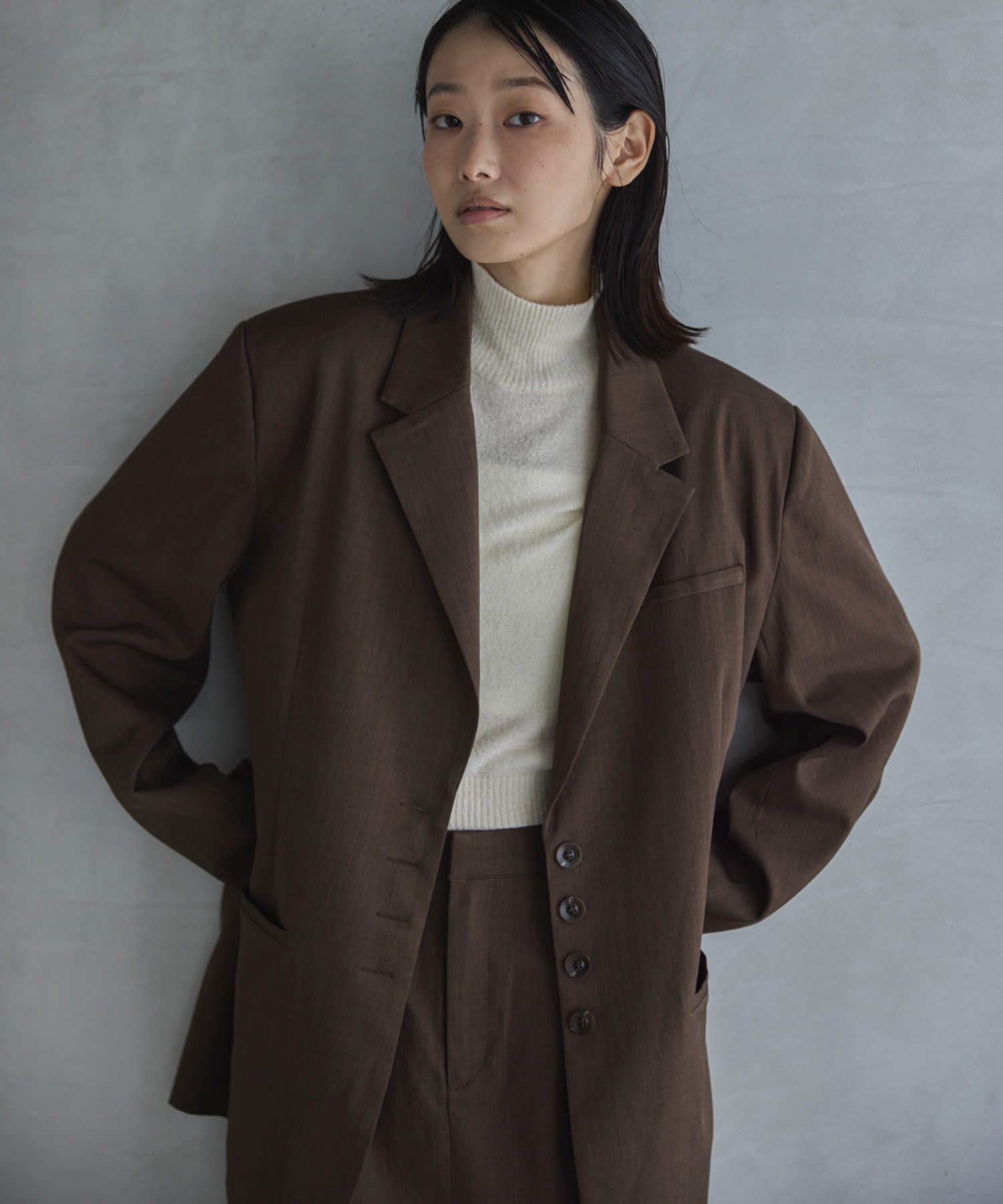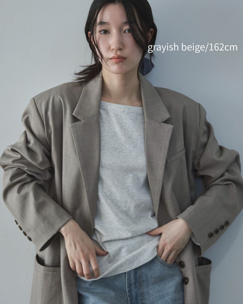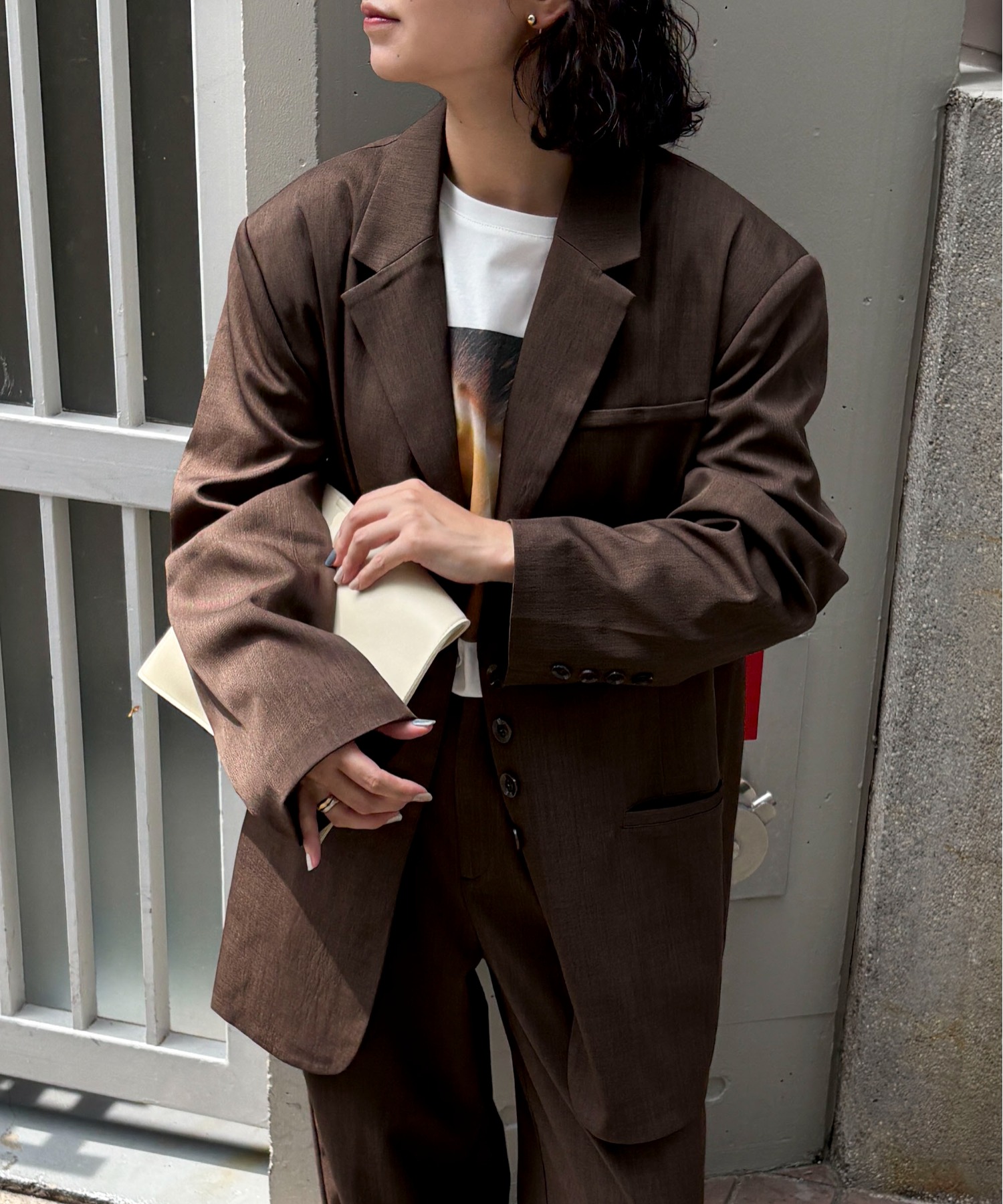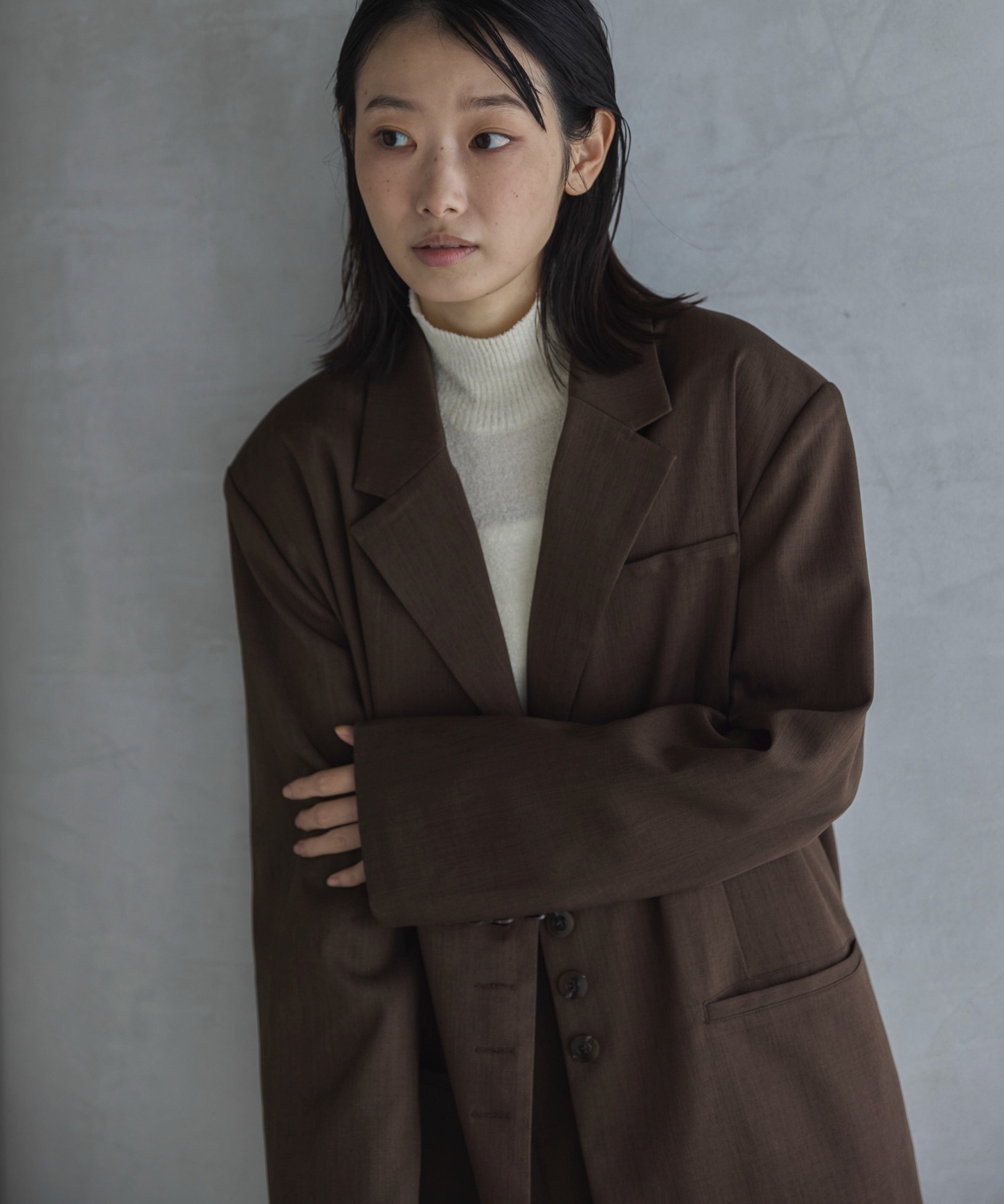 トレンドのオーバーサイズが最大の魅力で、程よい厚みの肩パッドも採用◎ハンサムなスタイリングの叶う一着です。