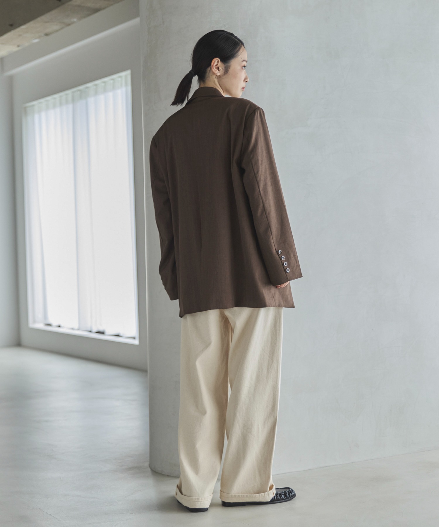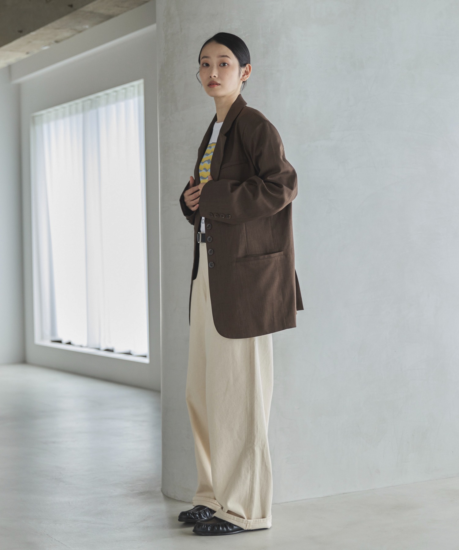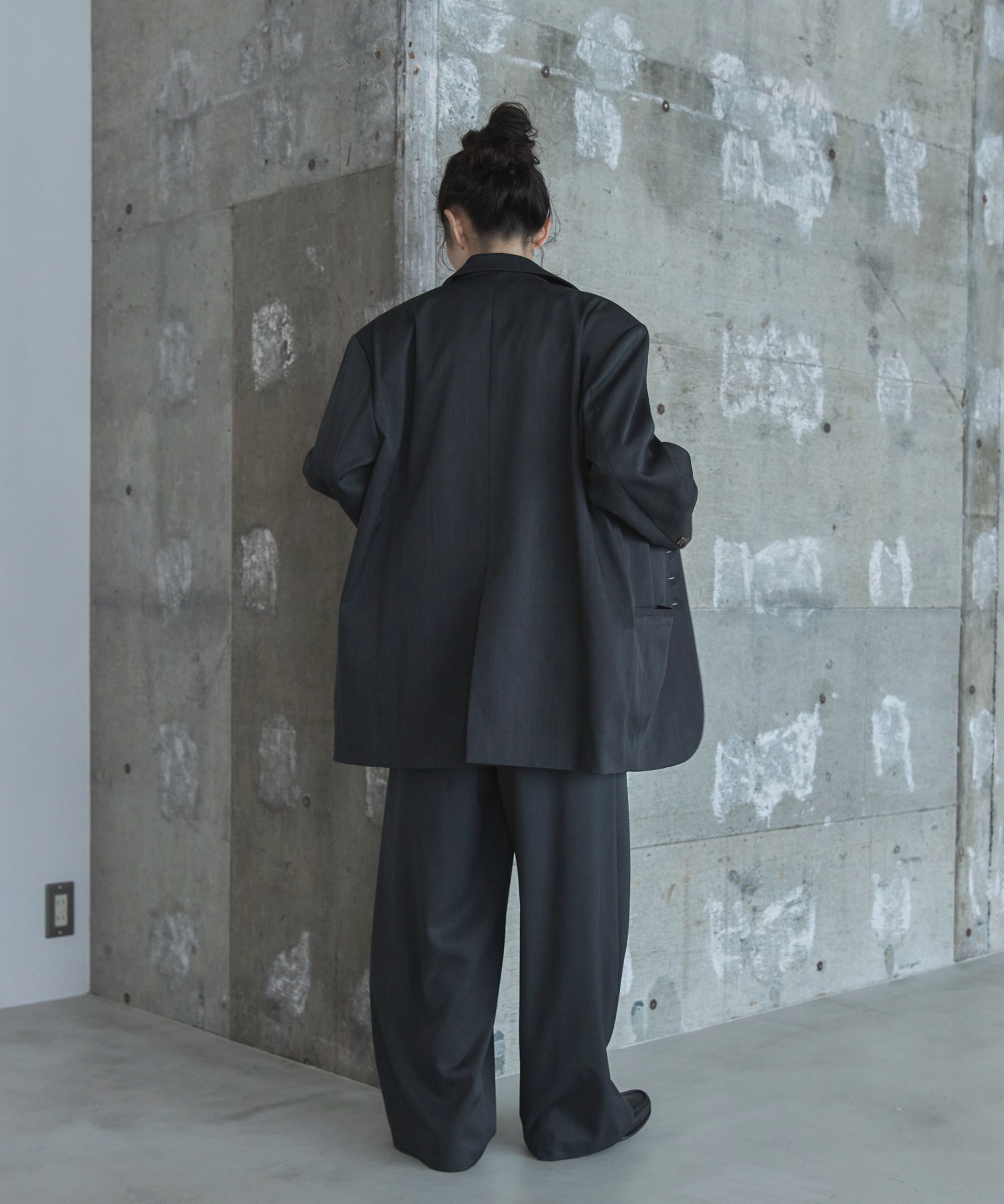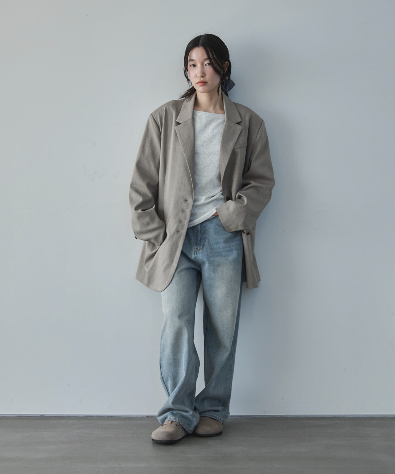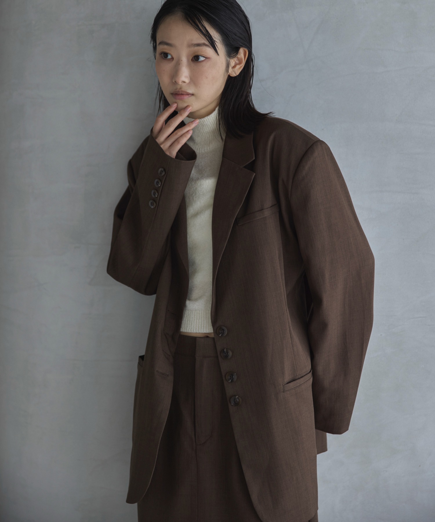 トレンドのオーバーサイズが最大の魅力で、程よい厚みの肩パッドも採用◎ハンサムなスタイリングの叶う一着です。