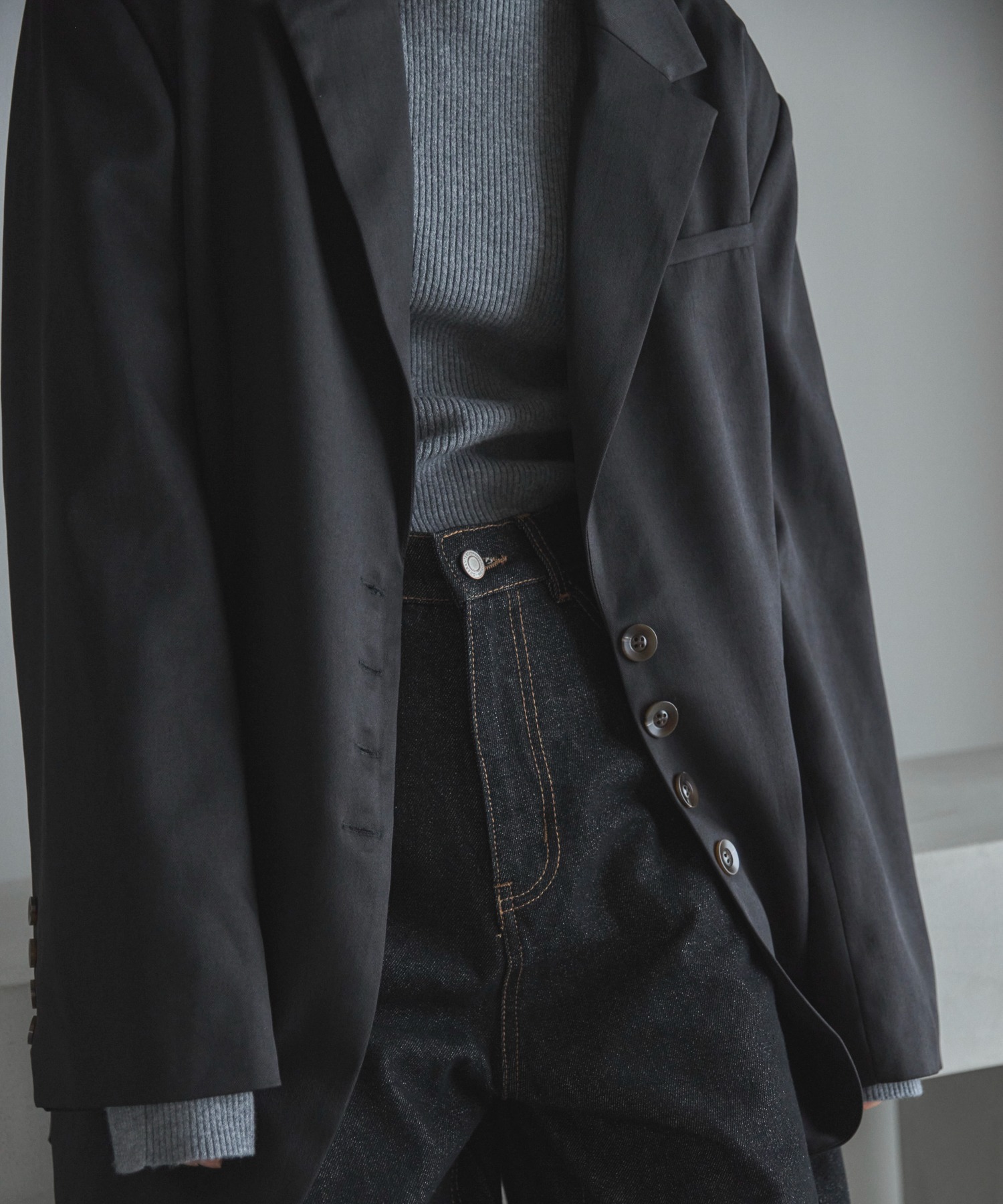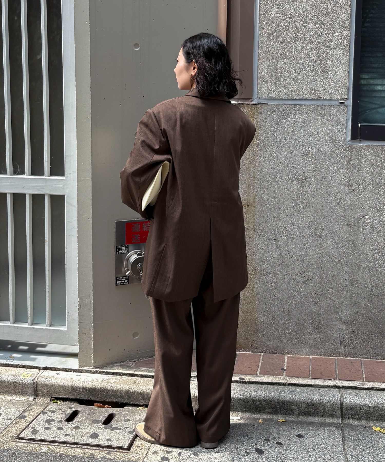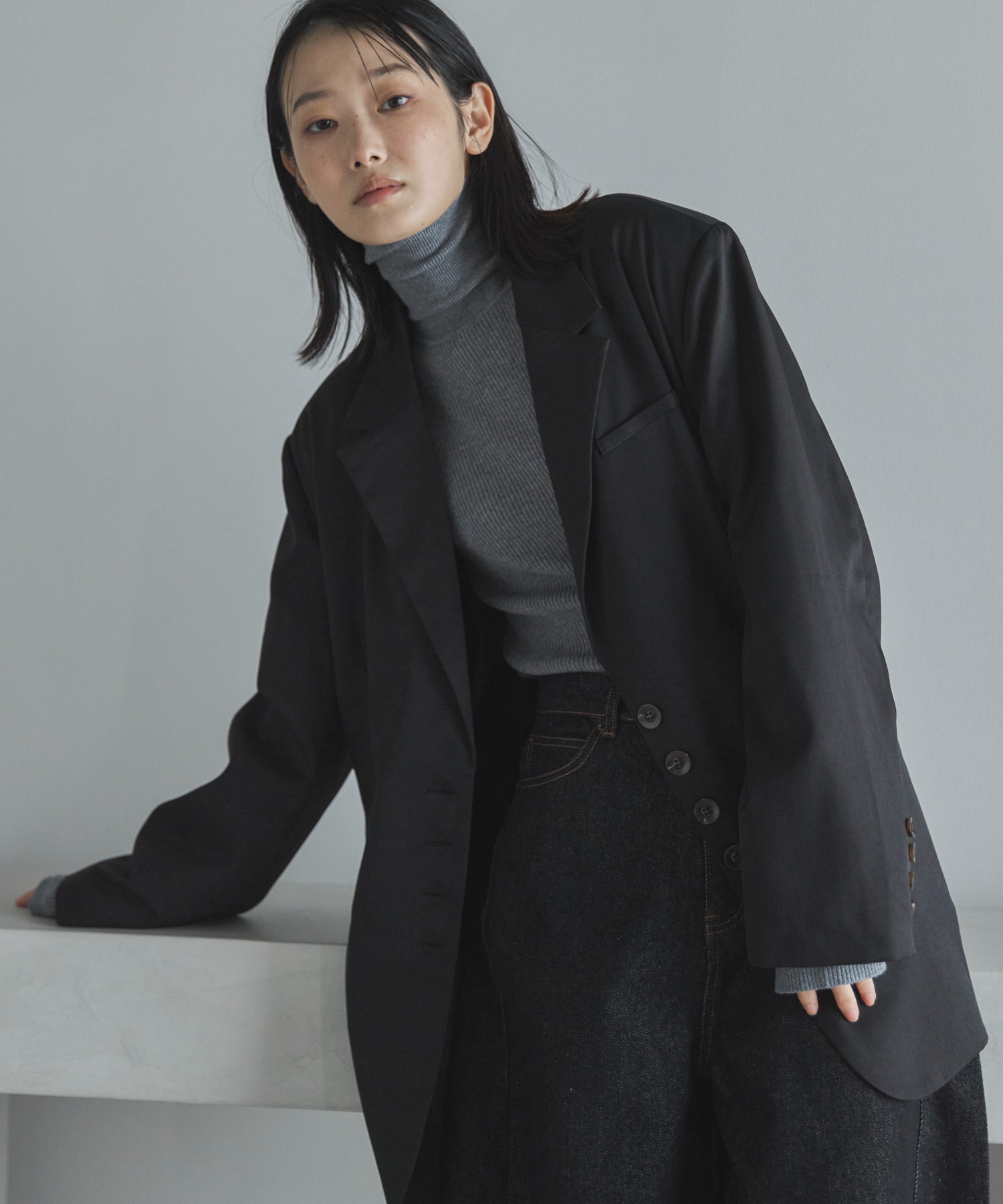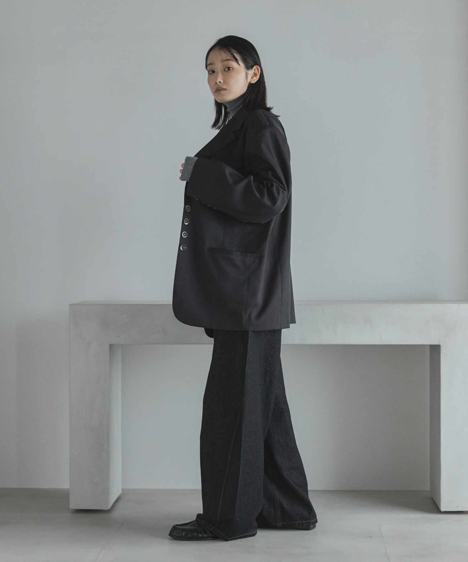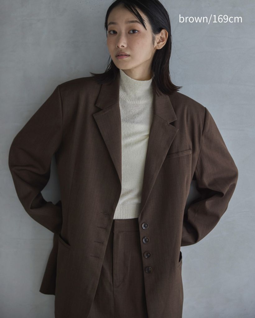 トレンドのオーバーサイズが最大の魅力で、程よい厚みの肩パッドも採用◎ハンサムなスタイリングの叶う一着です。