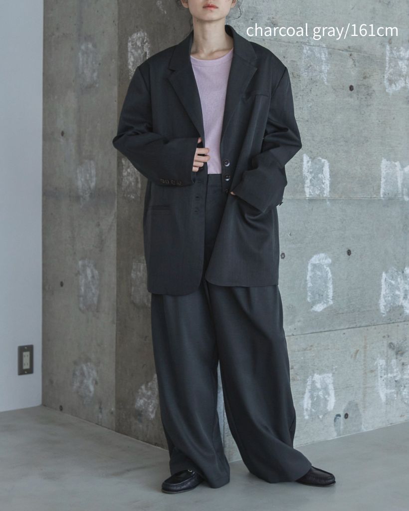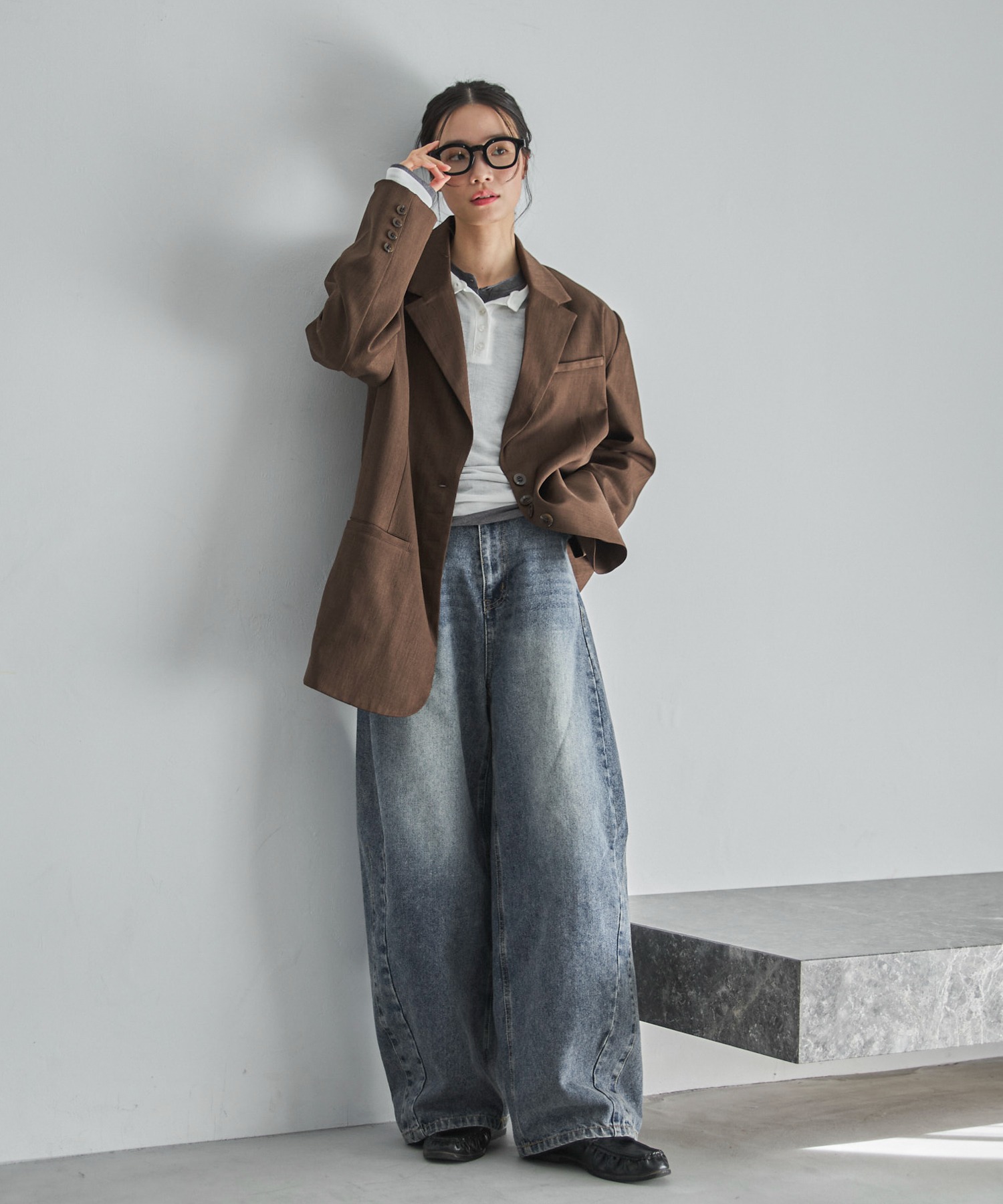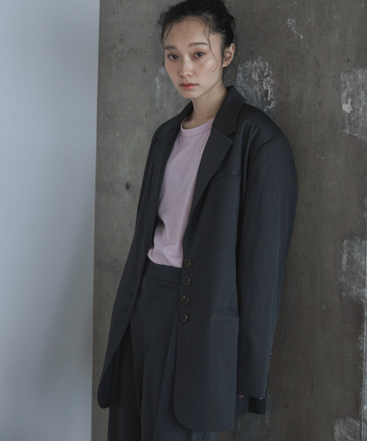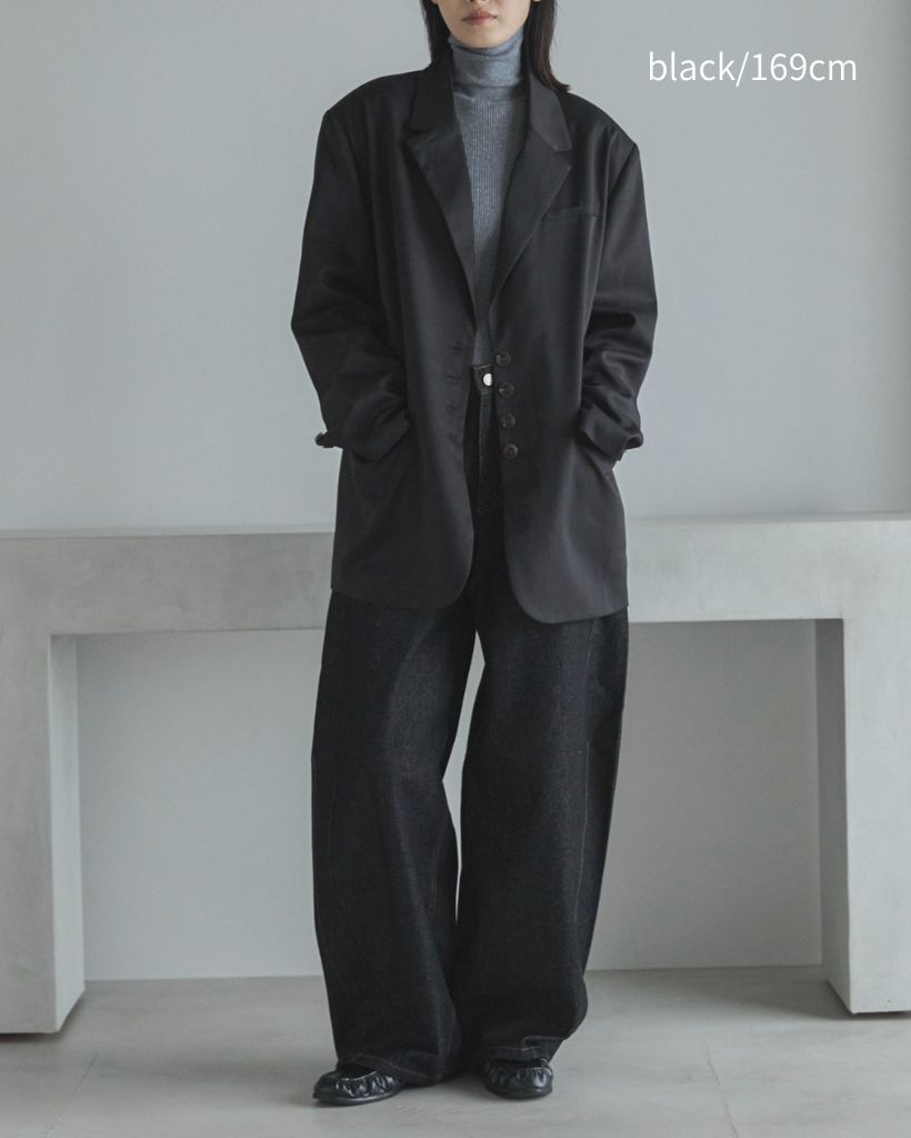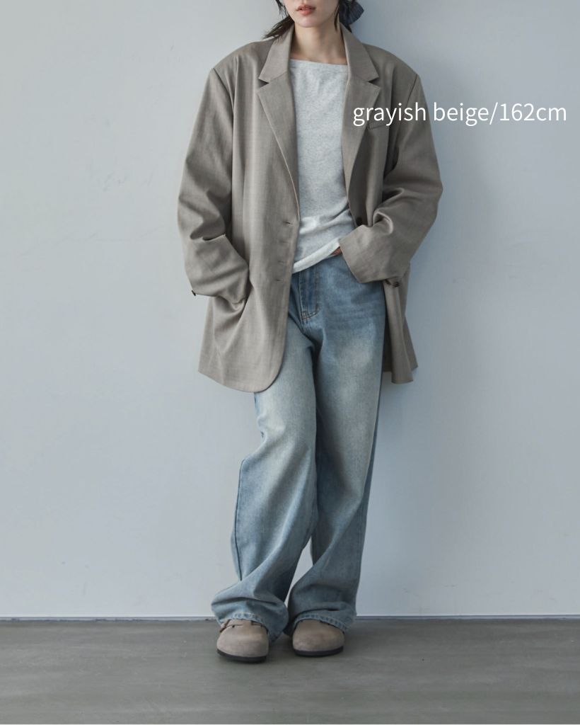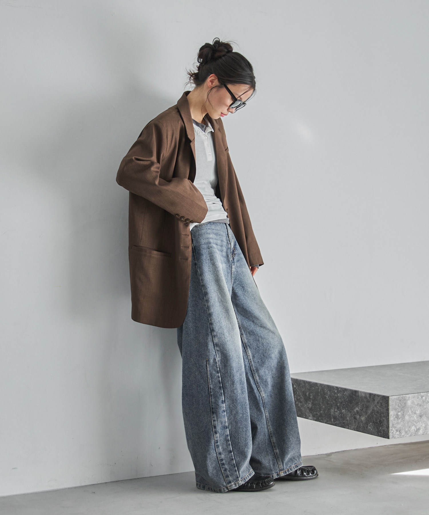 トレンドのオーバーサイズが最大の魅力で、程よい厚みの肩パッドも採用◎ハンサムなスタイリングの叶う一着です。