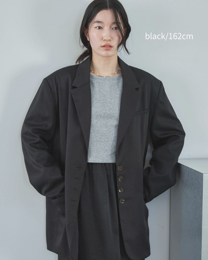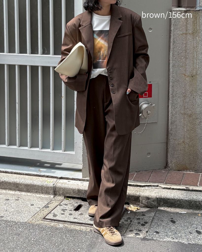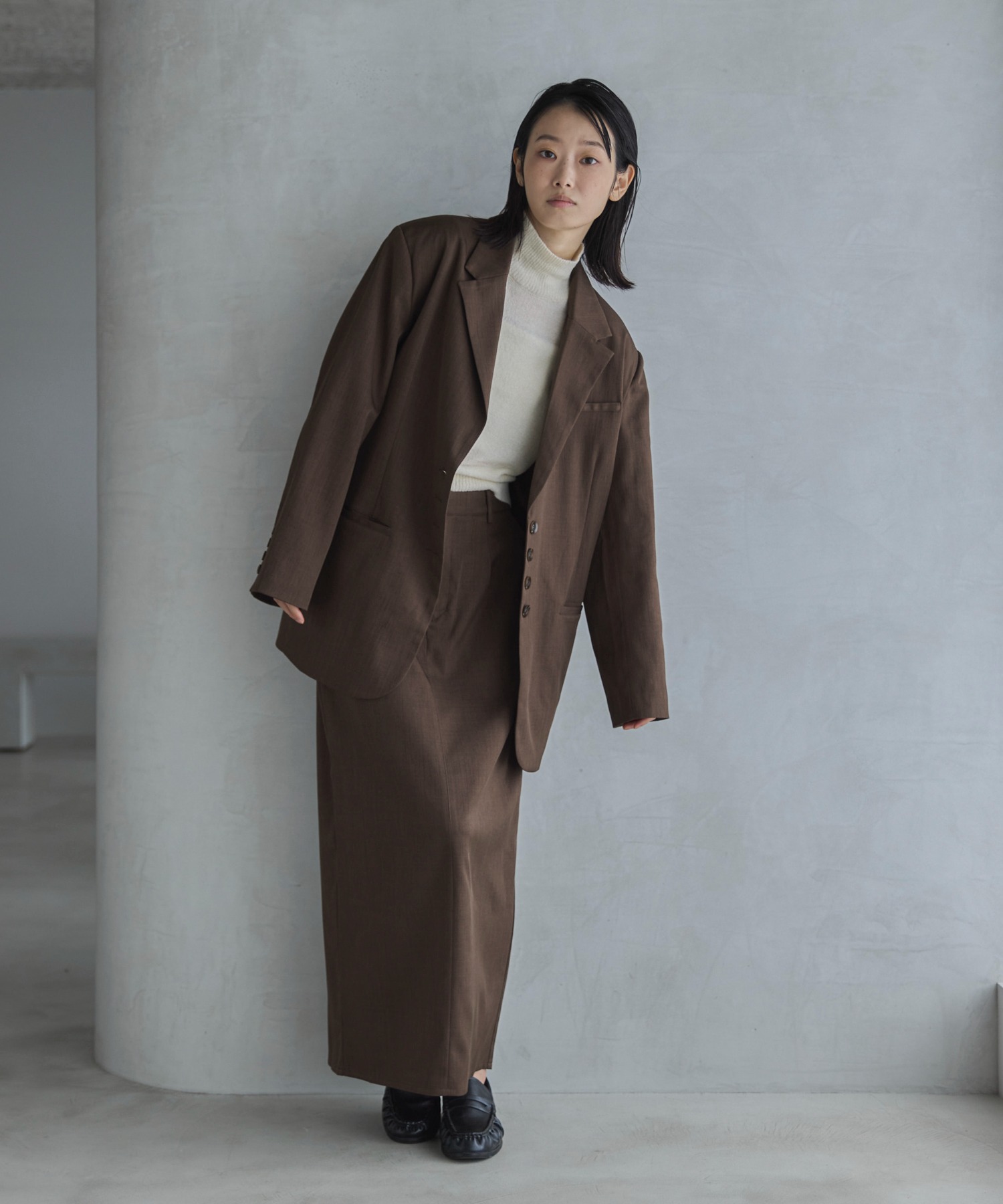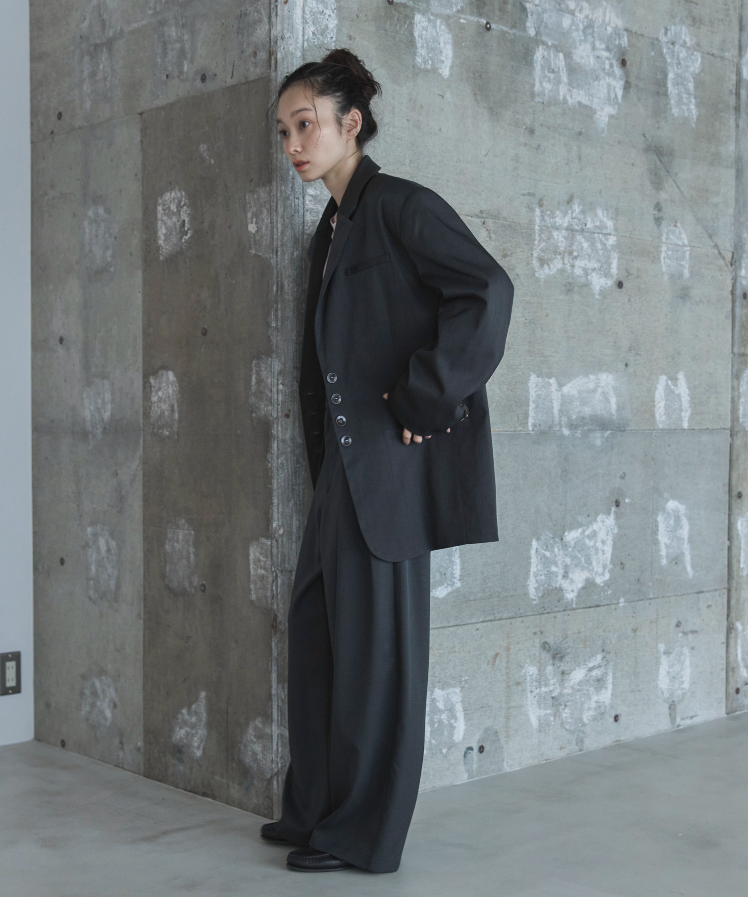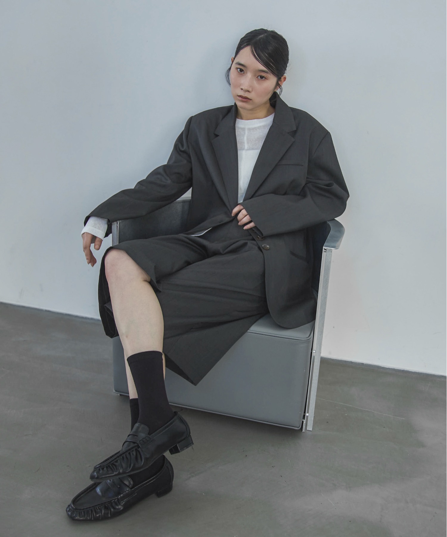 トレンドのオーバーサイズが最大の魅力で、程よい厚みの肩パッドも採用◎ハンサムなスタイリングの叶う一着です。