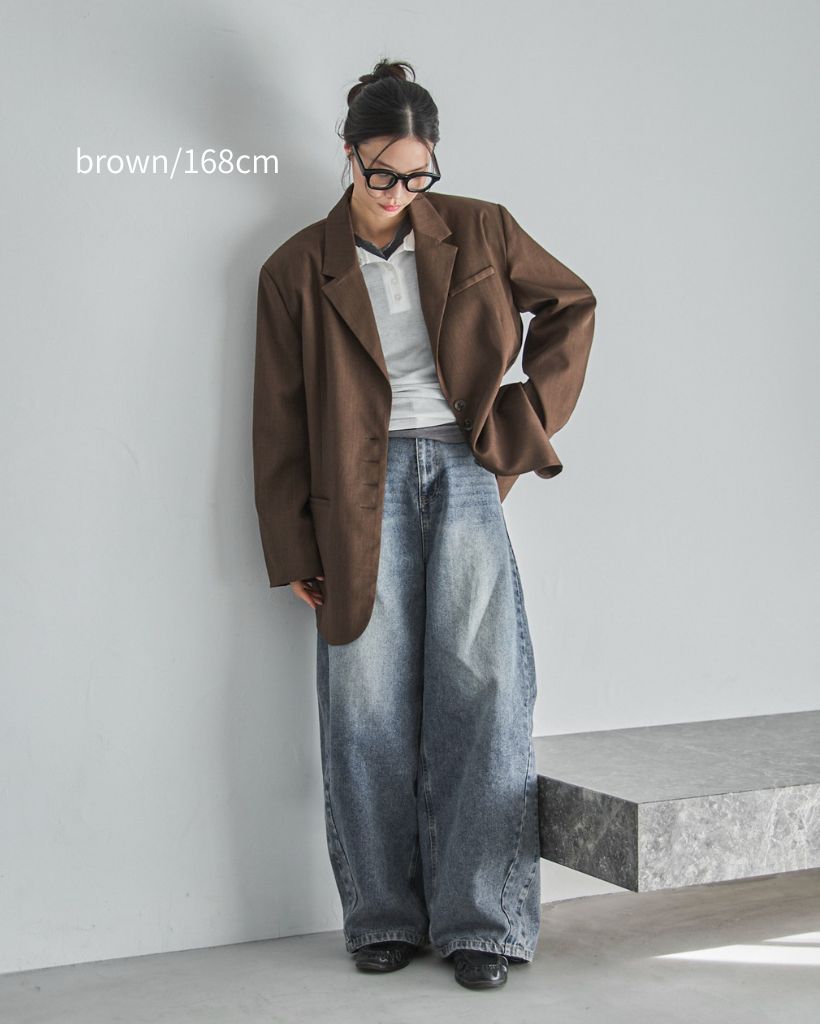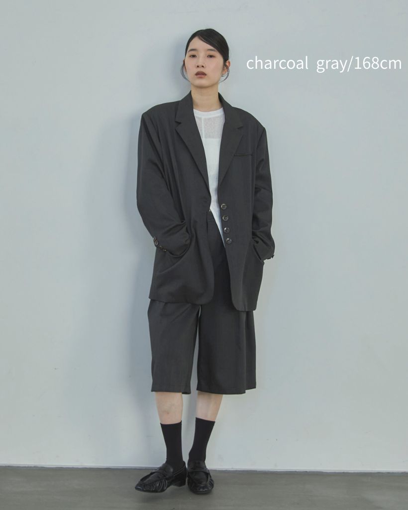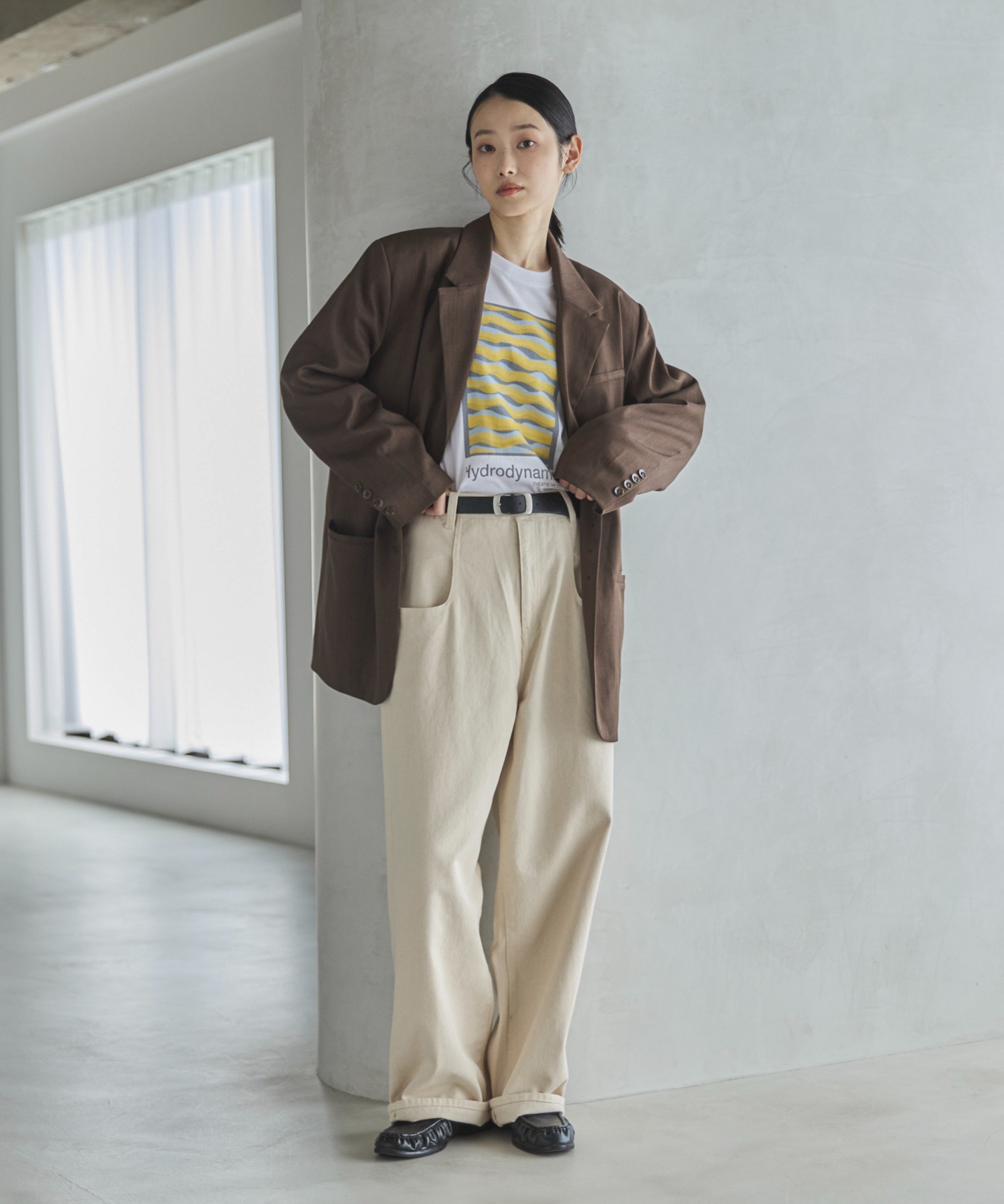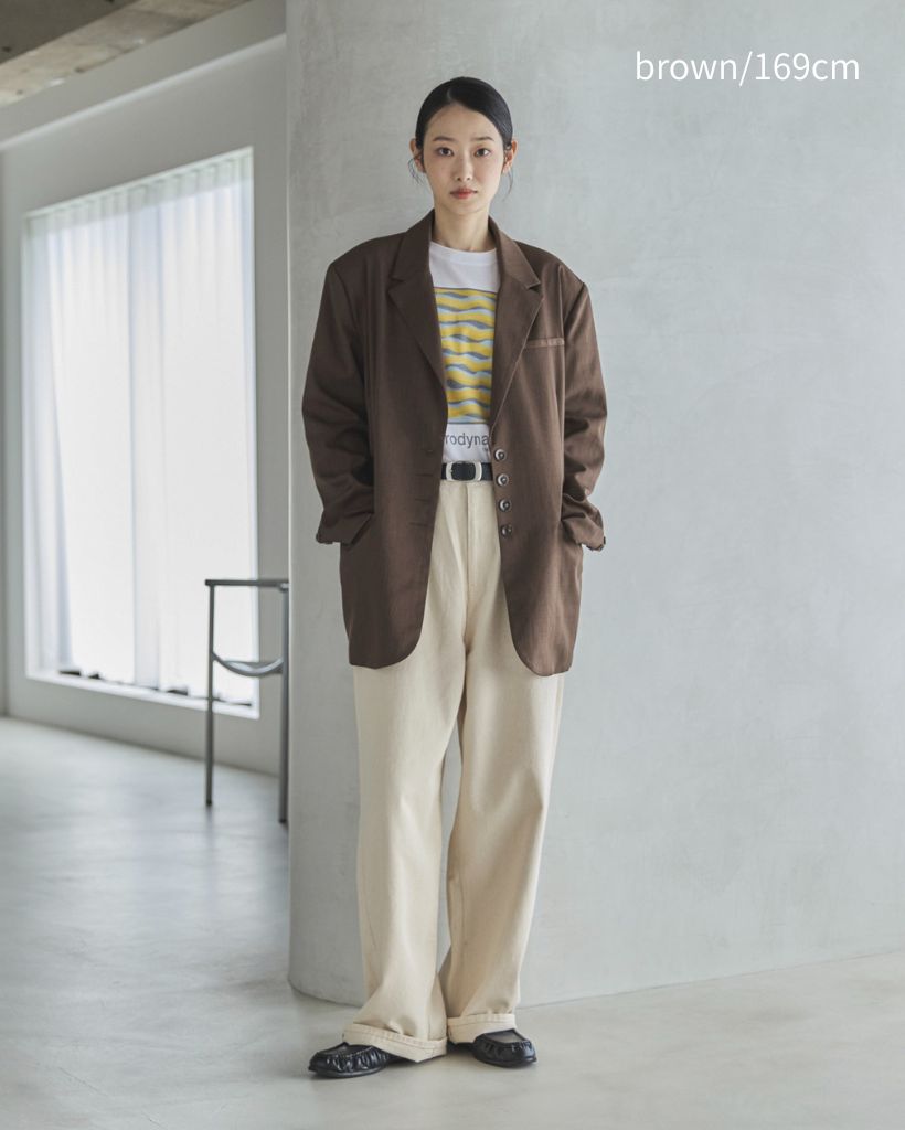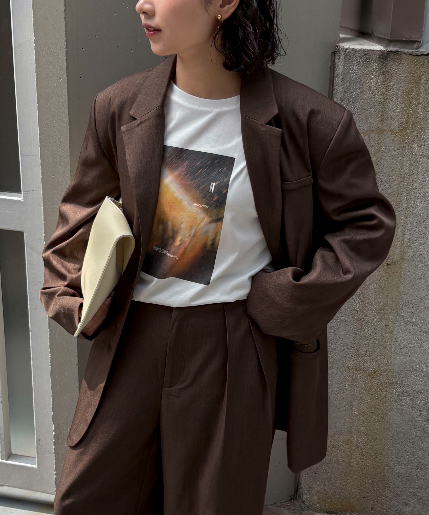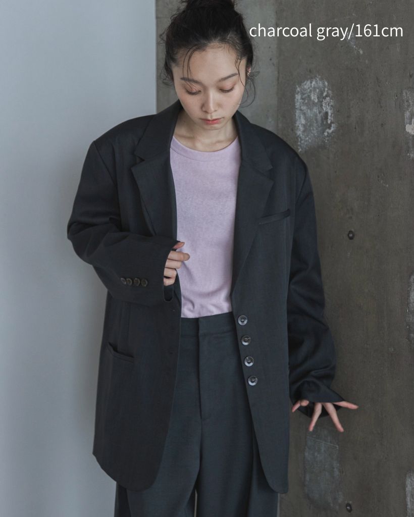 トレンドのオーバーサイズが最大の魅力で、程よい厚みの肩パッドも採用◎ハンサムなスタイリングの叶う一着です。