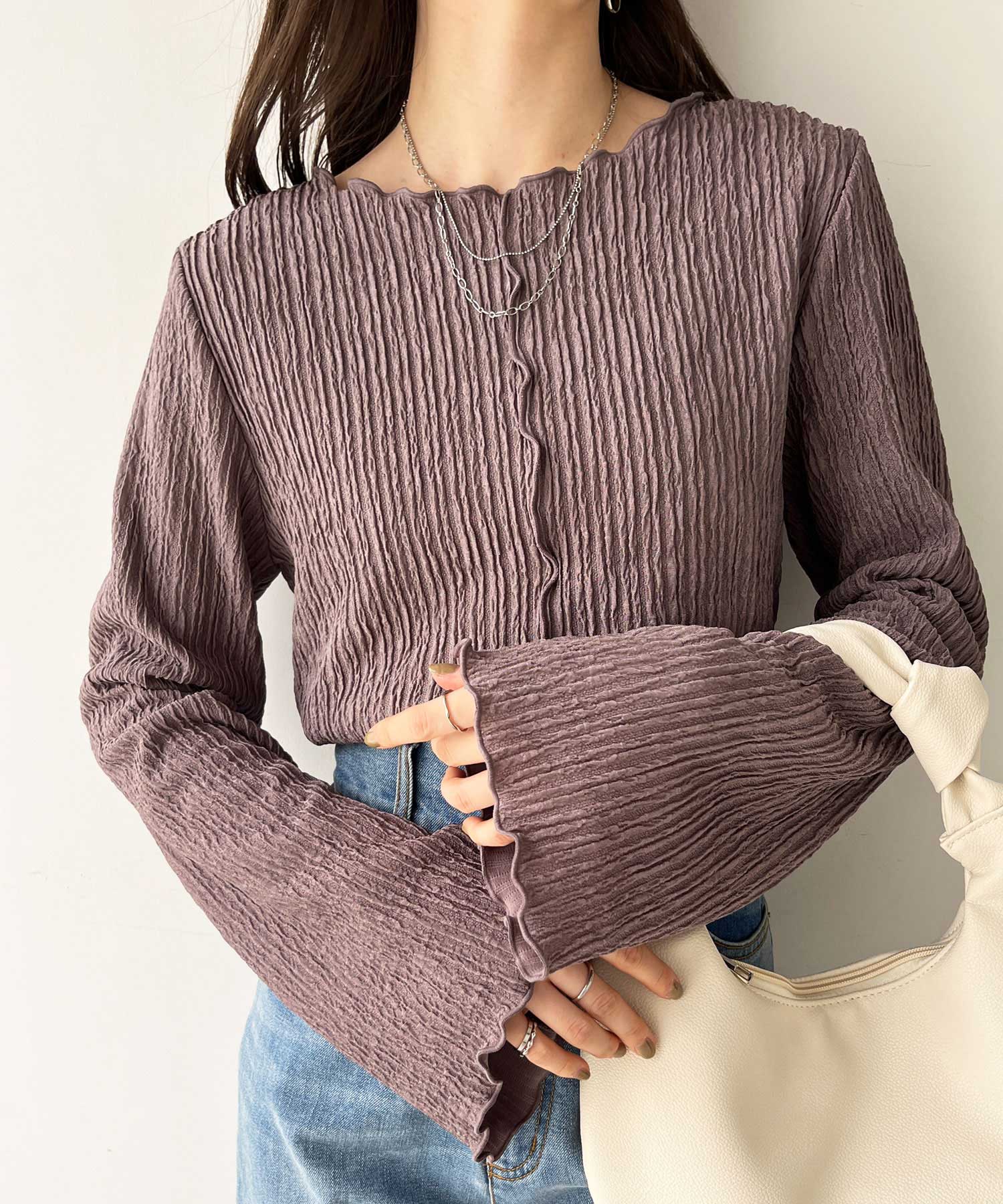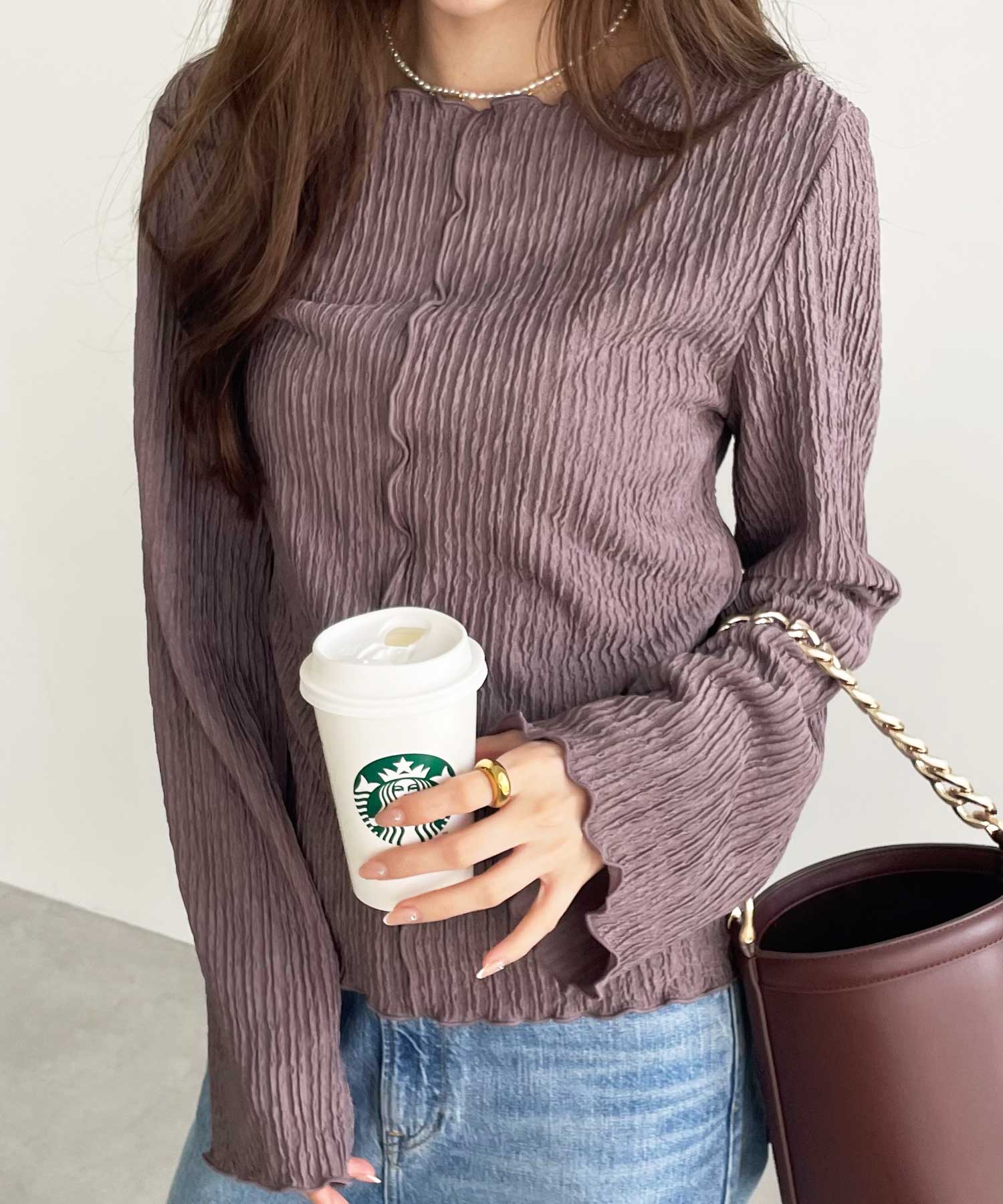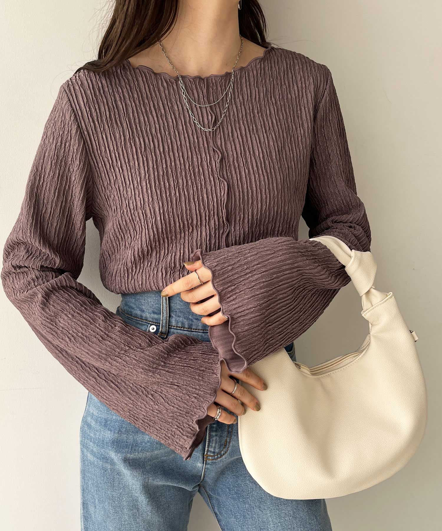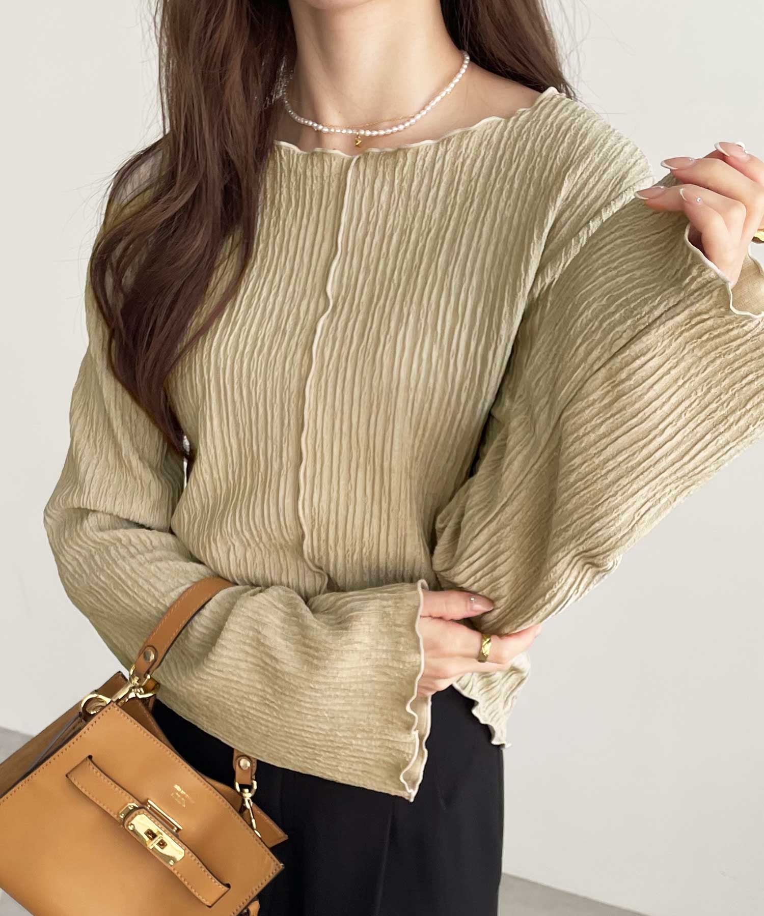 【新色追加】前後2wayジャガードフレアスリーブカットソー