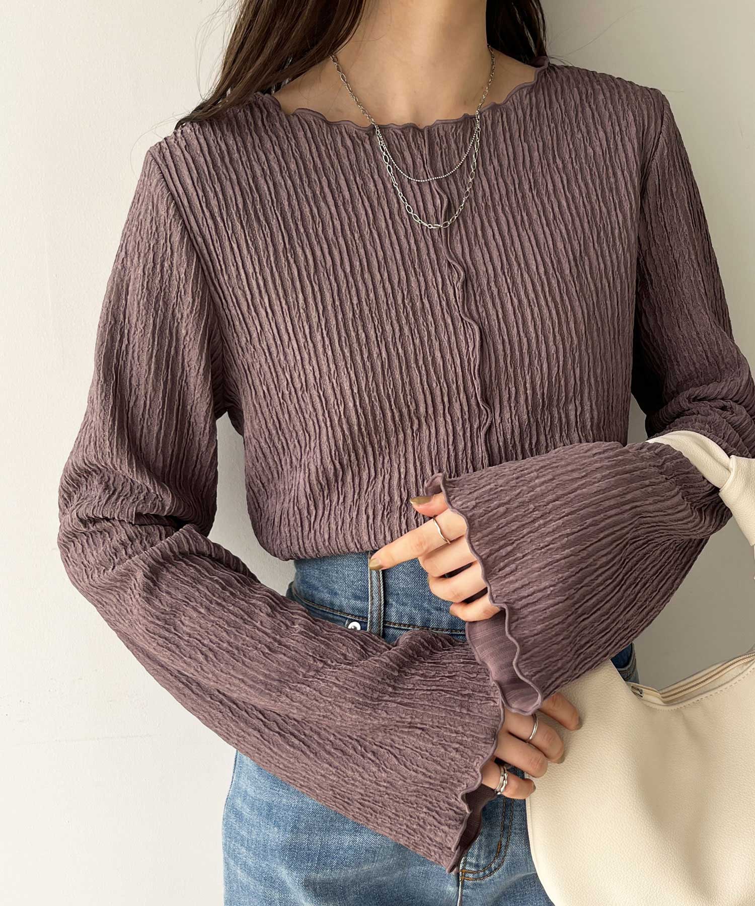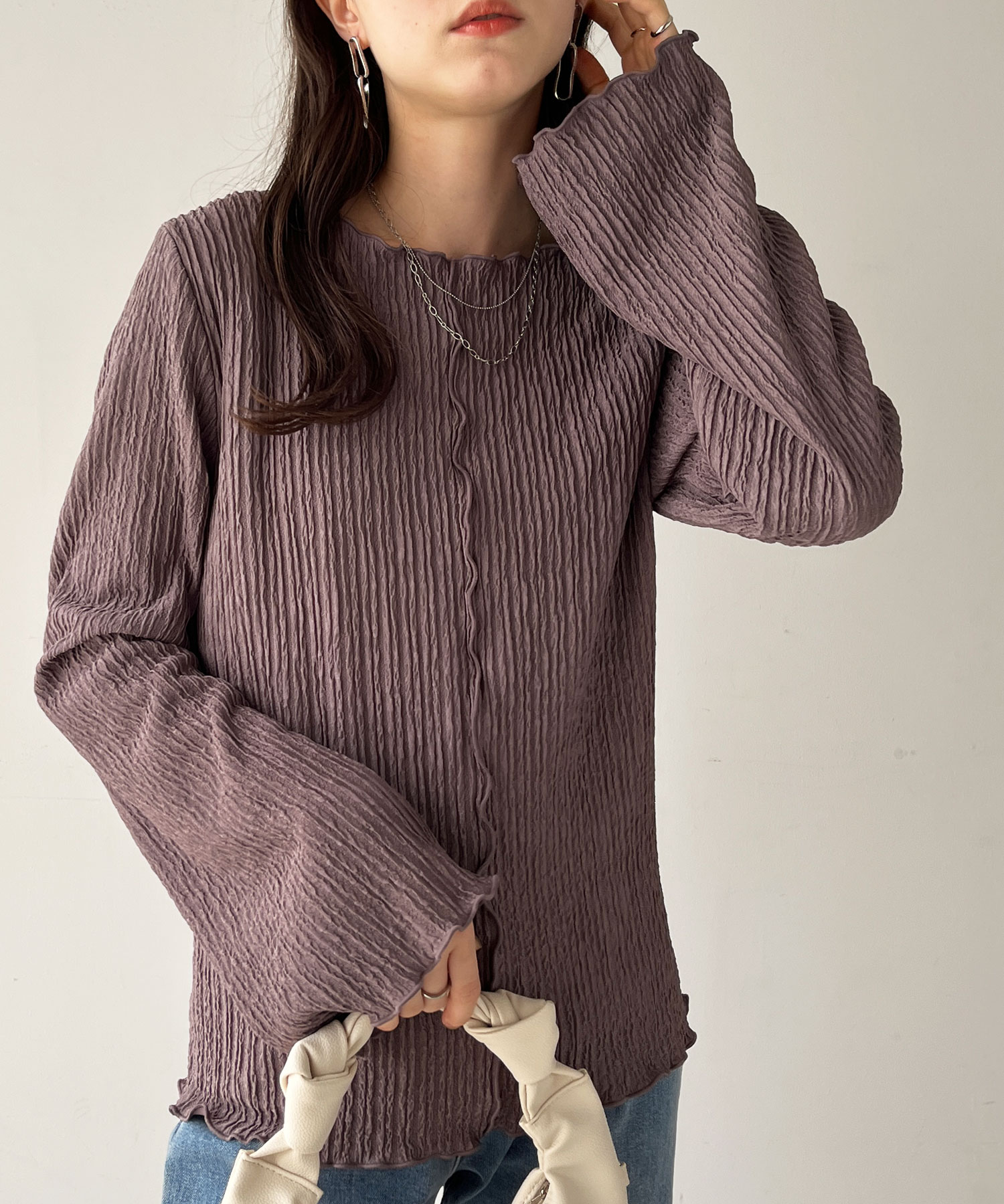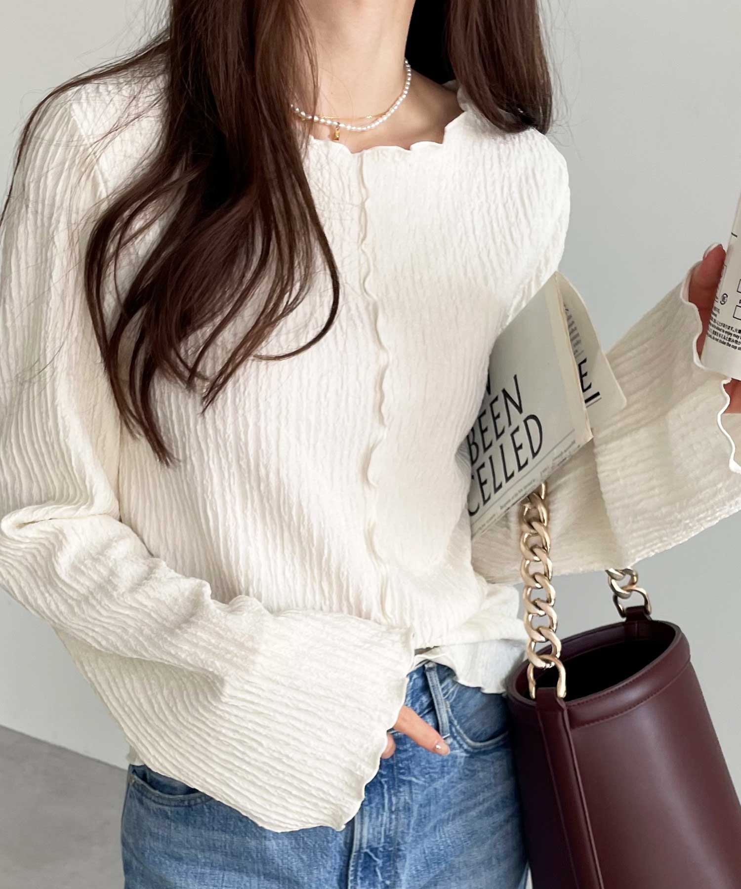 【新色追加】前後2wayジャガードフレアスリーブカットソー