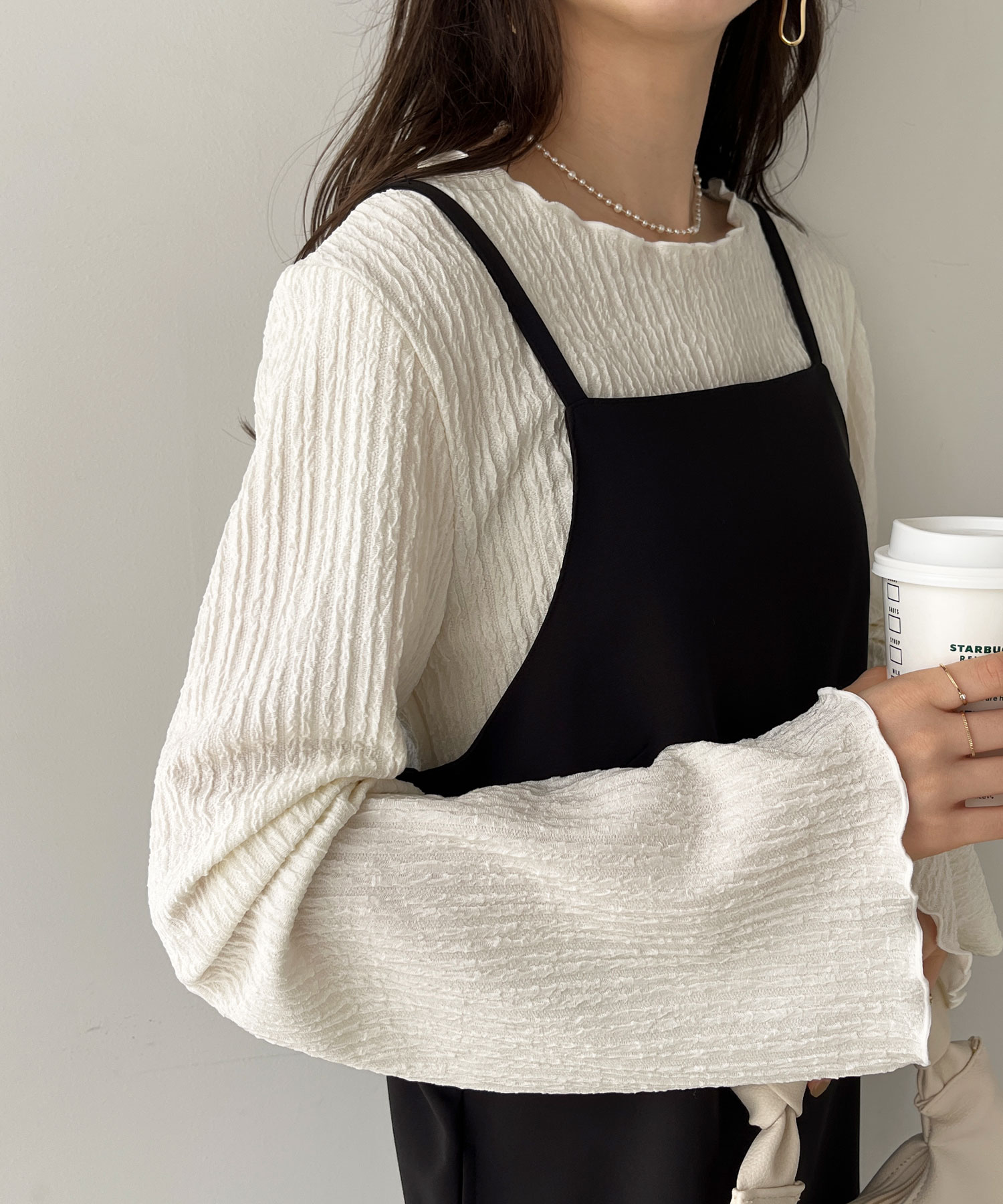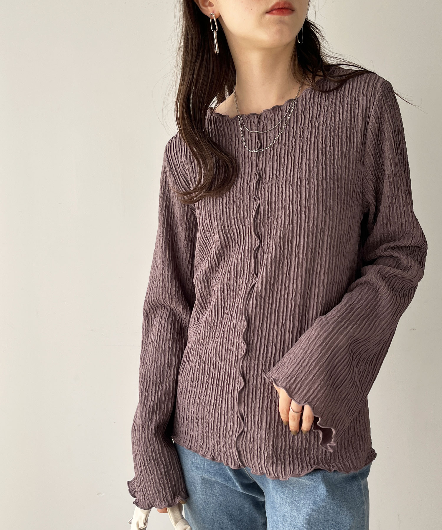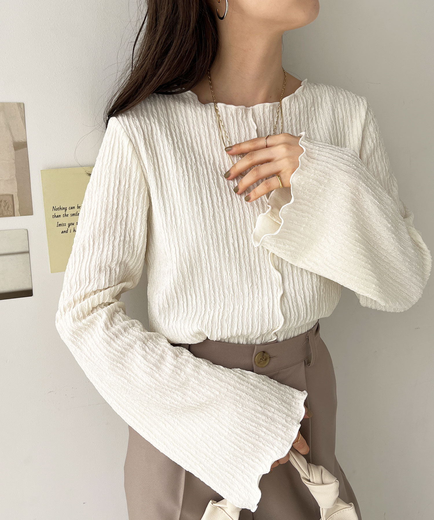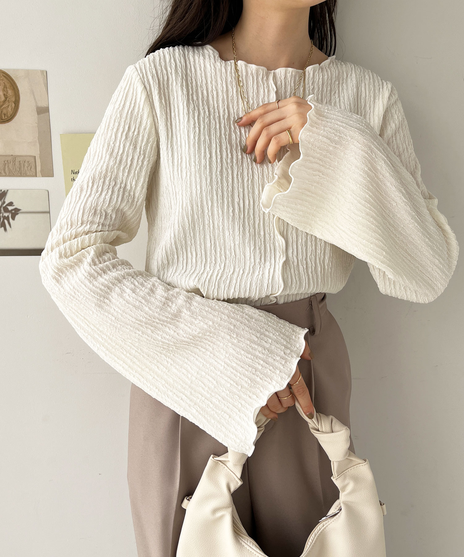 【新色追加】前後2wayジャガードフレアスリーブカットソー