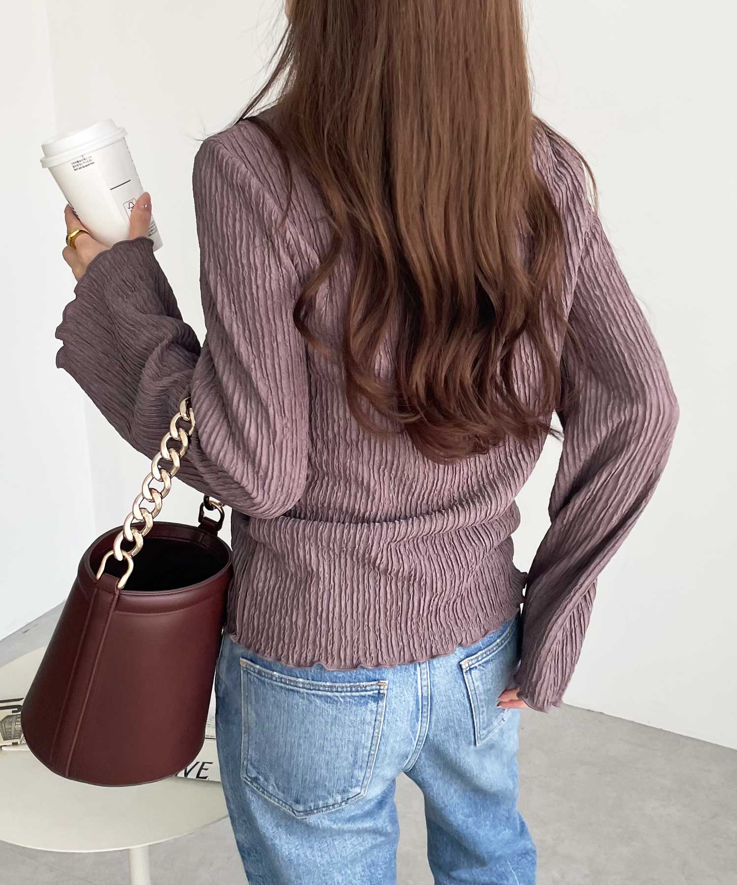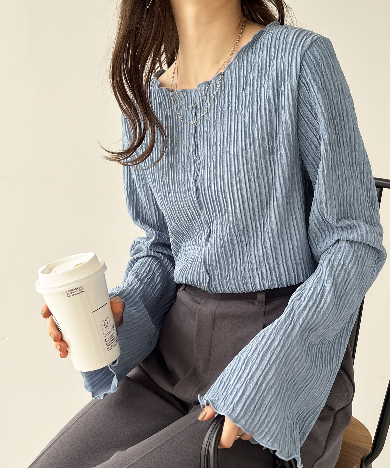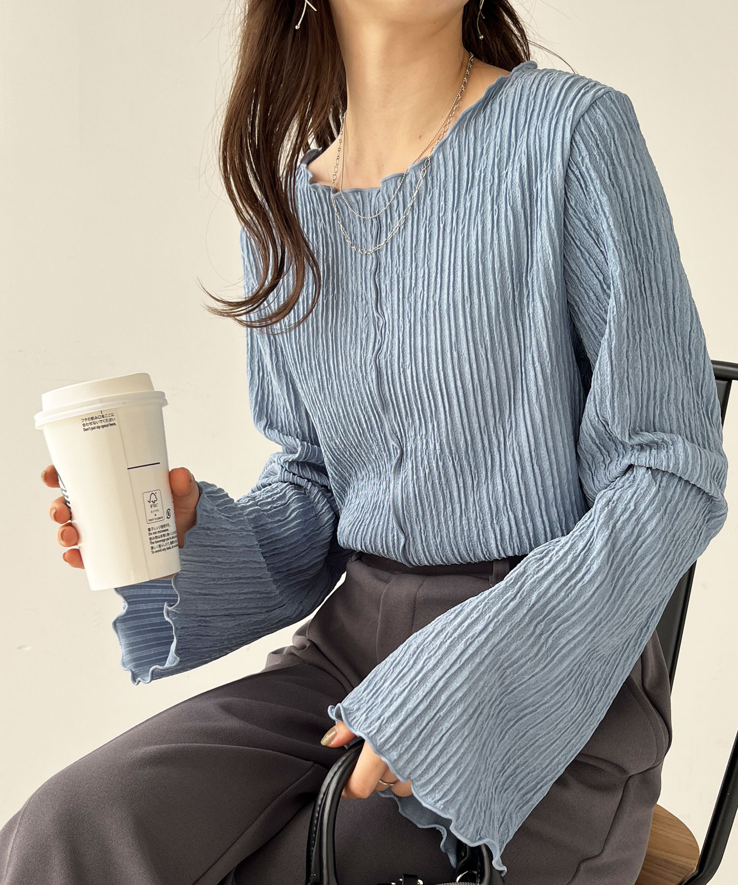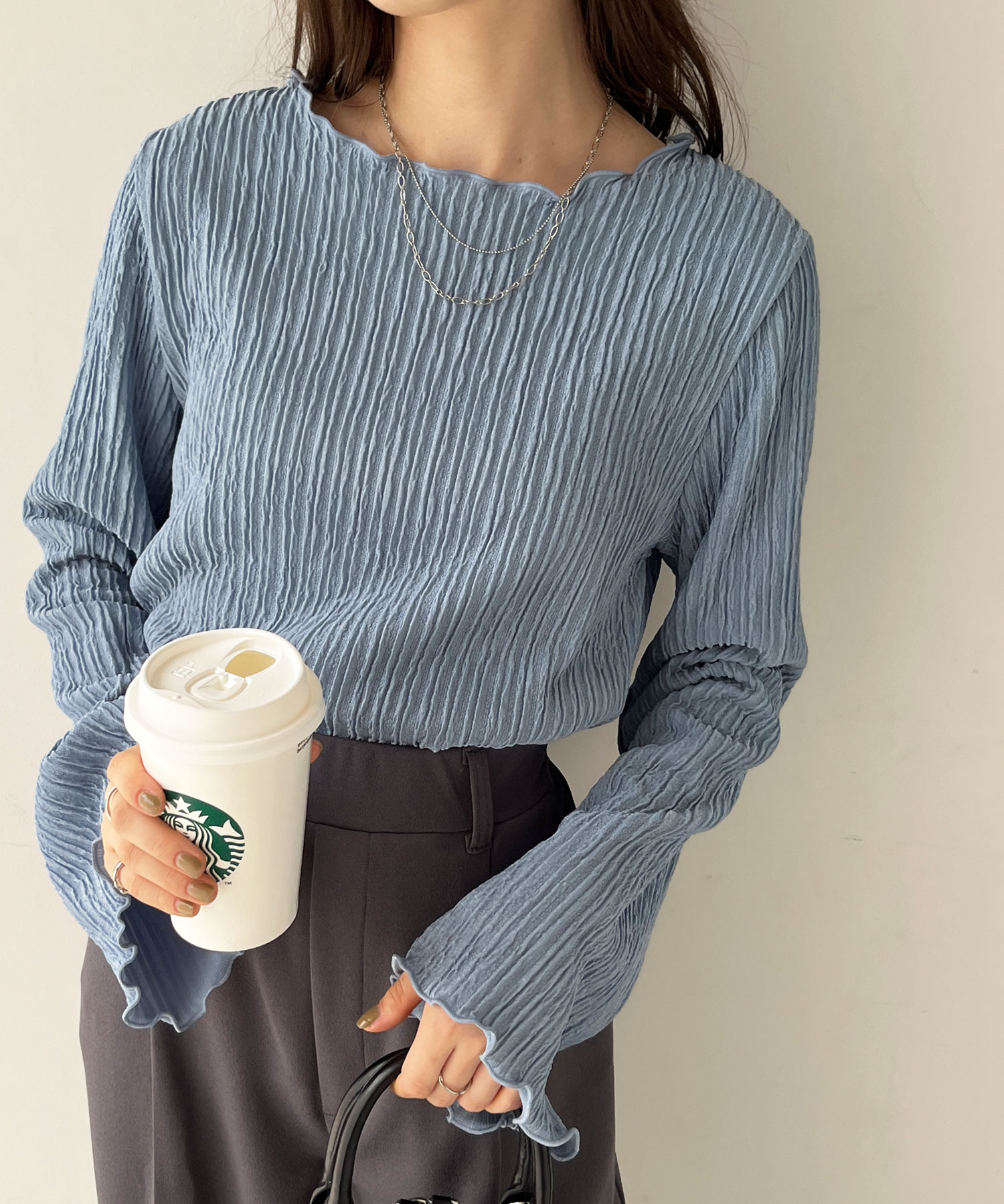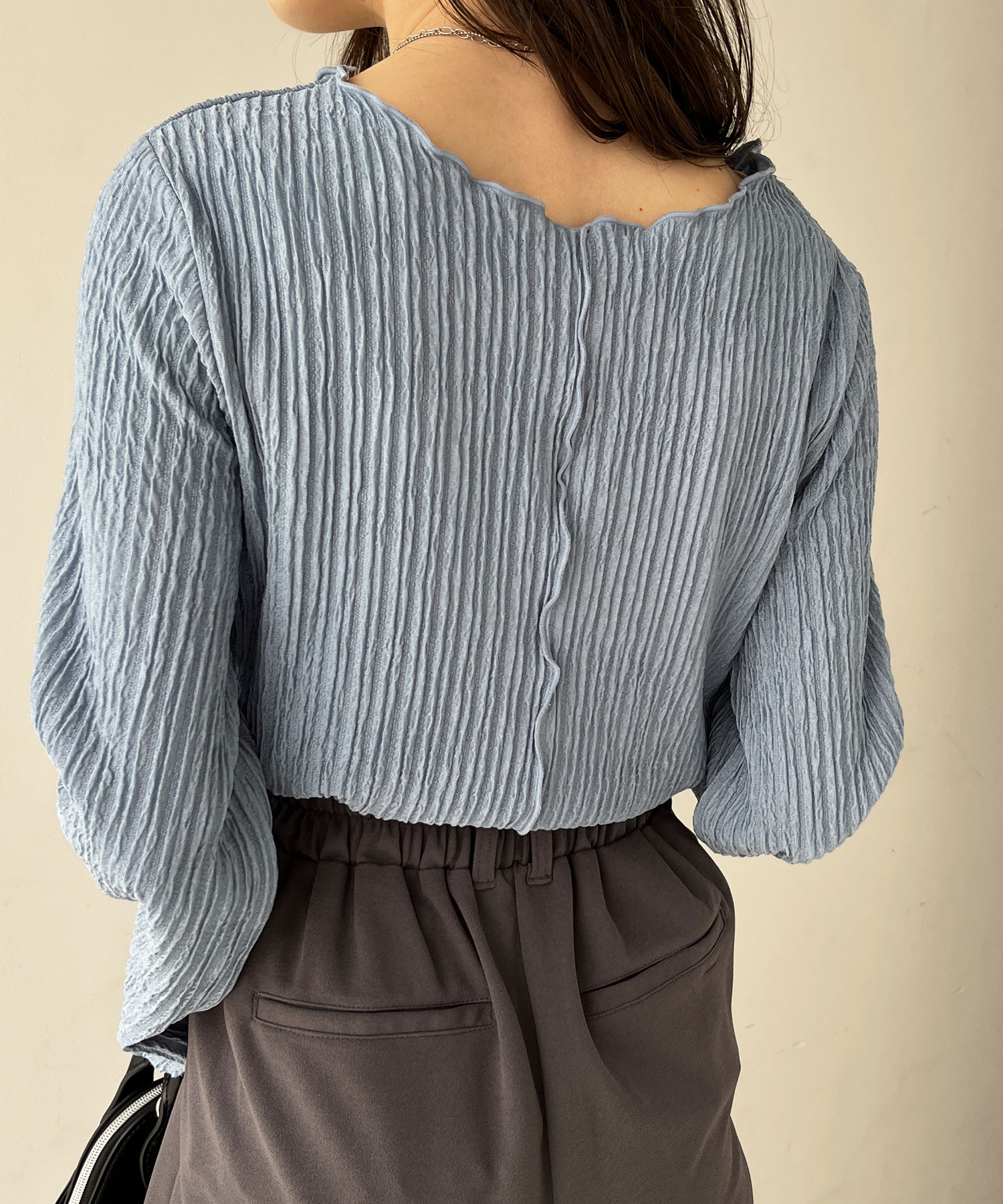袖口や身頃のメローデザインで女性らしさをプラス。