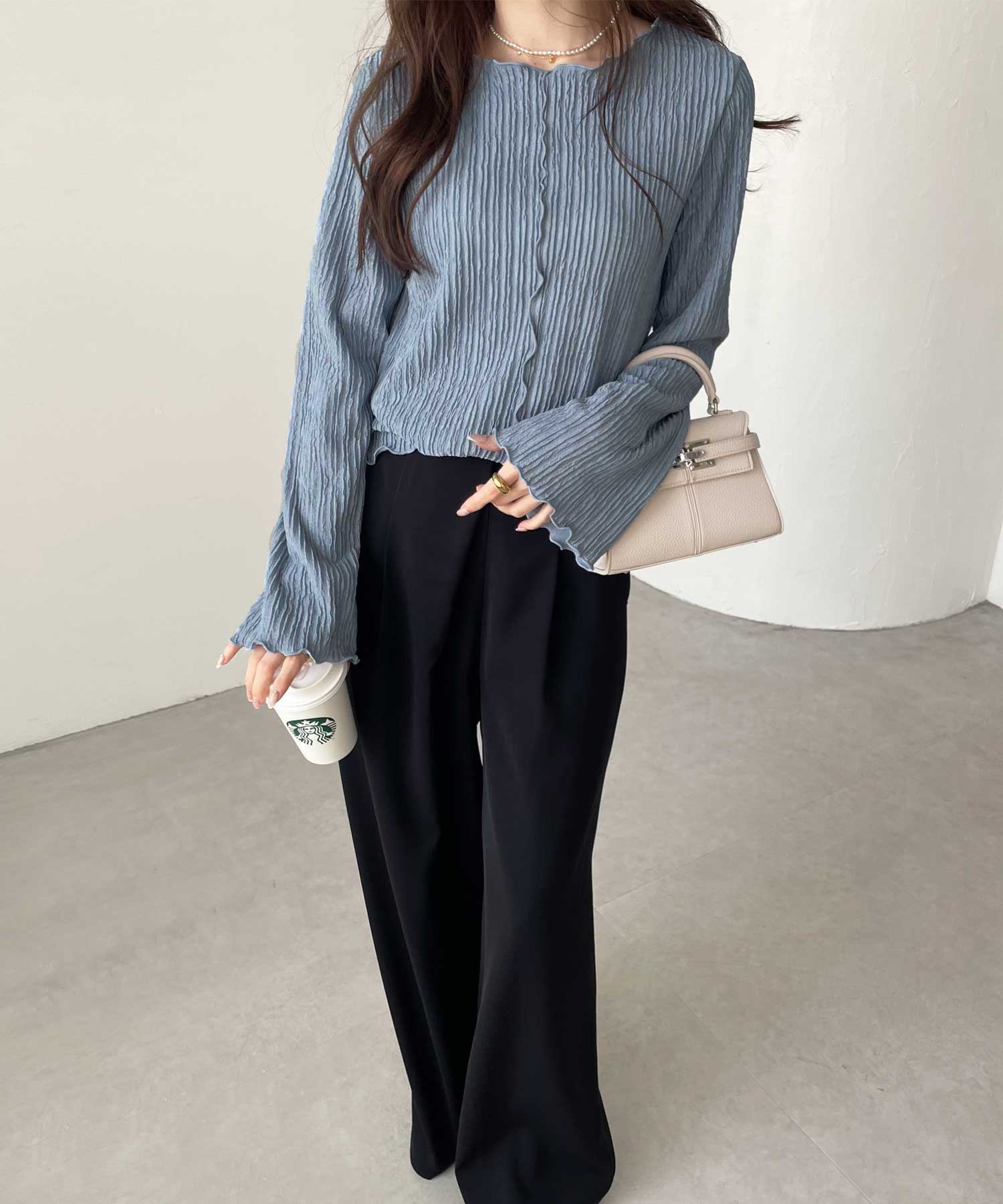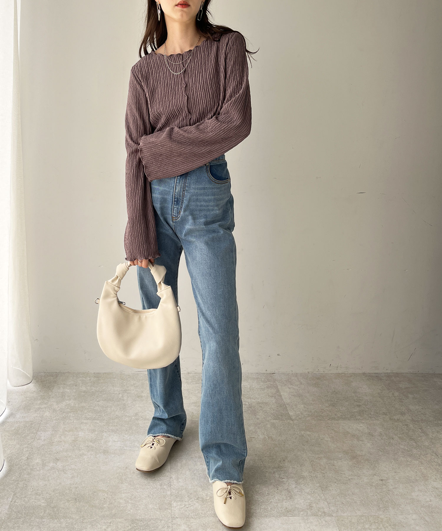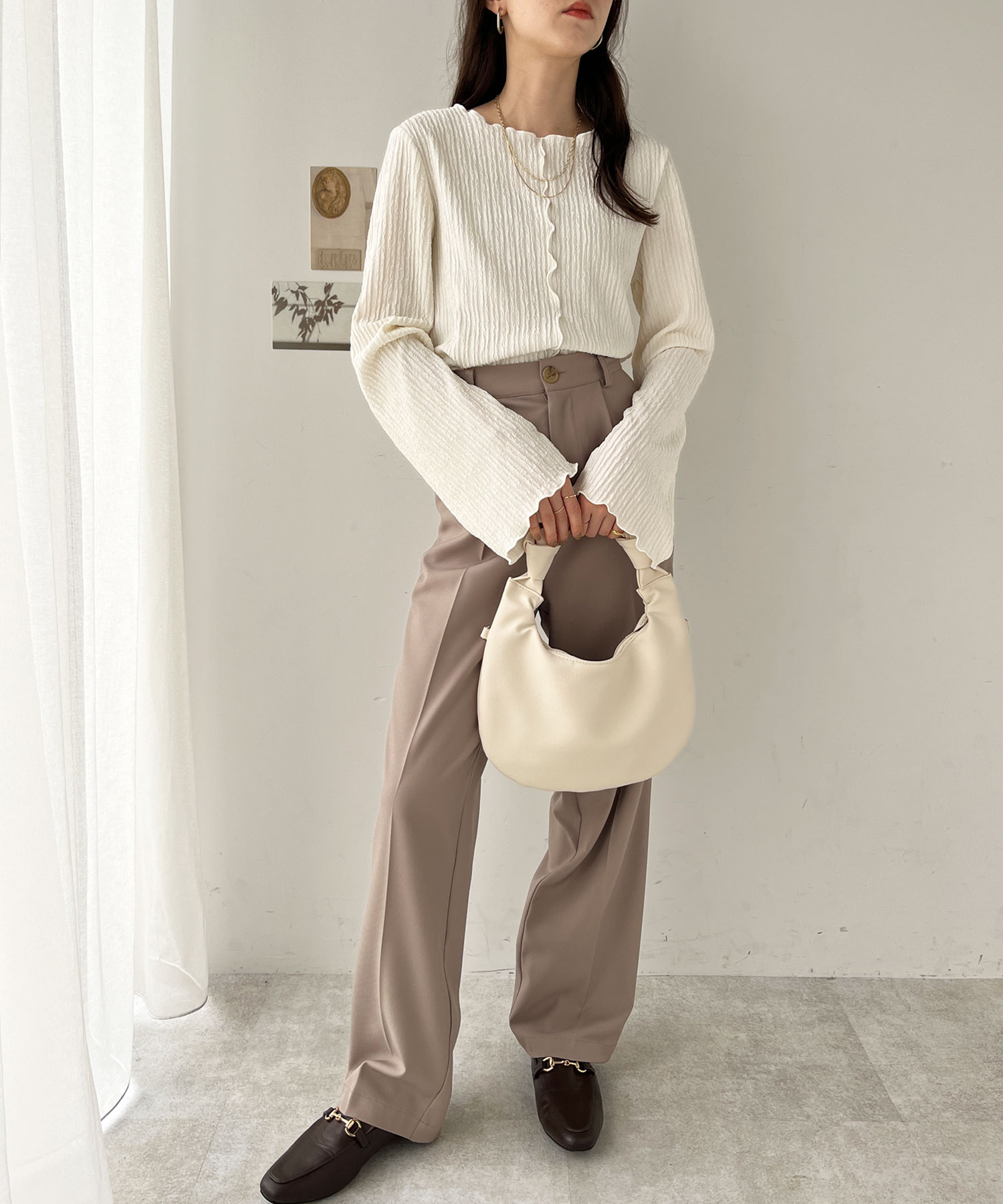 シンプルなデニムやスラックス、スカートとの相性◎