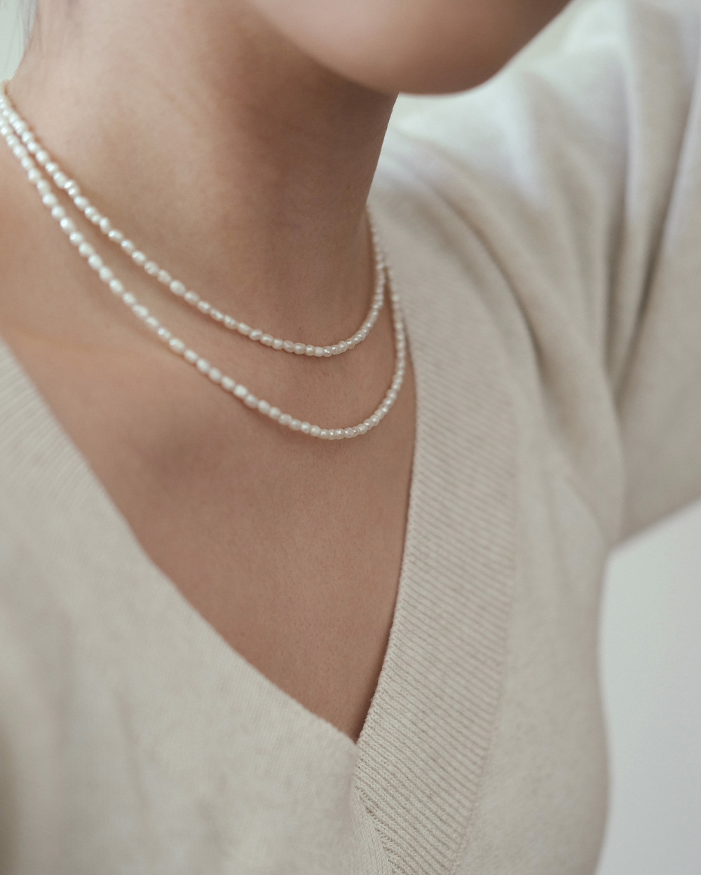 淡水パールならではのひとつひとつ異なる形が魅力で、ナチュラルな輝きが上品な印象を与えます。
