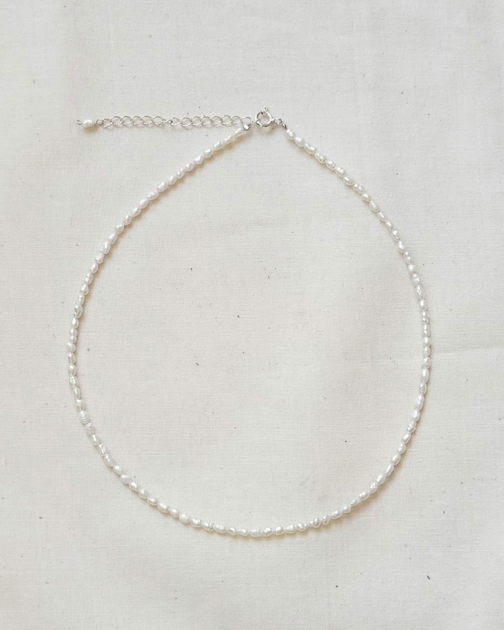 クラシックな小ぶりサイズのハンドメイド淡水パールネックレスです。