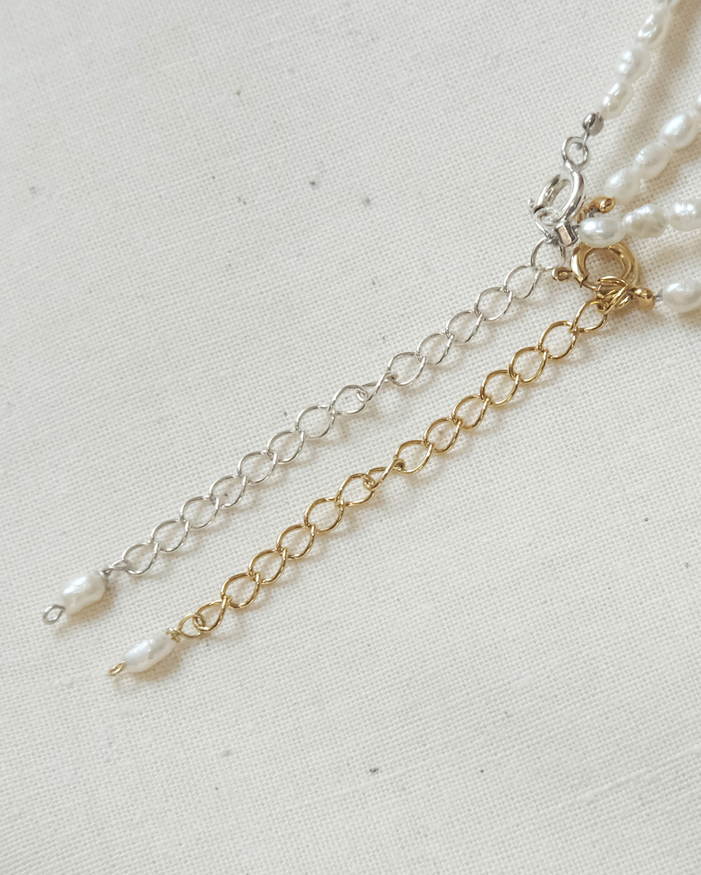 シルバー925で仕上げたエクステンションチェーンは、シルバーとゴールドの2色からお選びいただけます。
