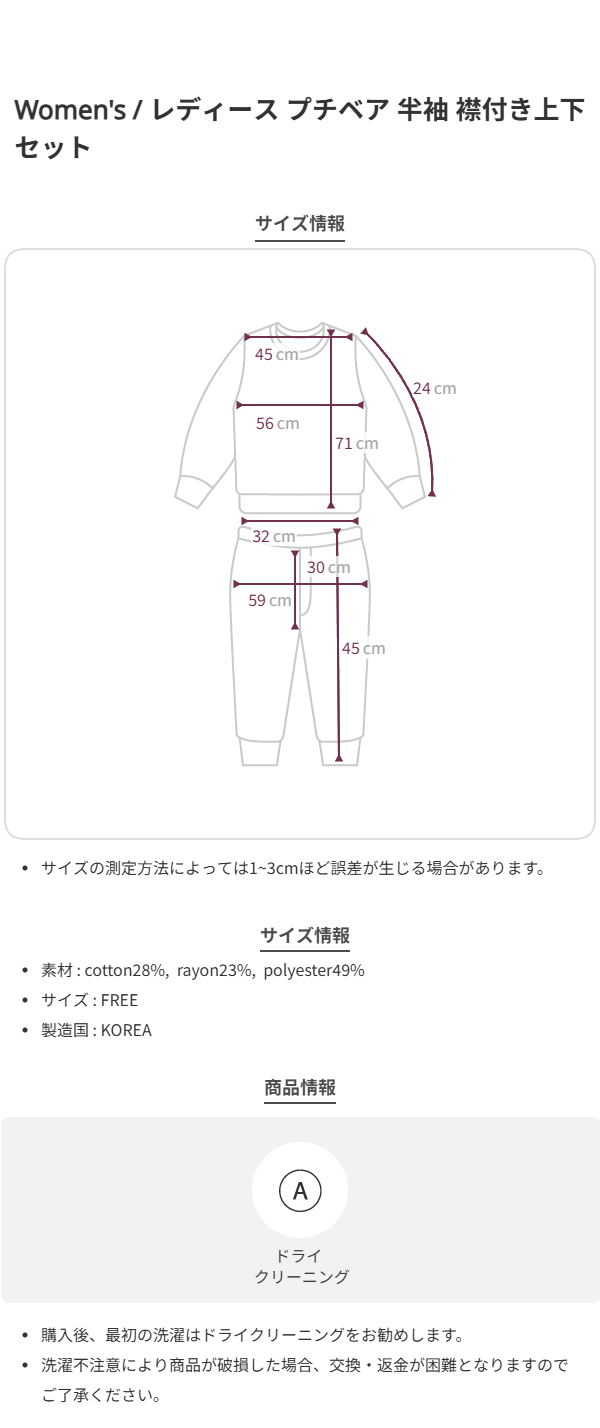 レディース プチベア 半袖 襟付き上下セット