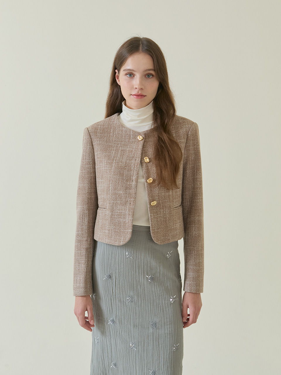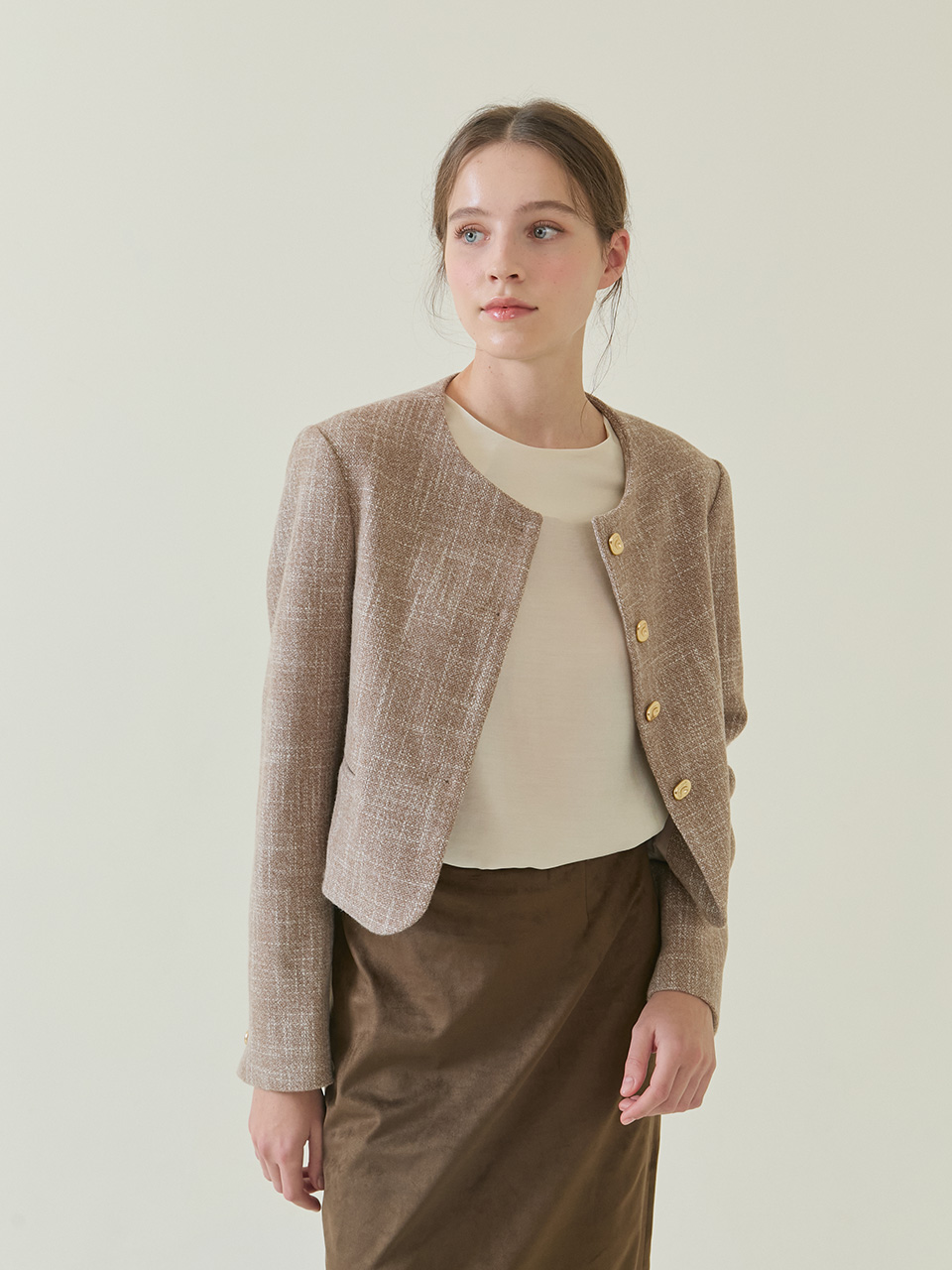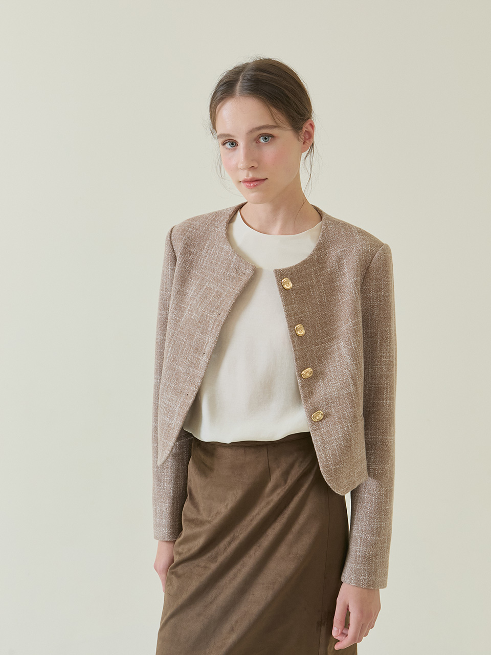 Amble Round Crop Jacket _ Beige