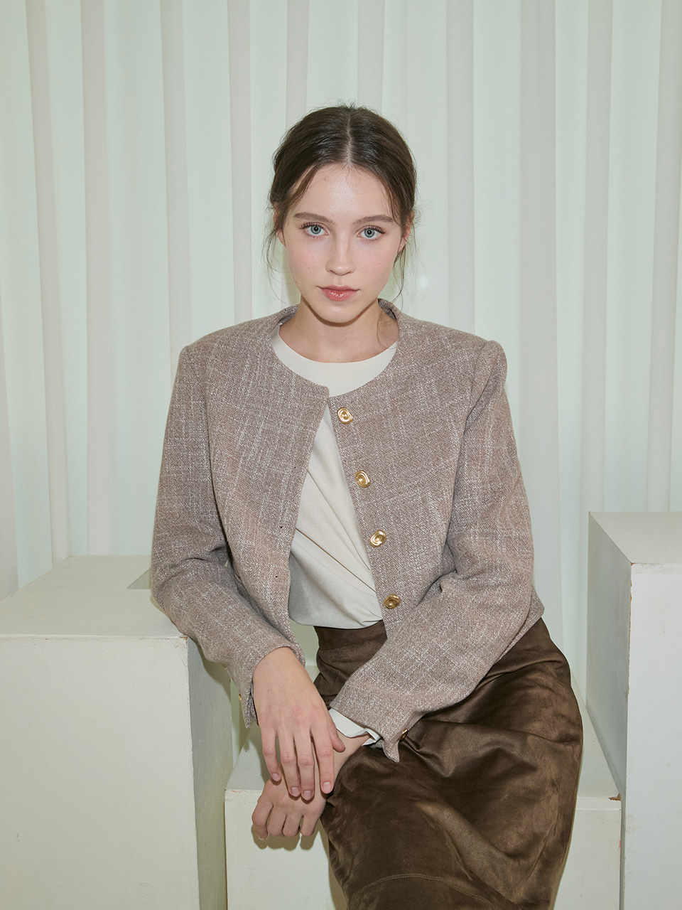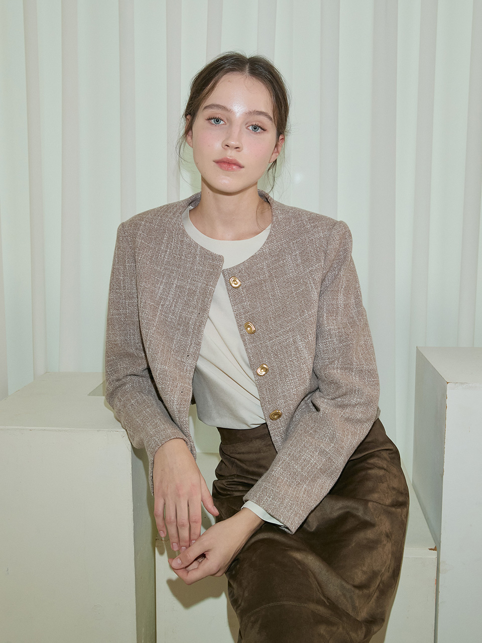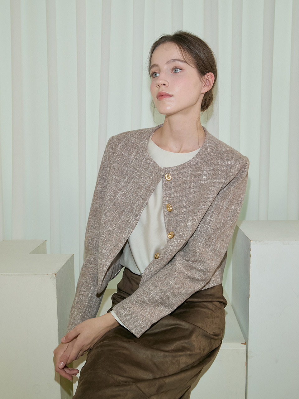 Amble Round Crop Jacket _ Beige