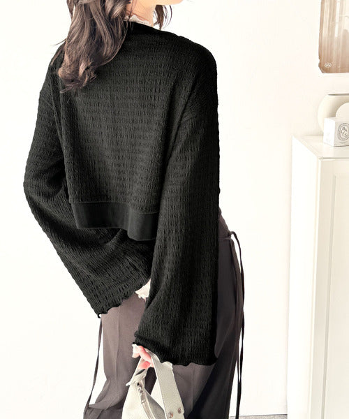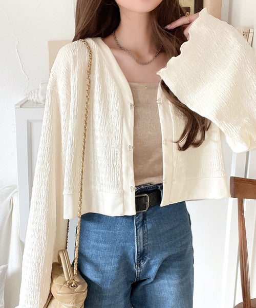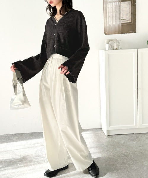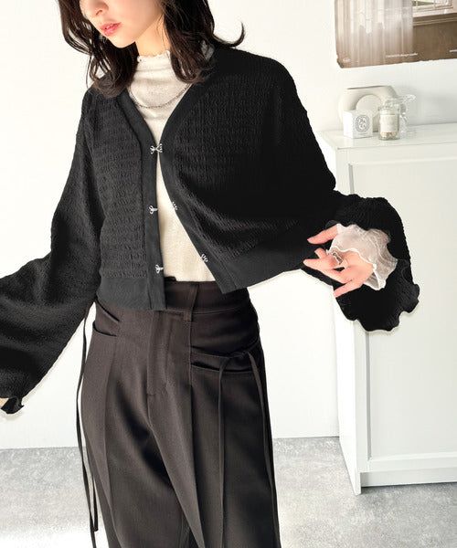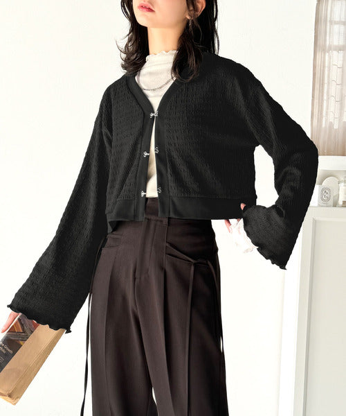フレアスリーブが魅力的なジャガードカーディガン。