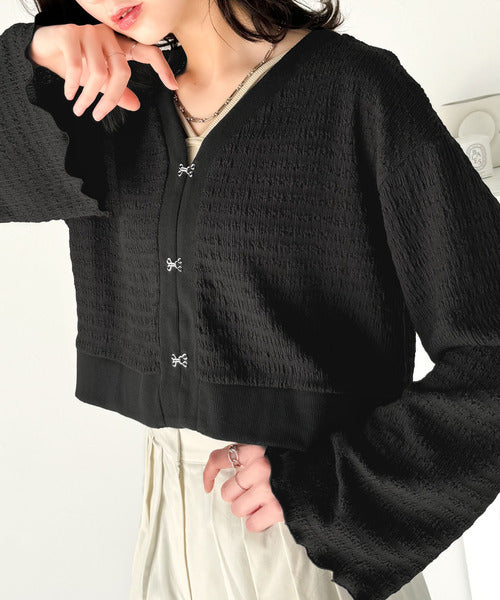シルエットがキレイ♪ホックデザインショート丈ジャガードカーディガン ce1010401