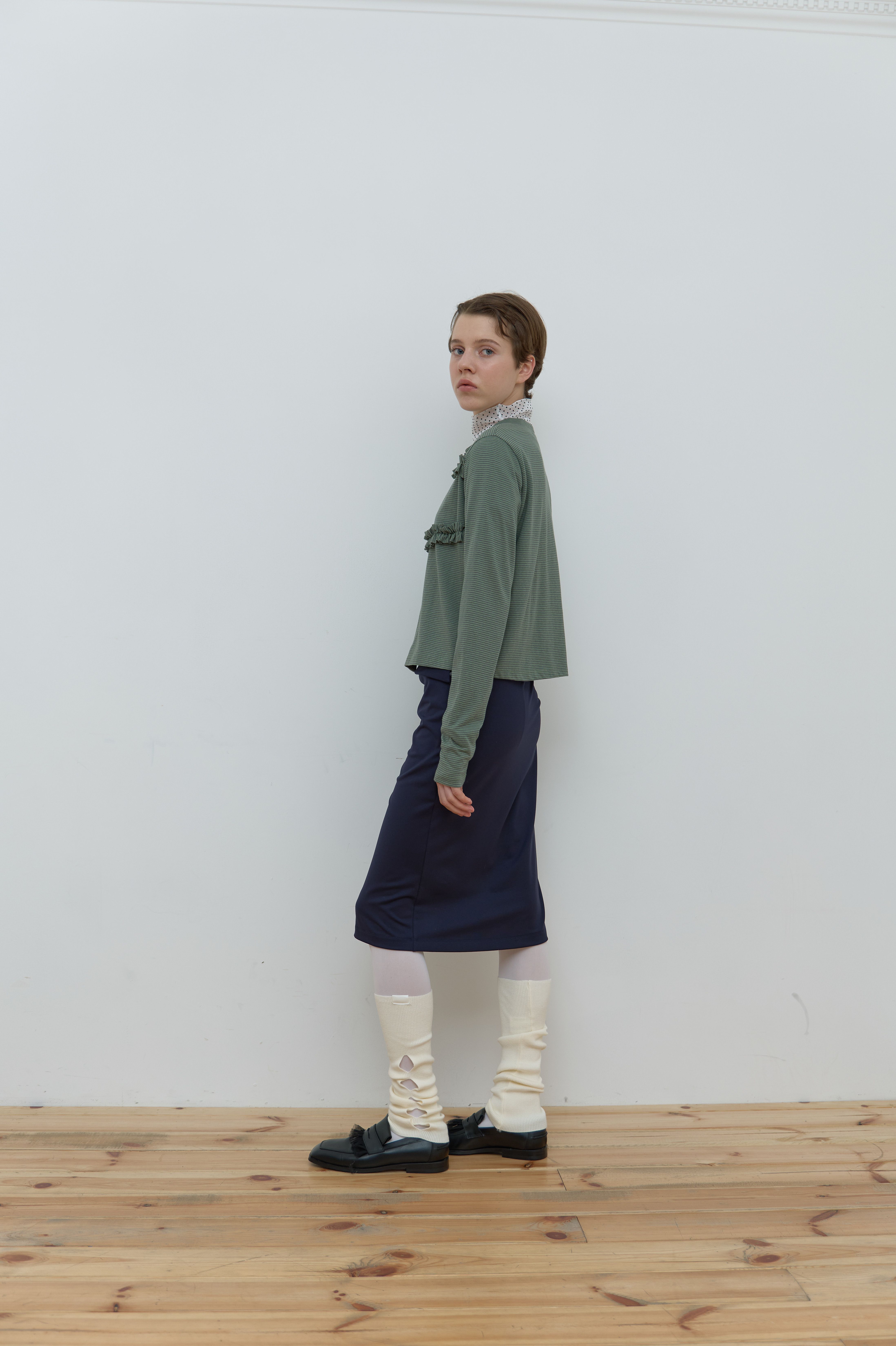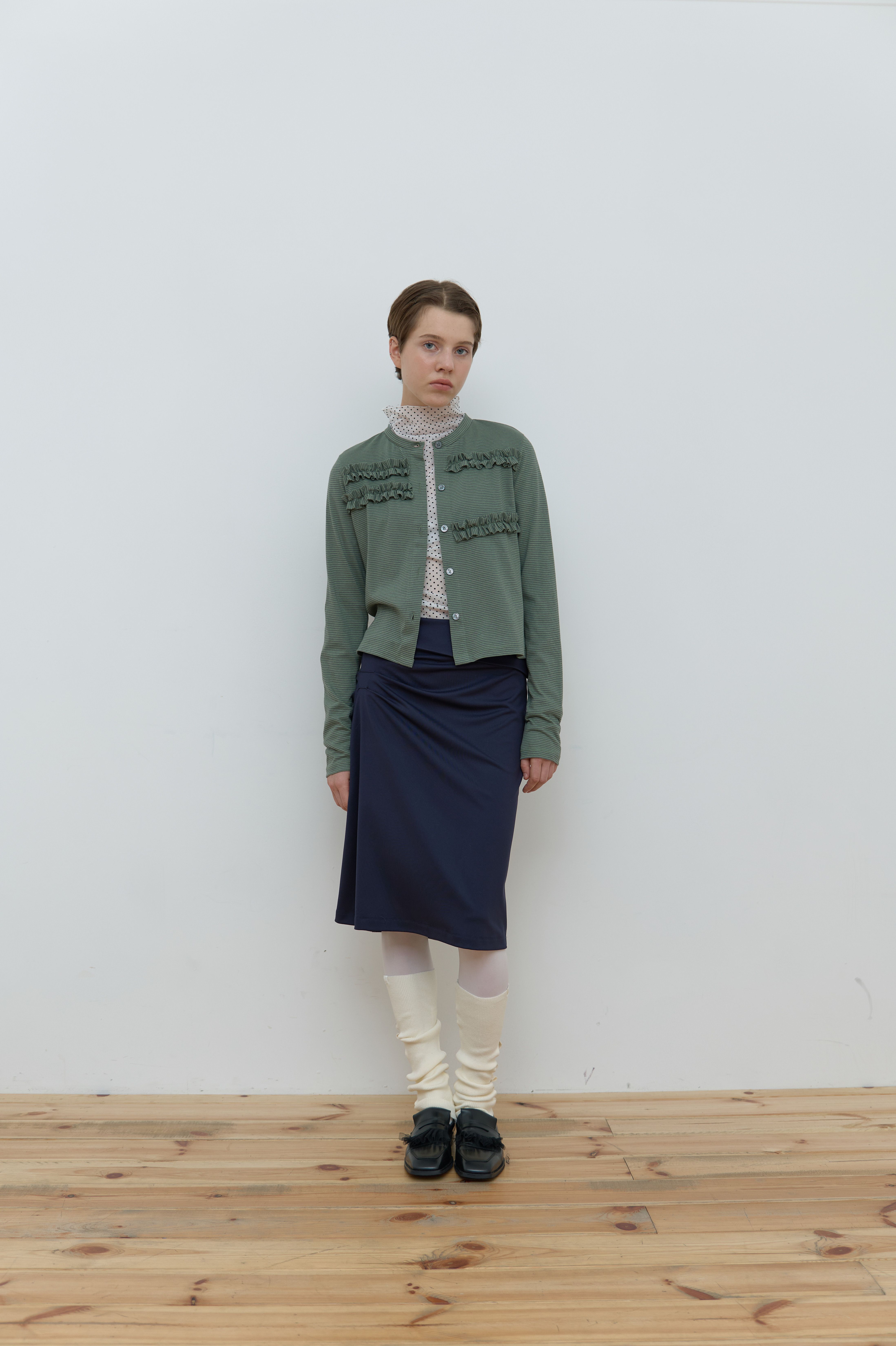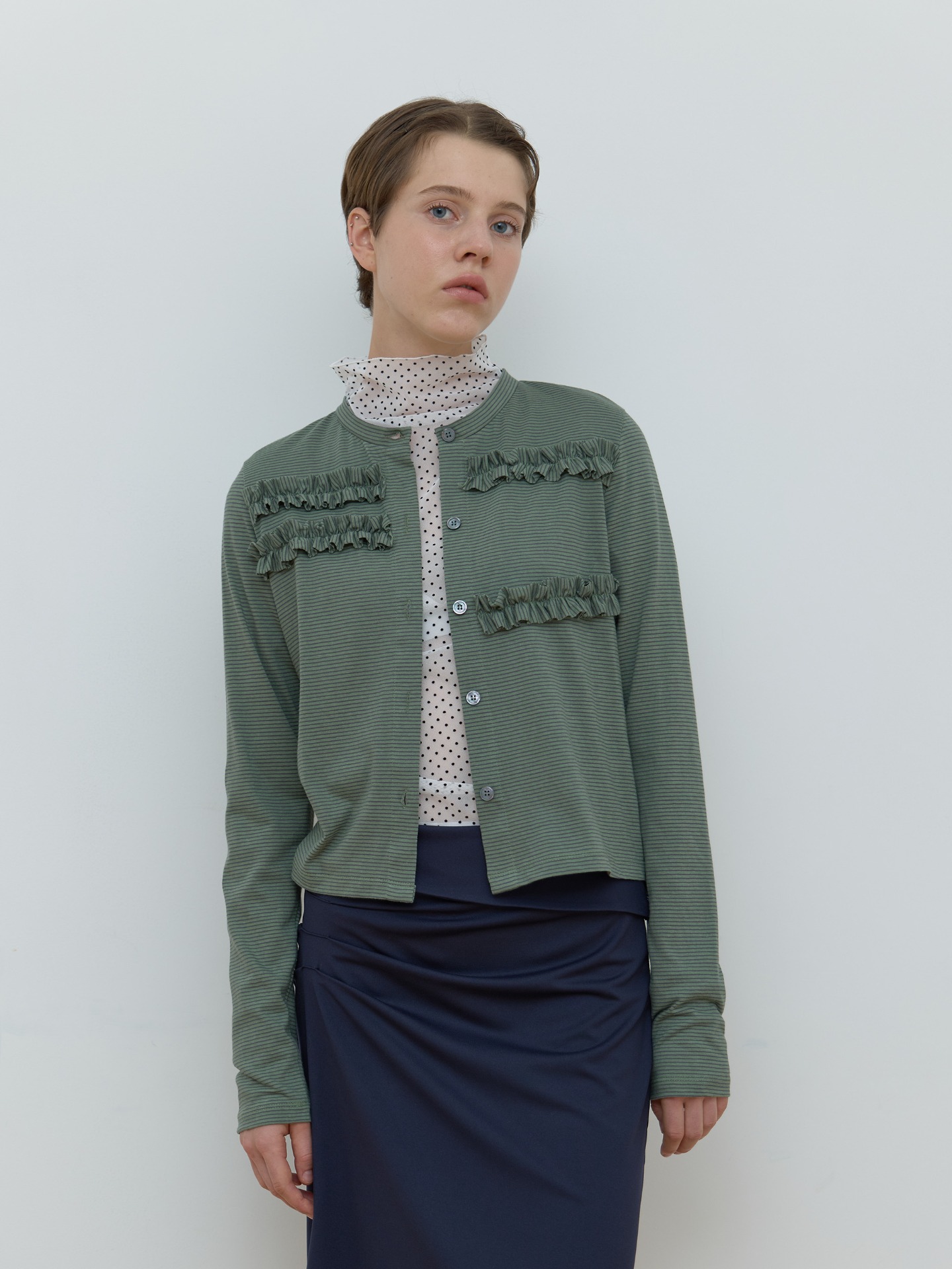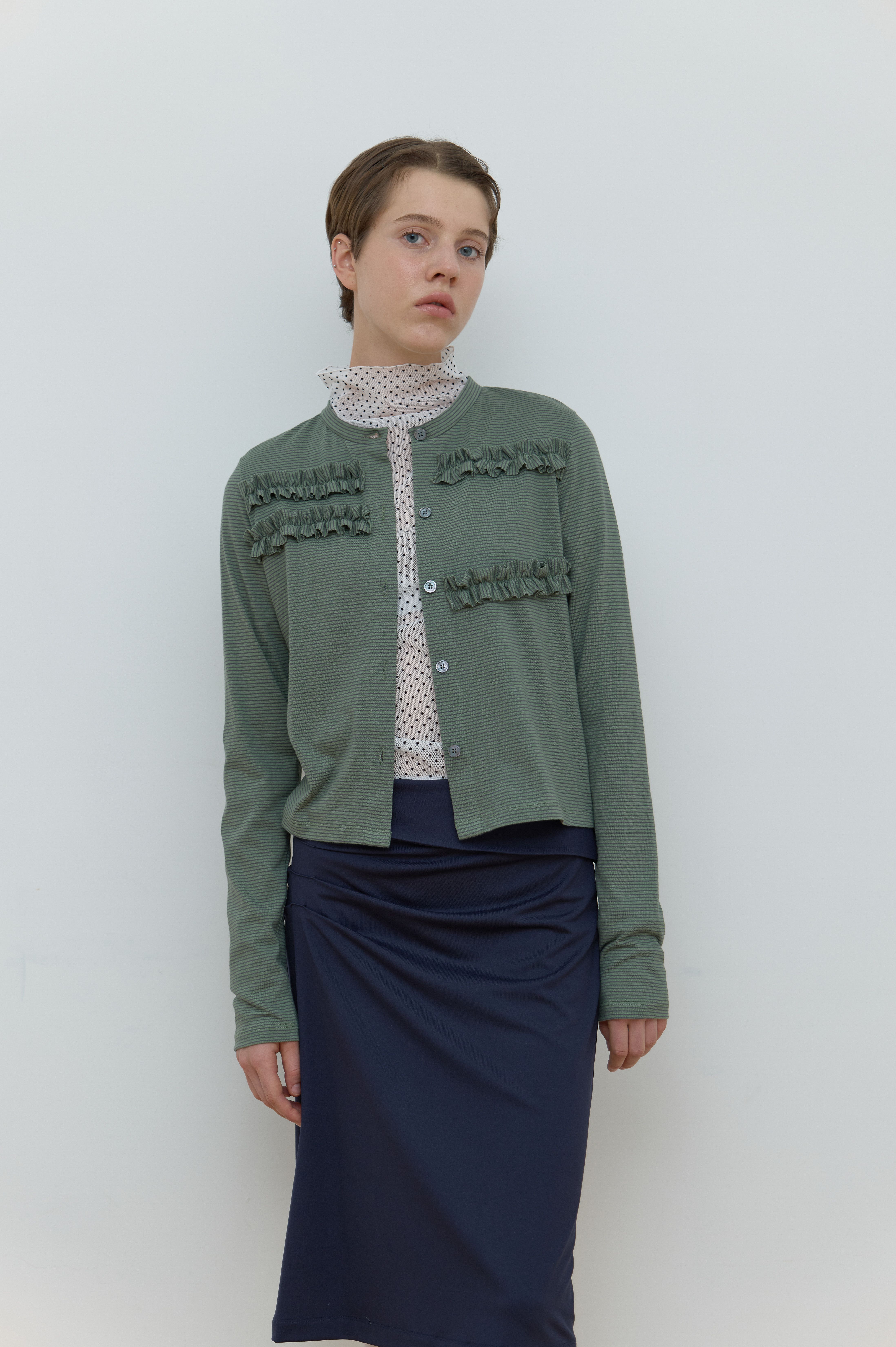 STRIPE FRILL CARDIGAN_GREEN