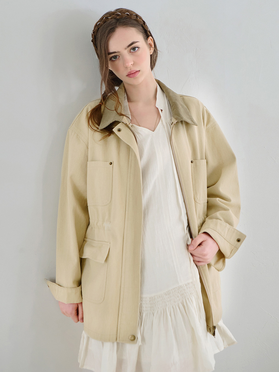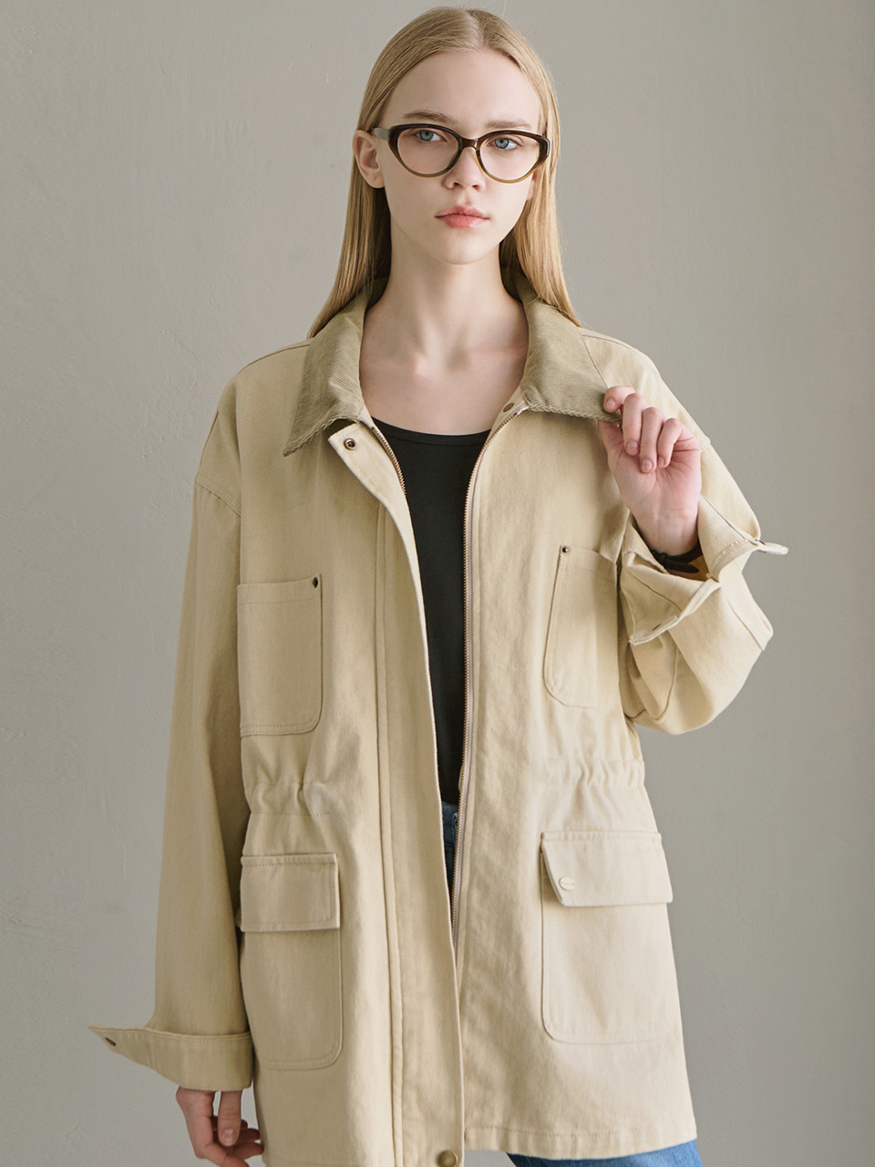 [Influencer PICK][3th reorder] Cotton washed work jacket - Light beige