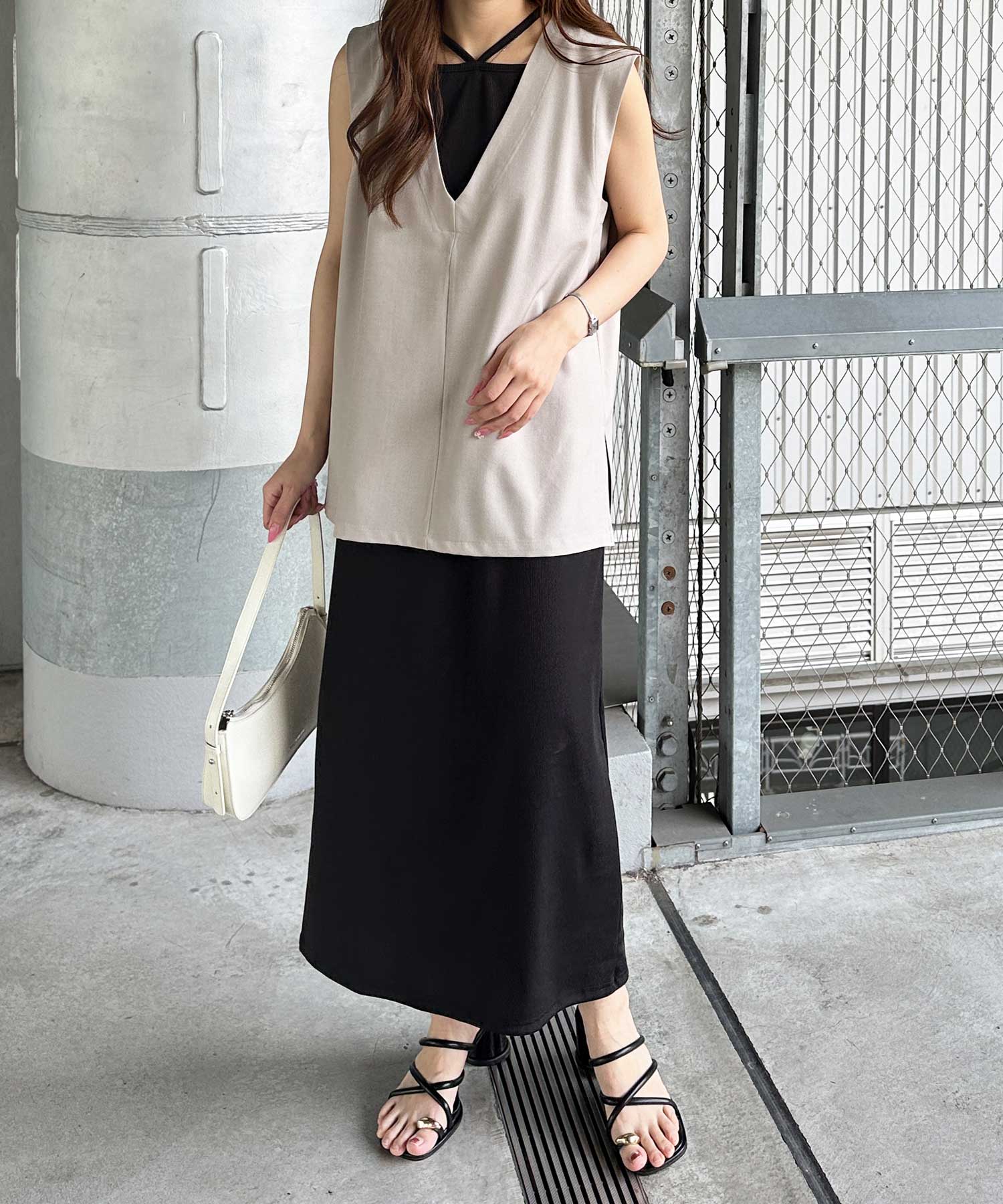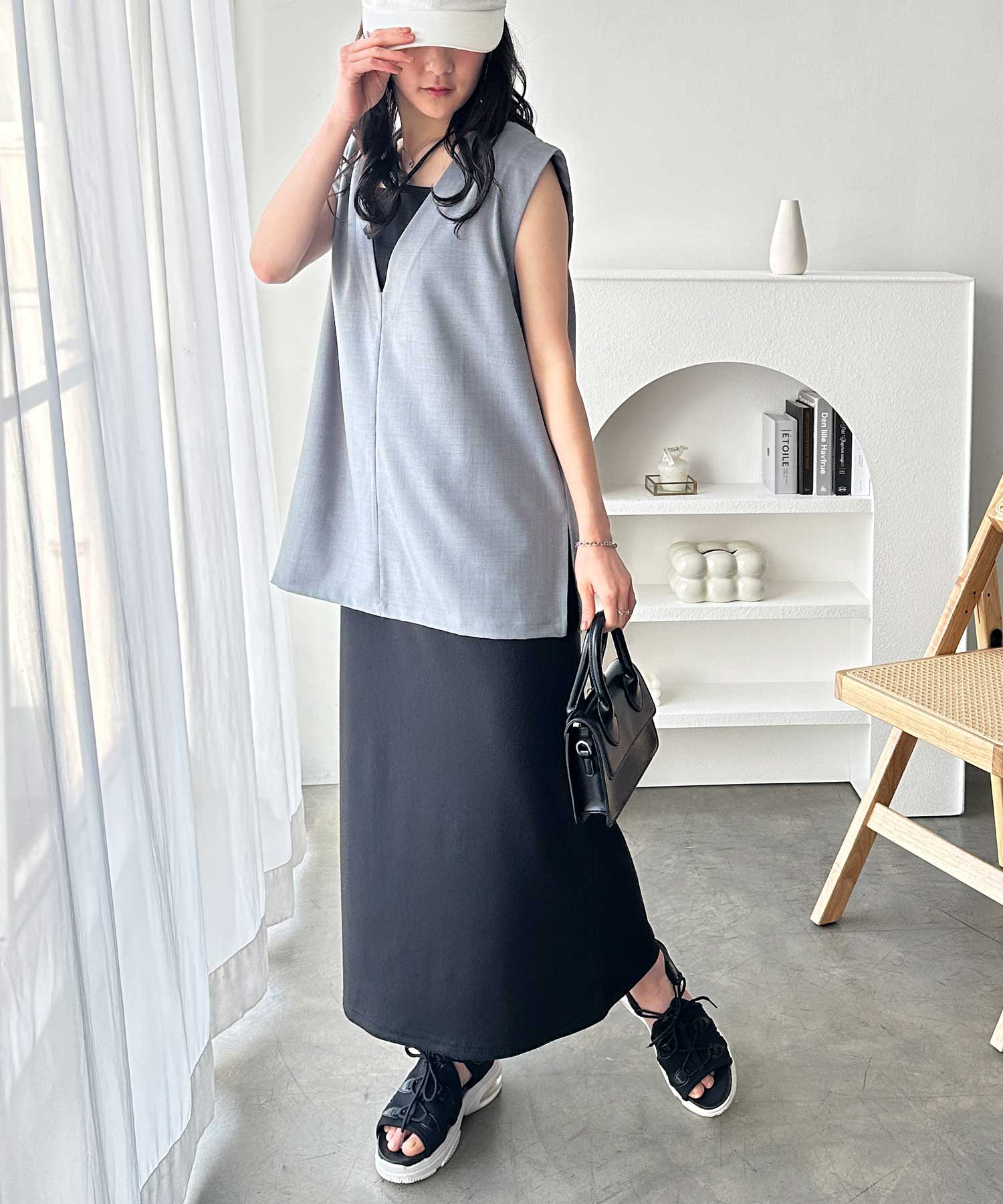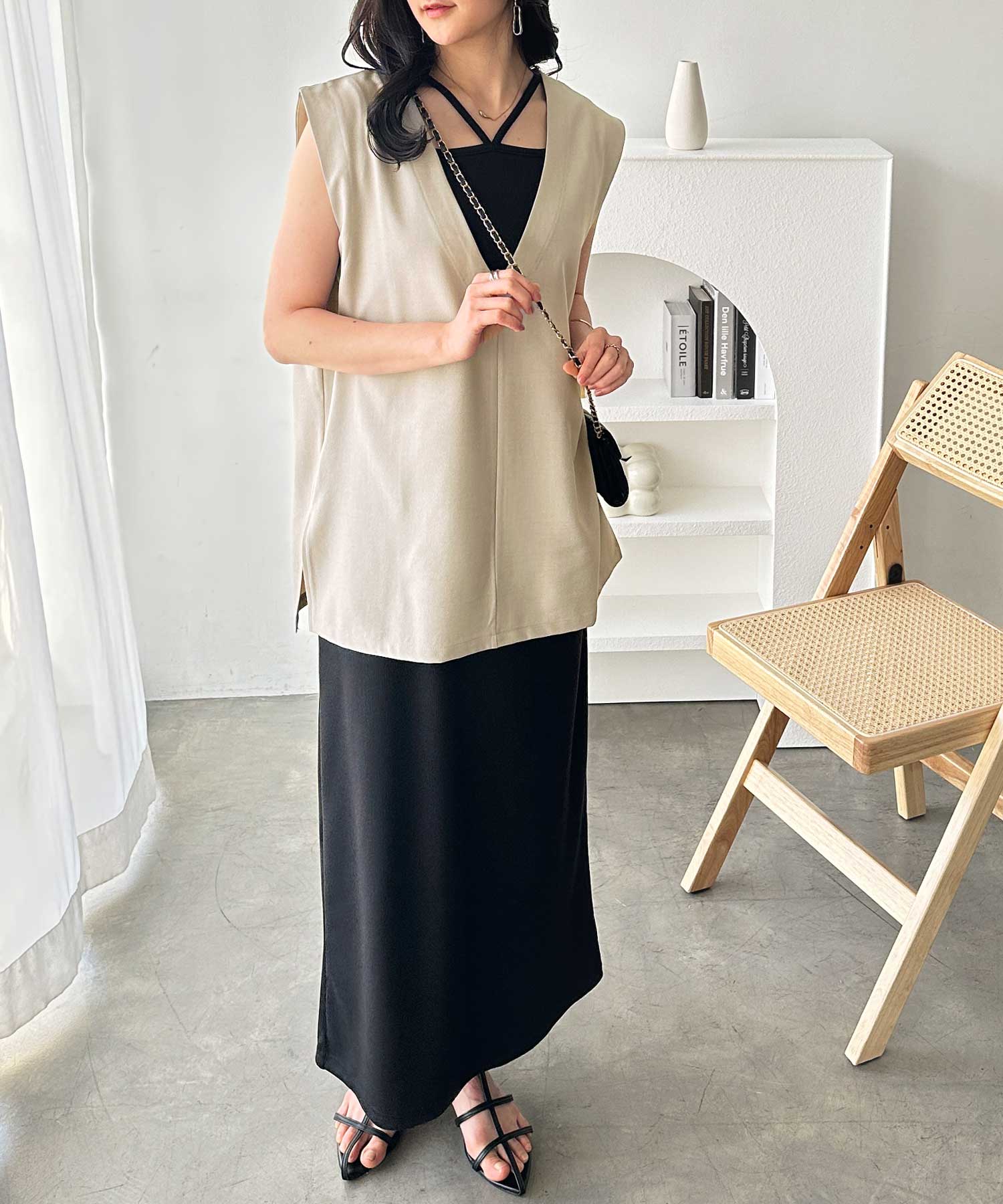 麻調ベスト×リブワンピースのSETは夏のマストバイ!