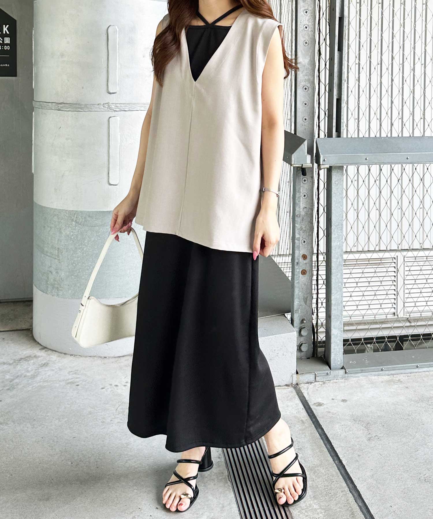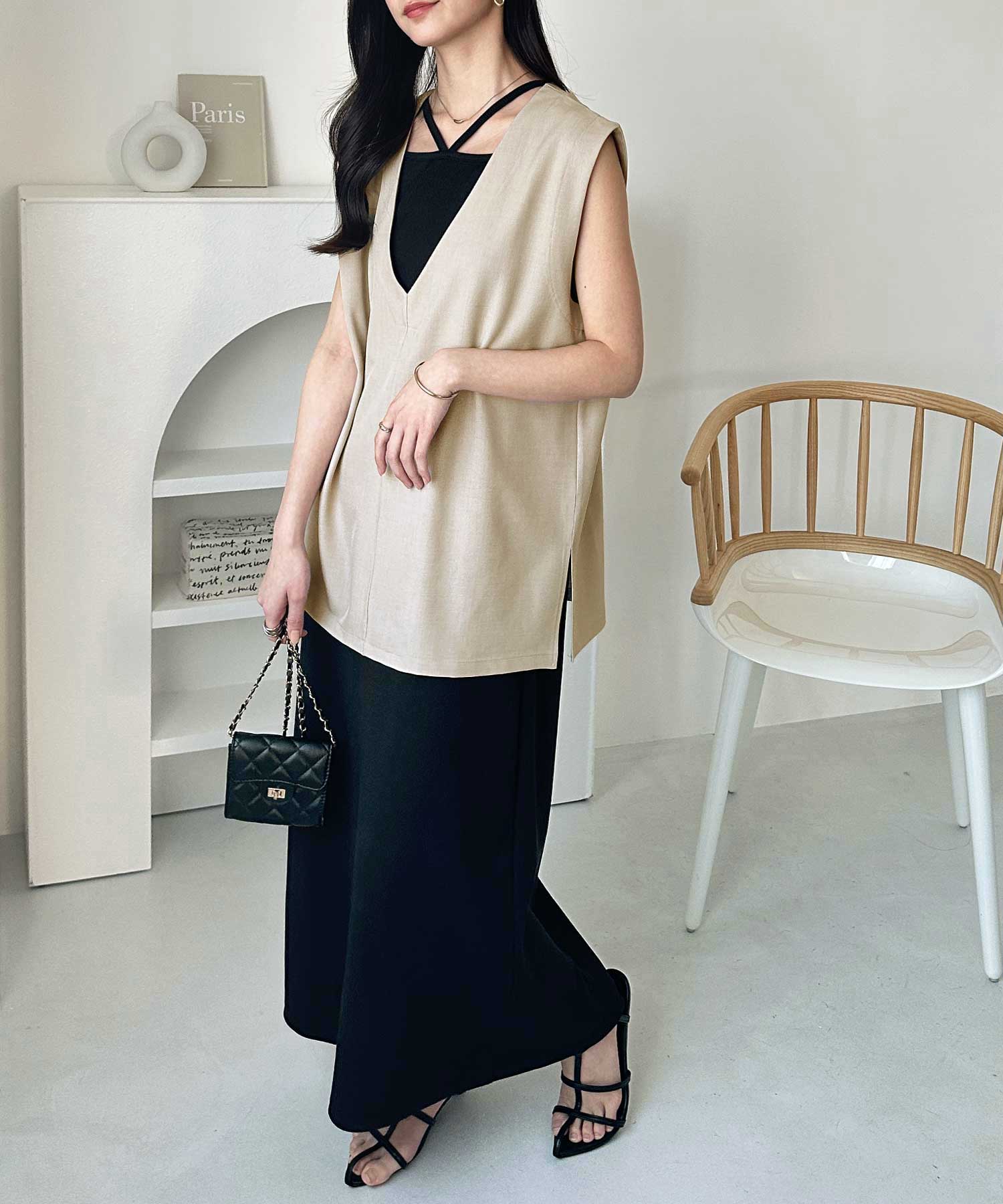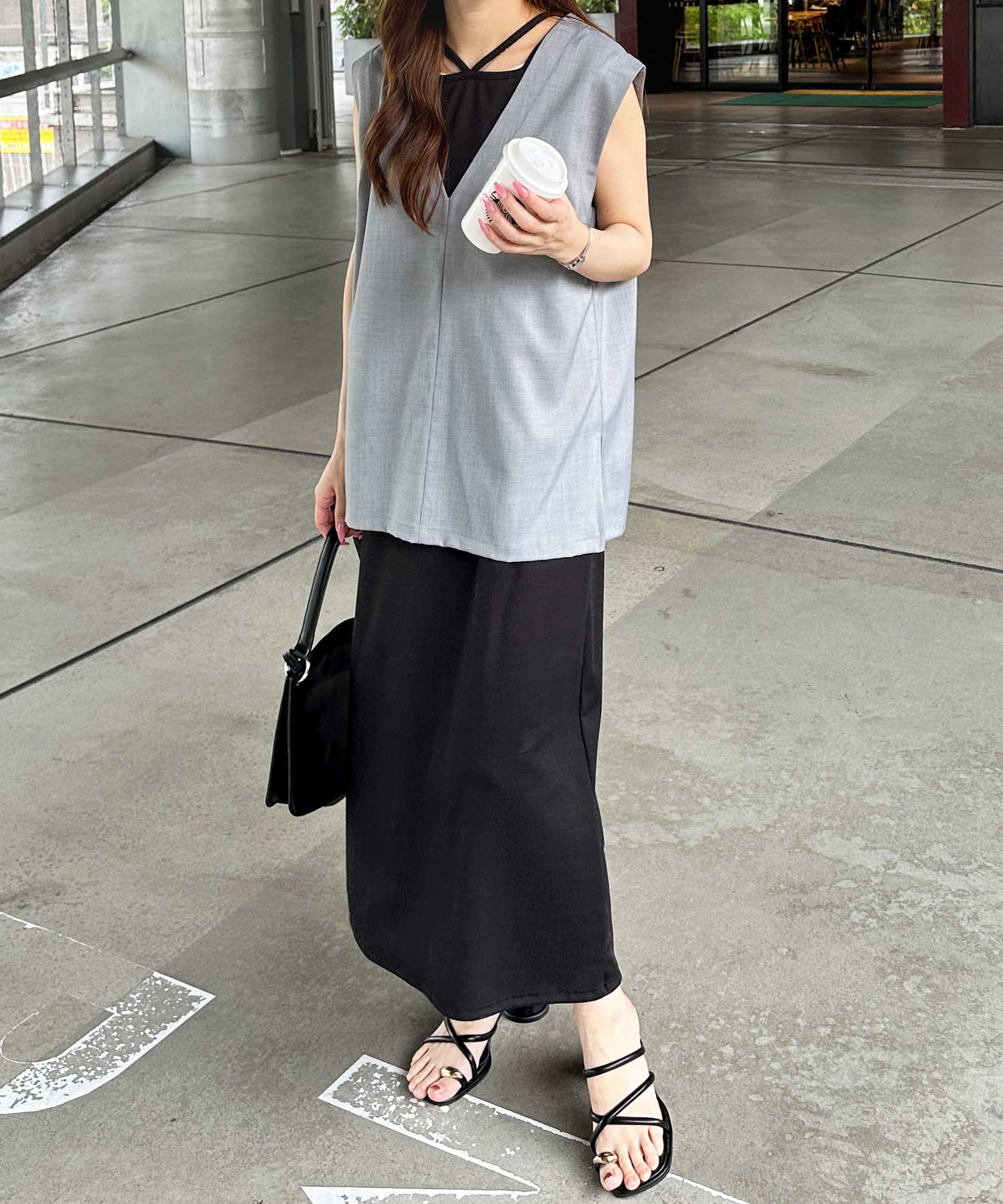 麻調ベスト×リブワンピースのSETは夏のマストバイ!