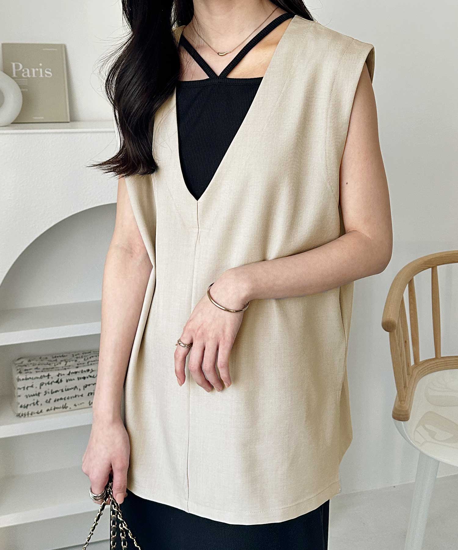 ベストは、落ち感のキレイなさらっとした麻調素材