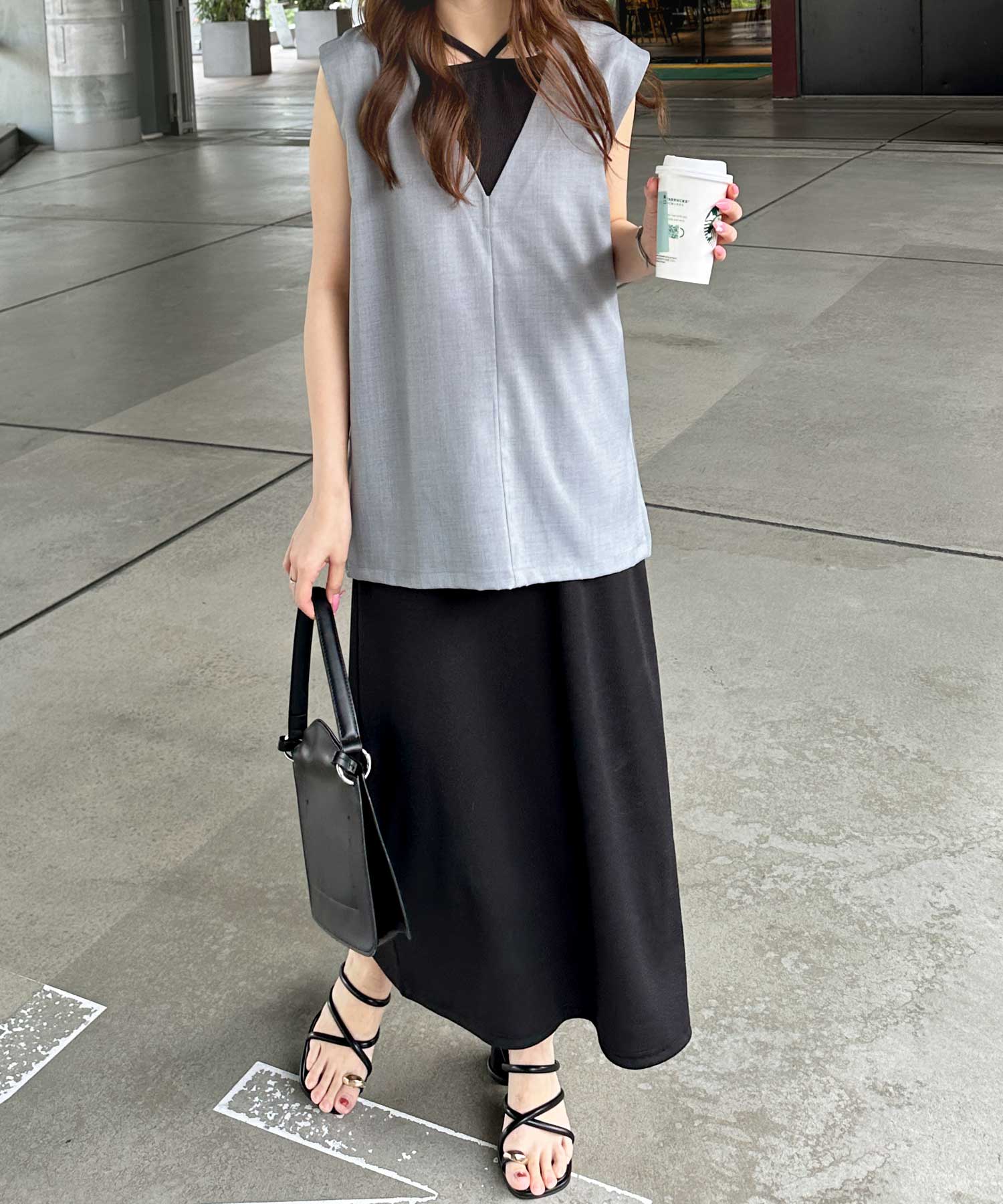 ワンピースは、ホルターネックデザインがトレンド感をプラス。