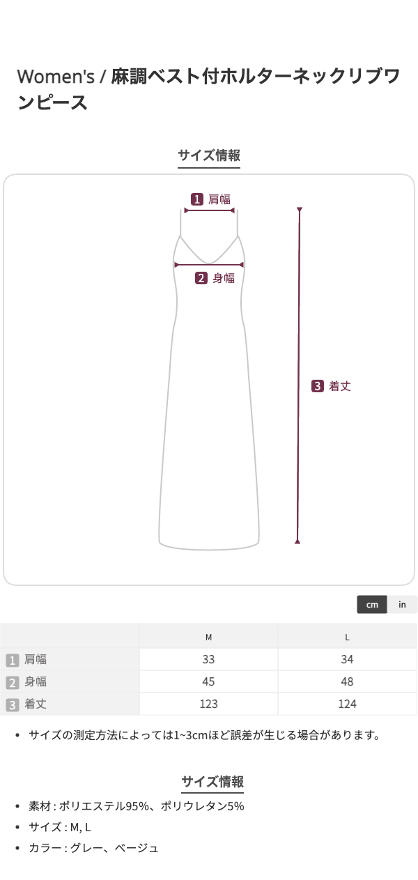 (ワンピース)ポリエステル95%、ポリウレタン5%