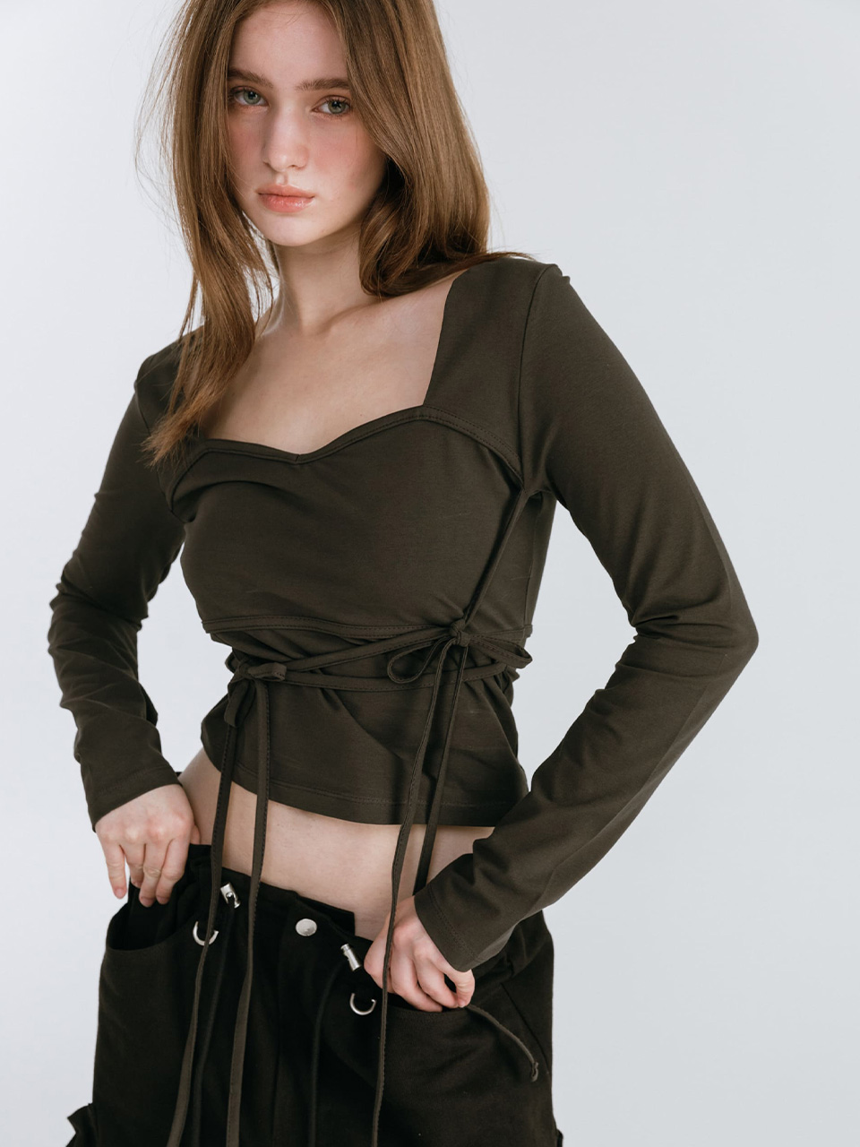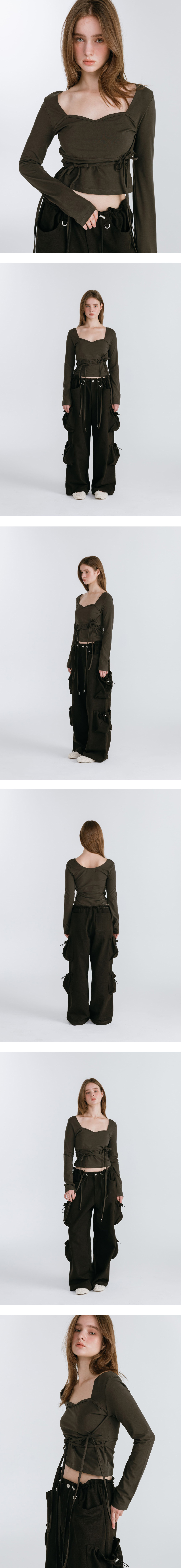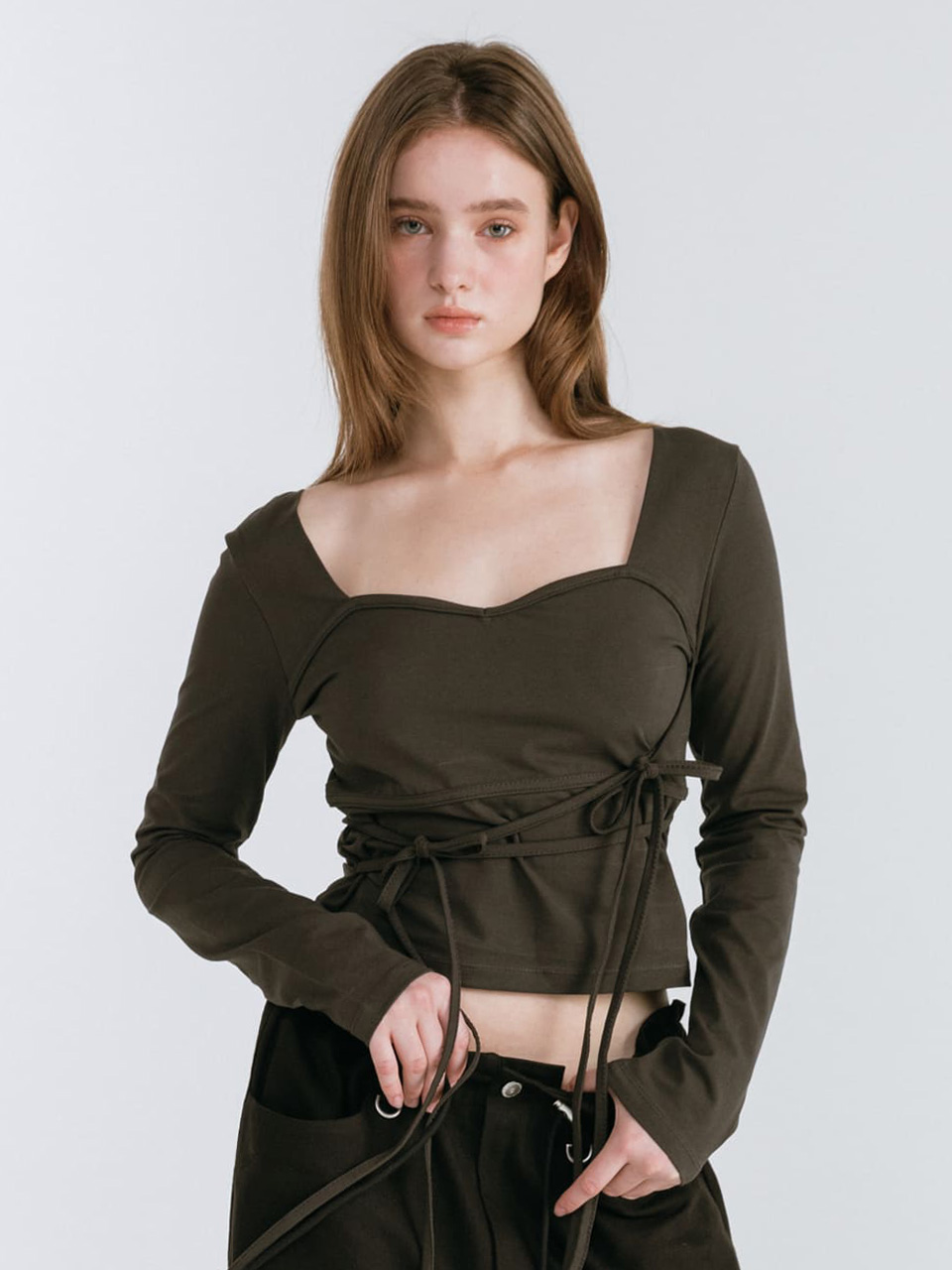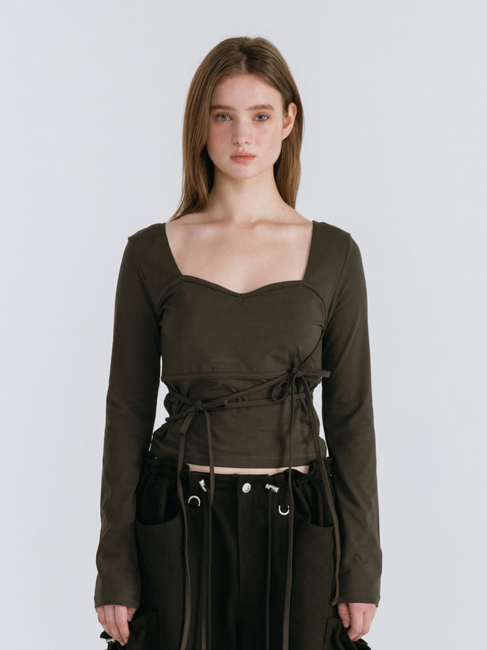 RIBBON HEART NECK T-SHIRT / CHARCOAL