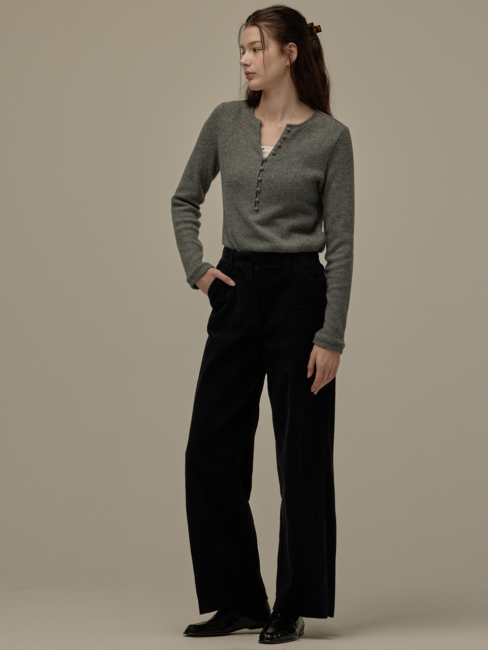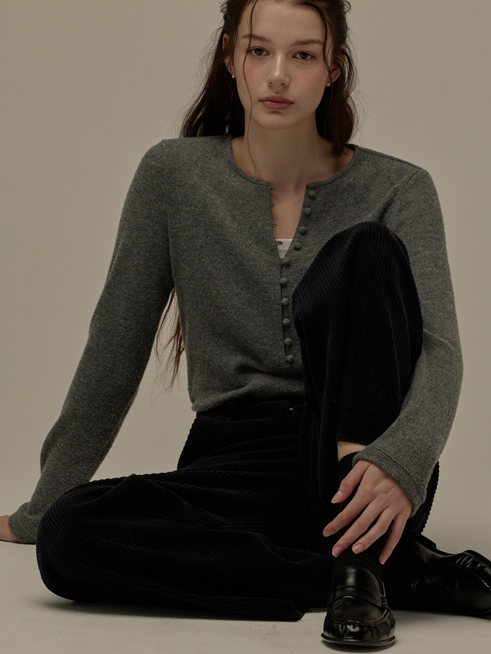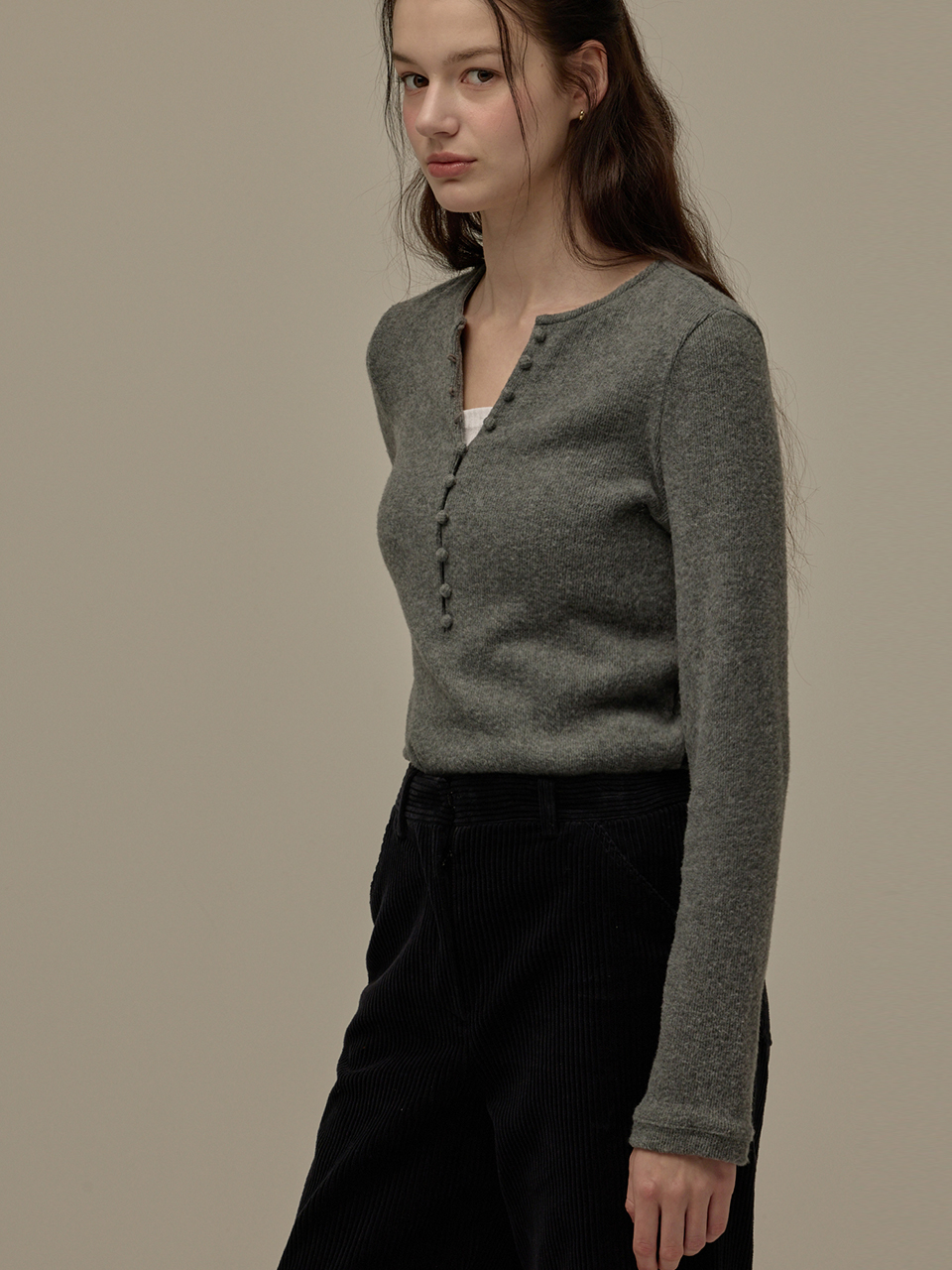 Button point top - Melange grey