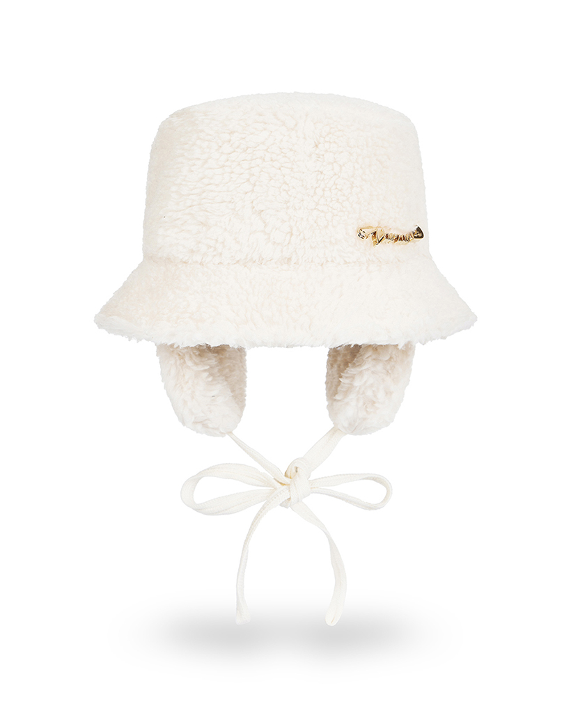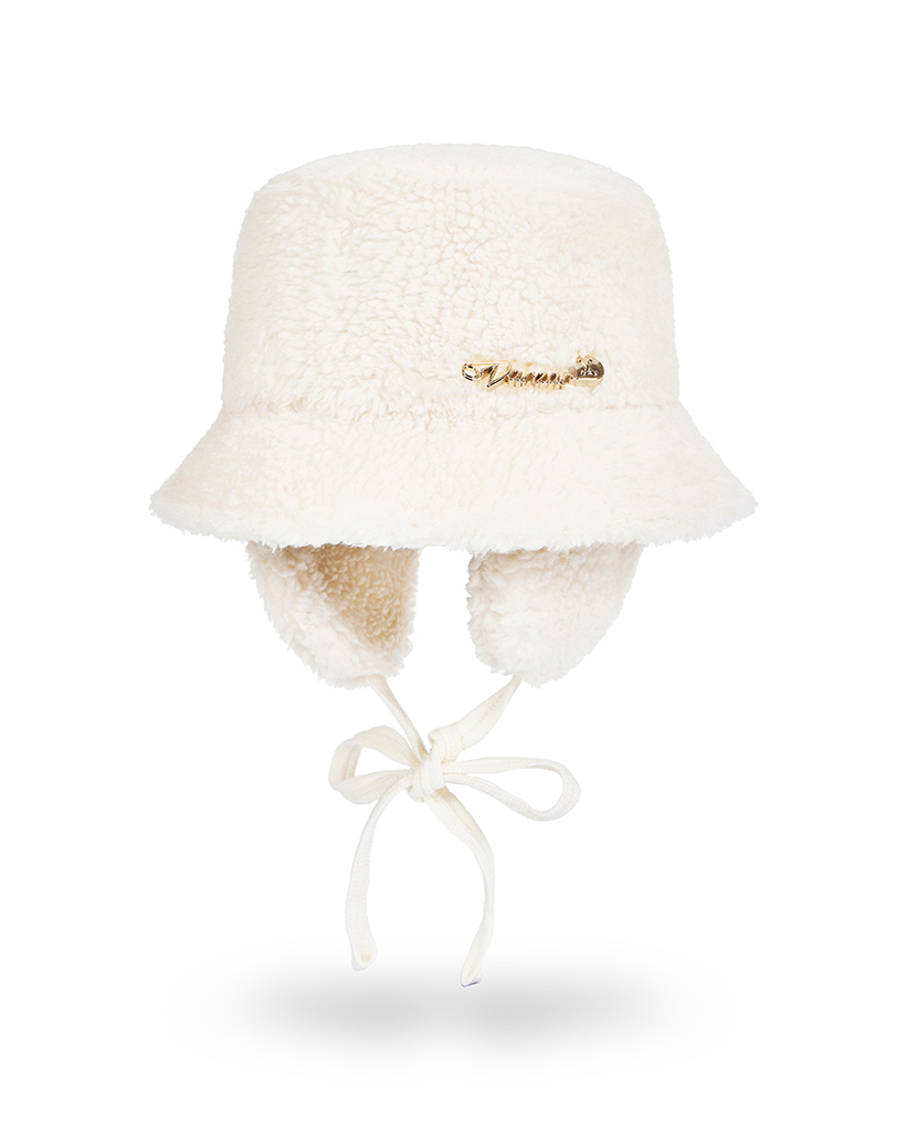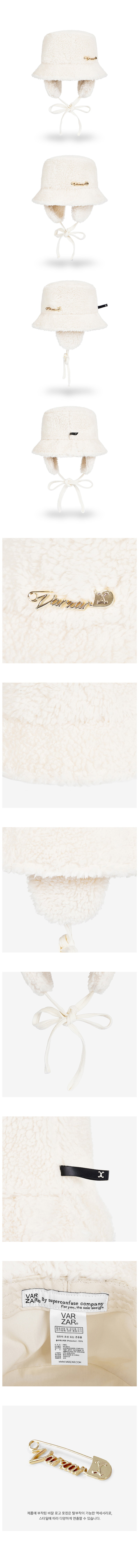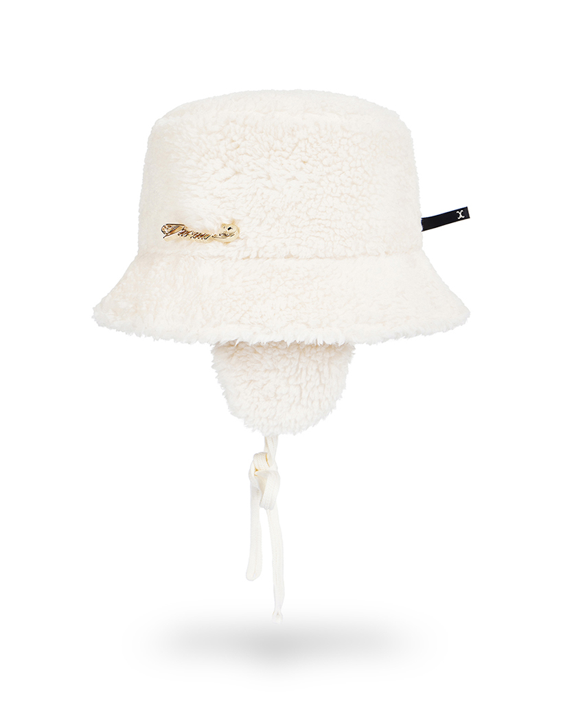 VARZAR Safety Pin Sherpa Fur Flap Bucket Hat Ivory