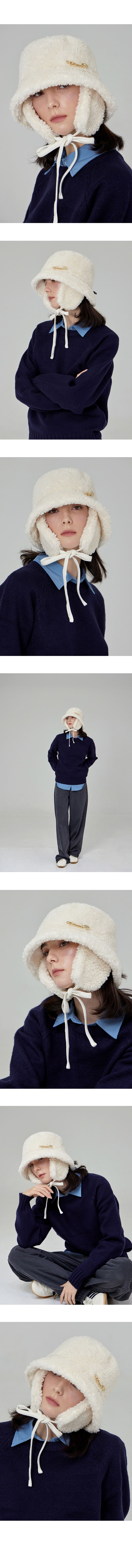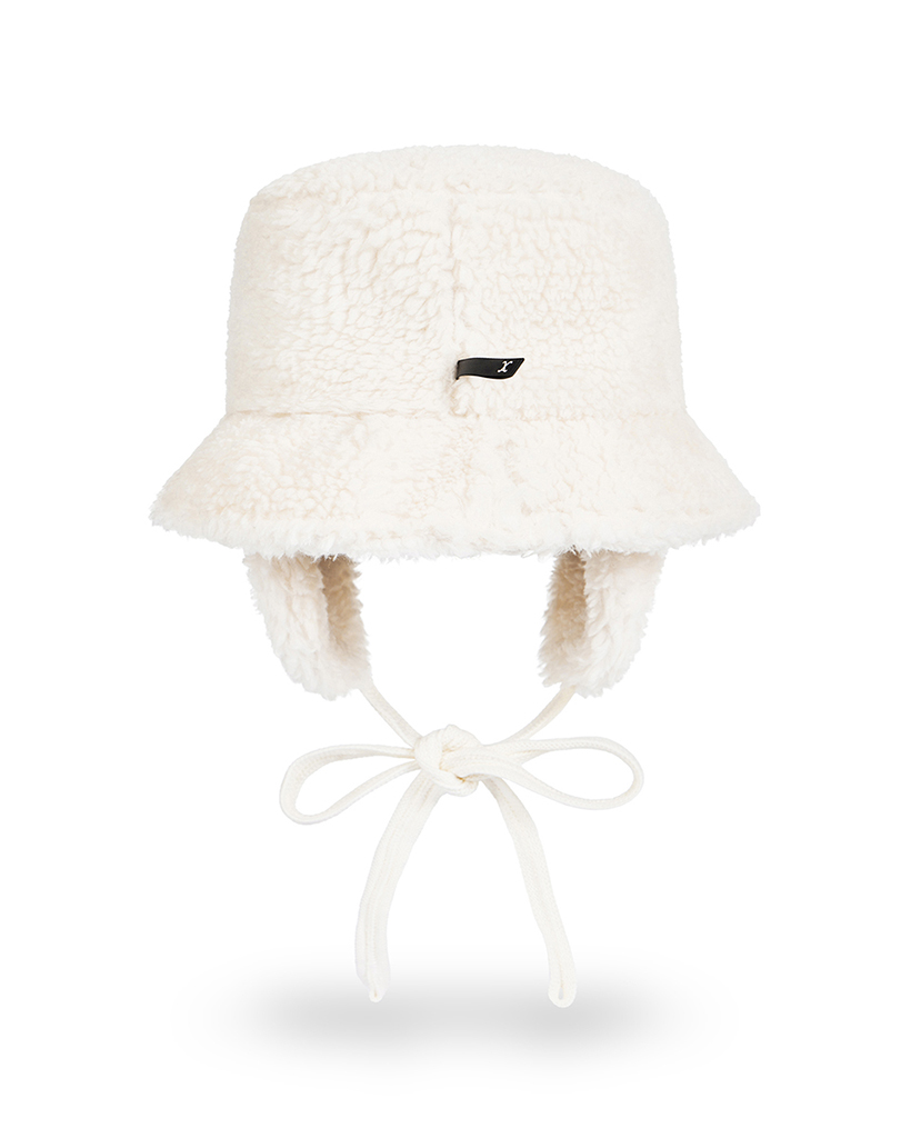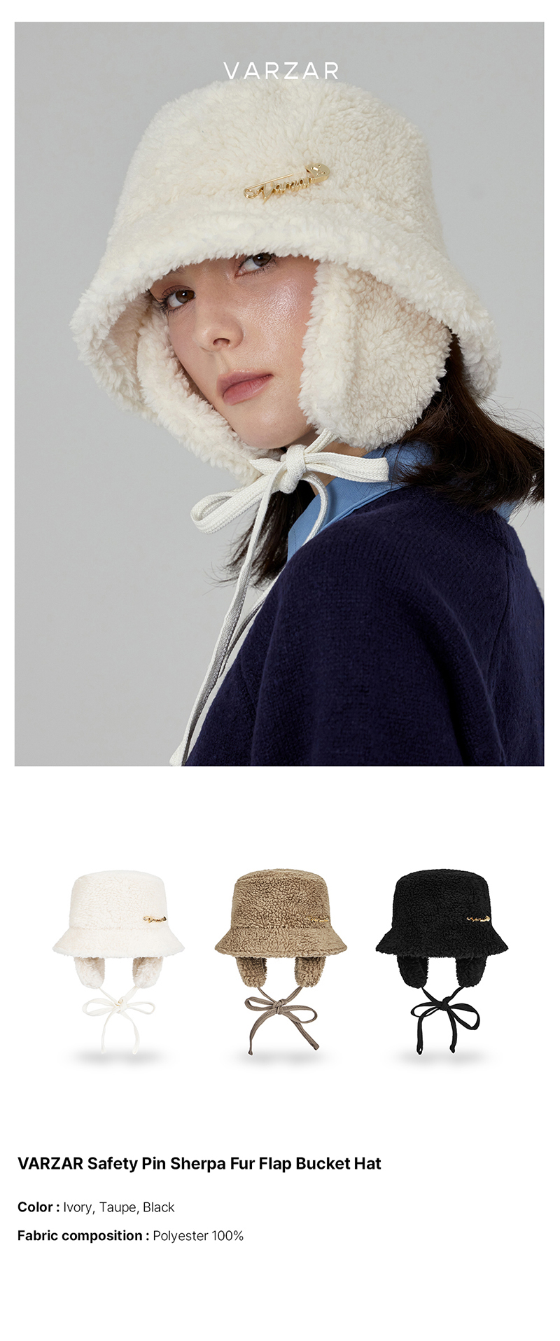 VARZAR Safety Pin Sherpa Fur Flap Bucket Hat Ivory