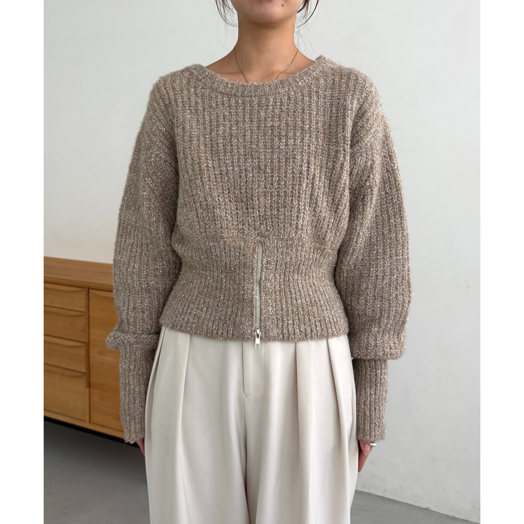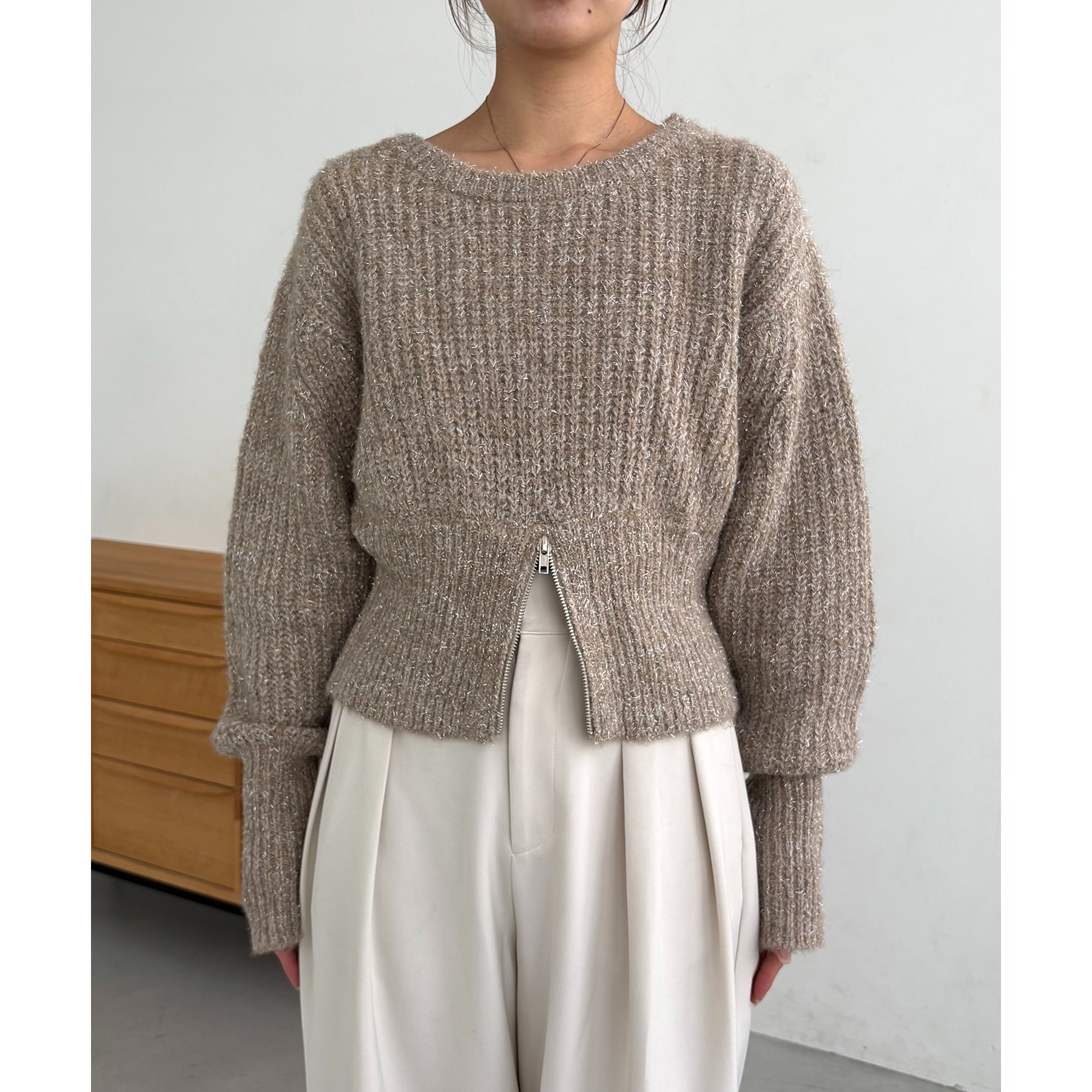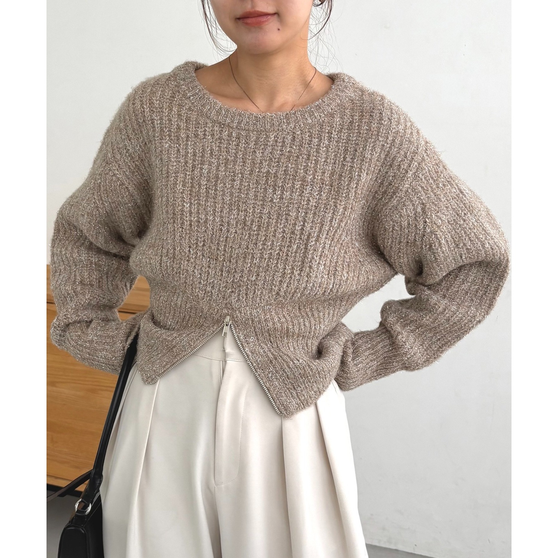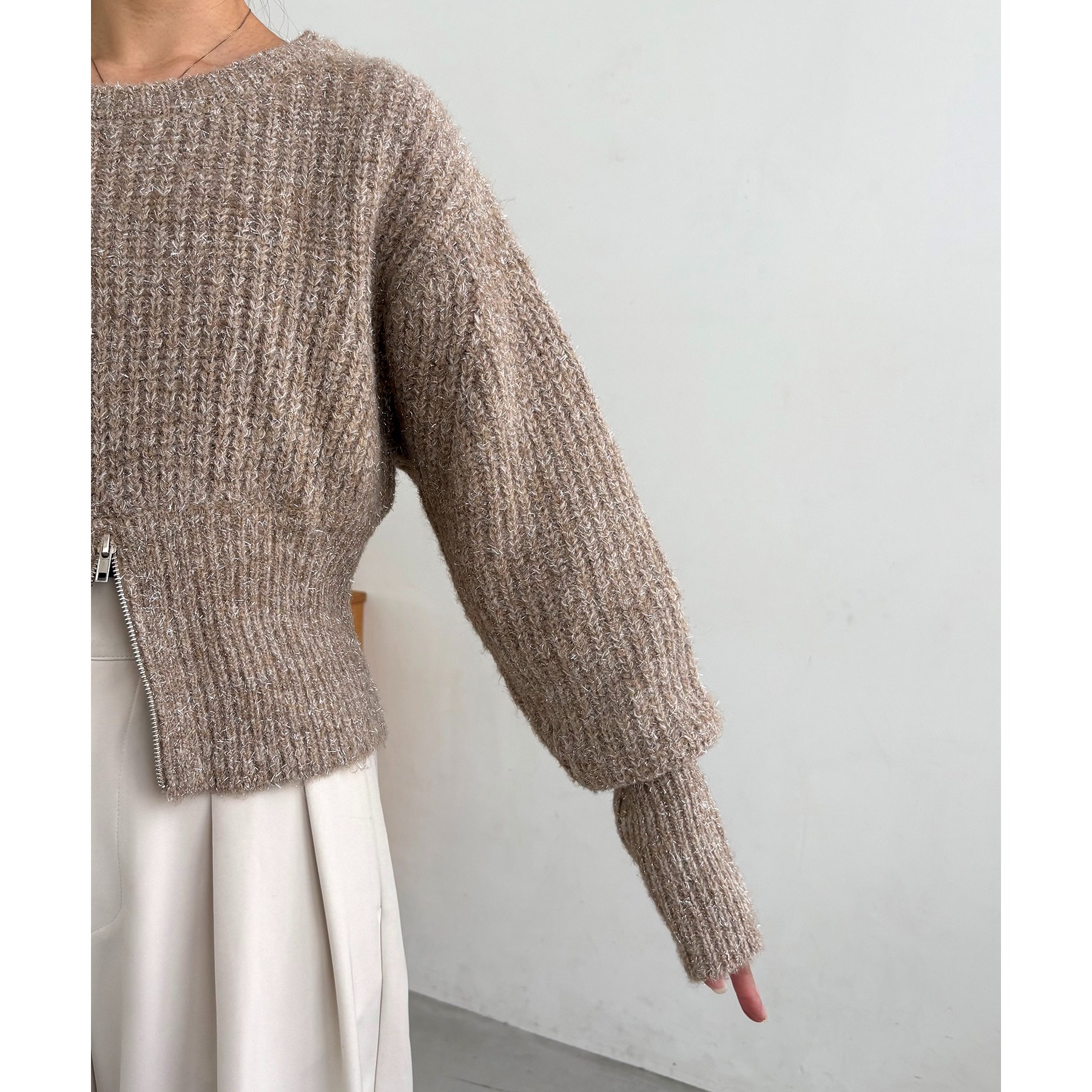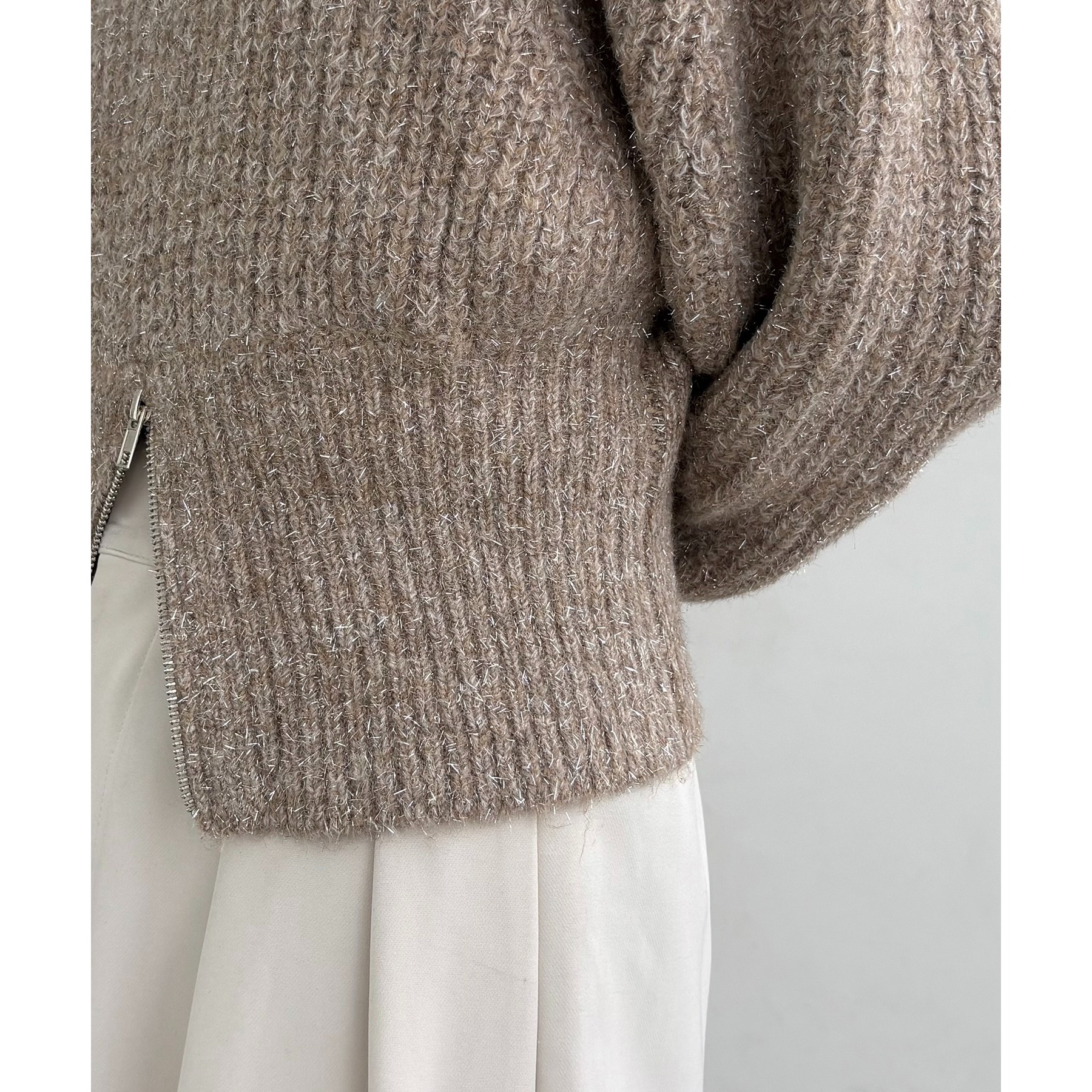 裾ジップラメプルオーバー