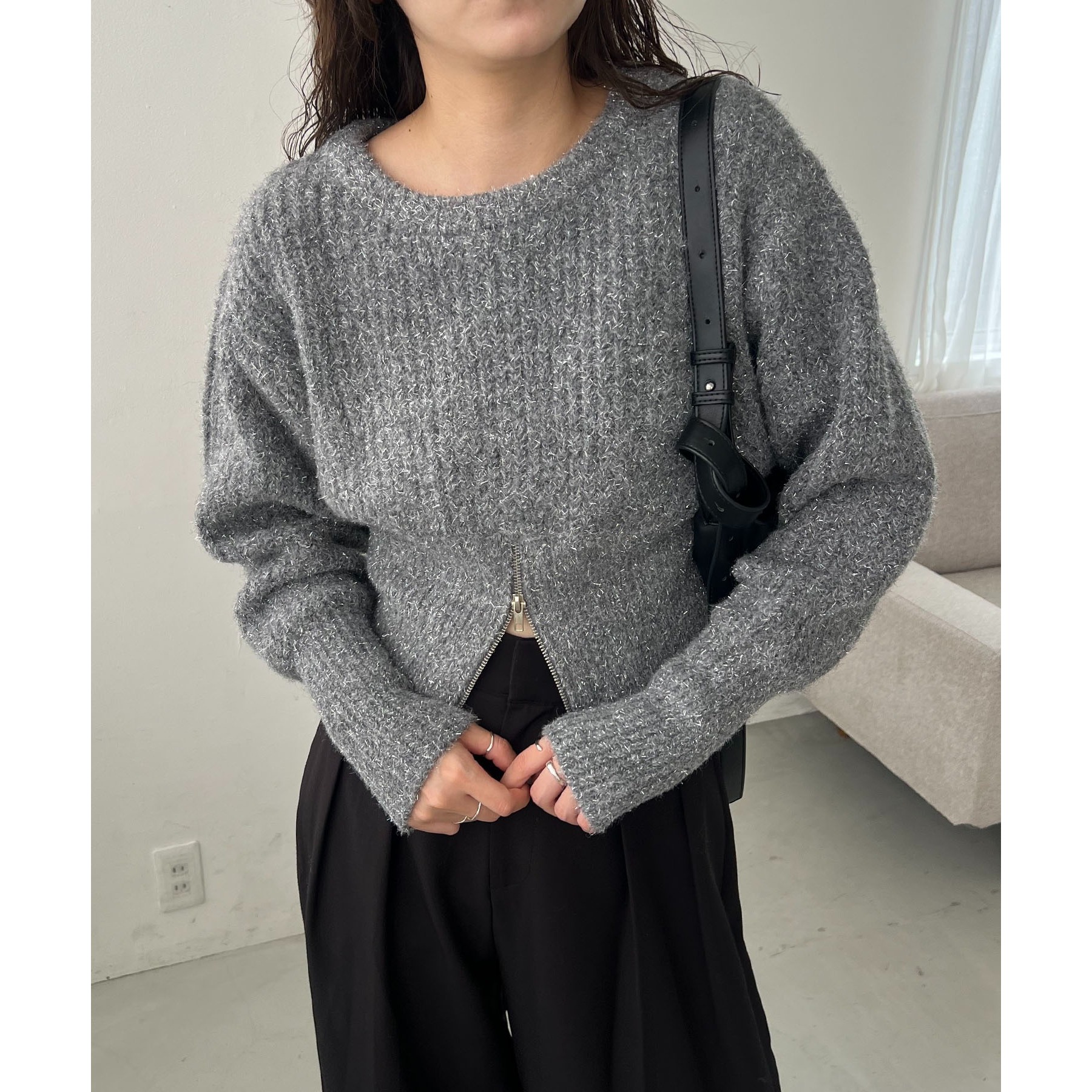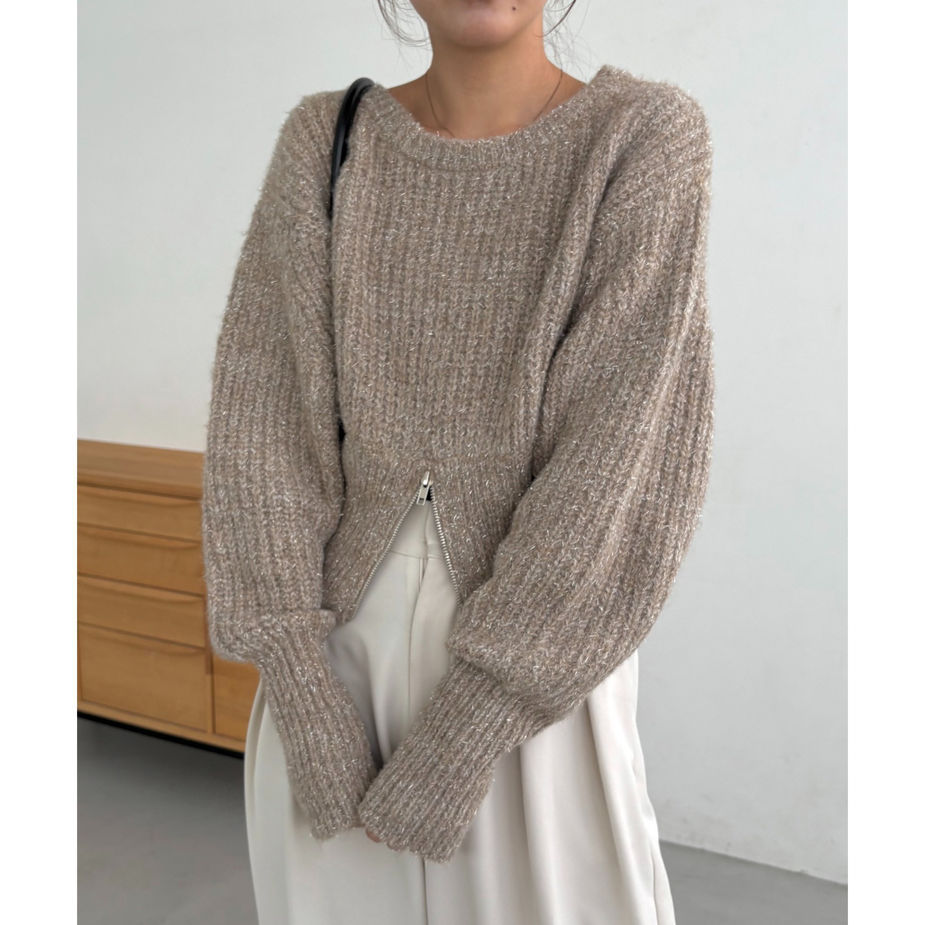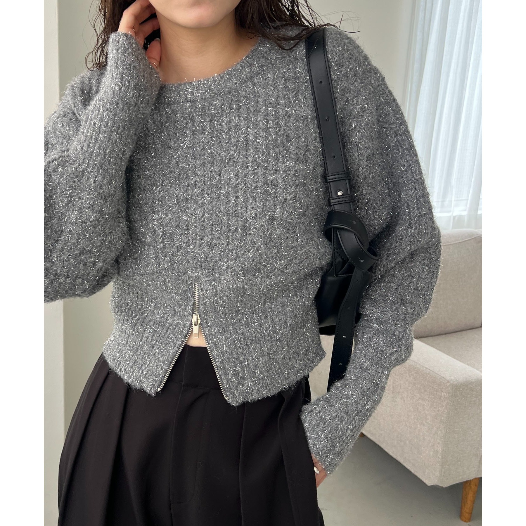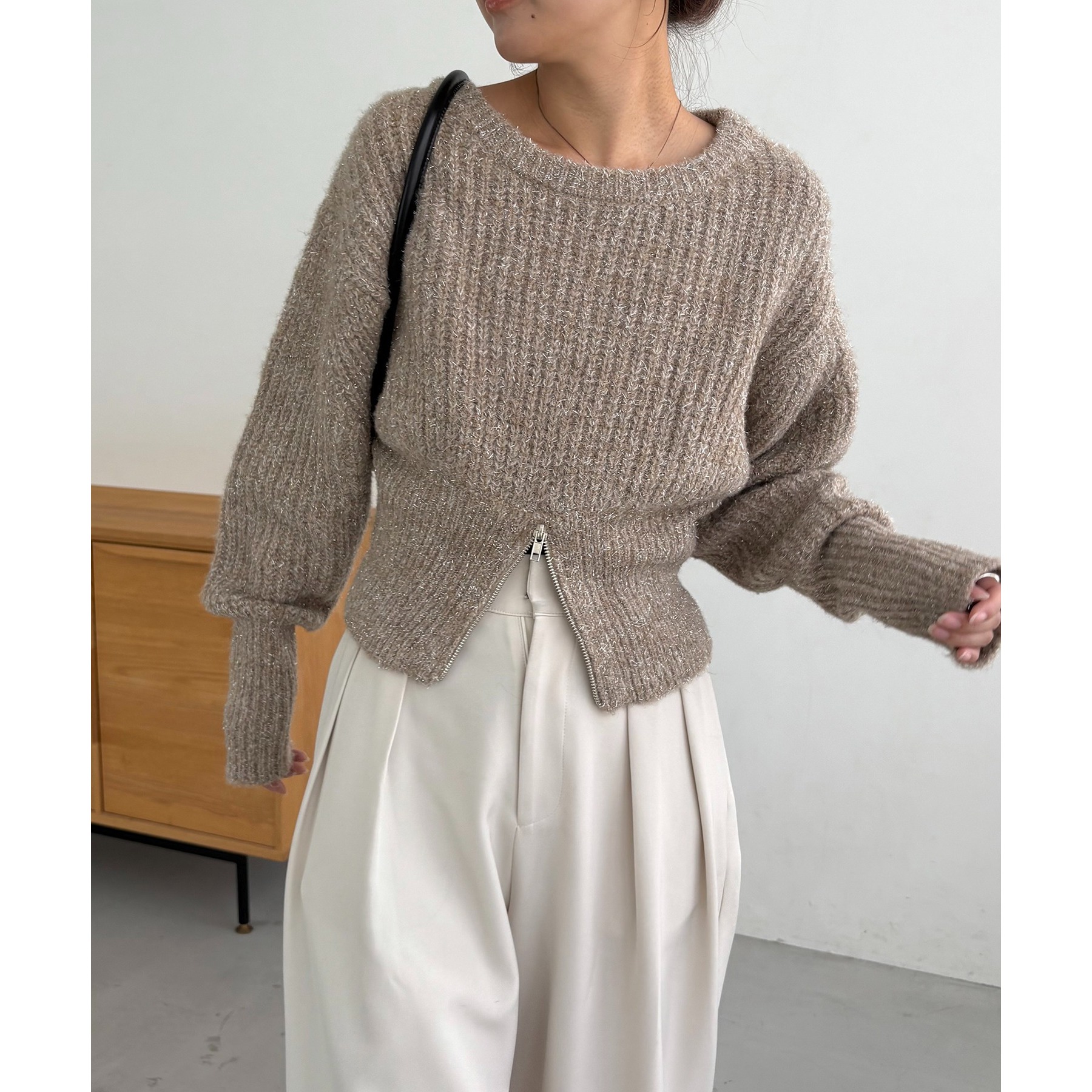 裾ジップラメプルオーバー