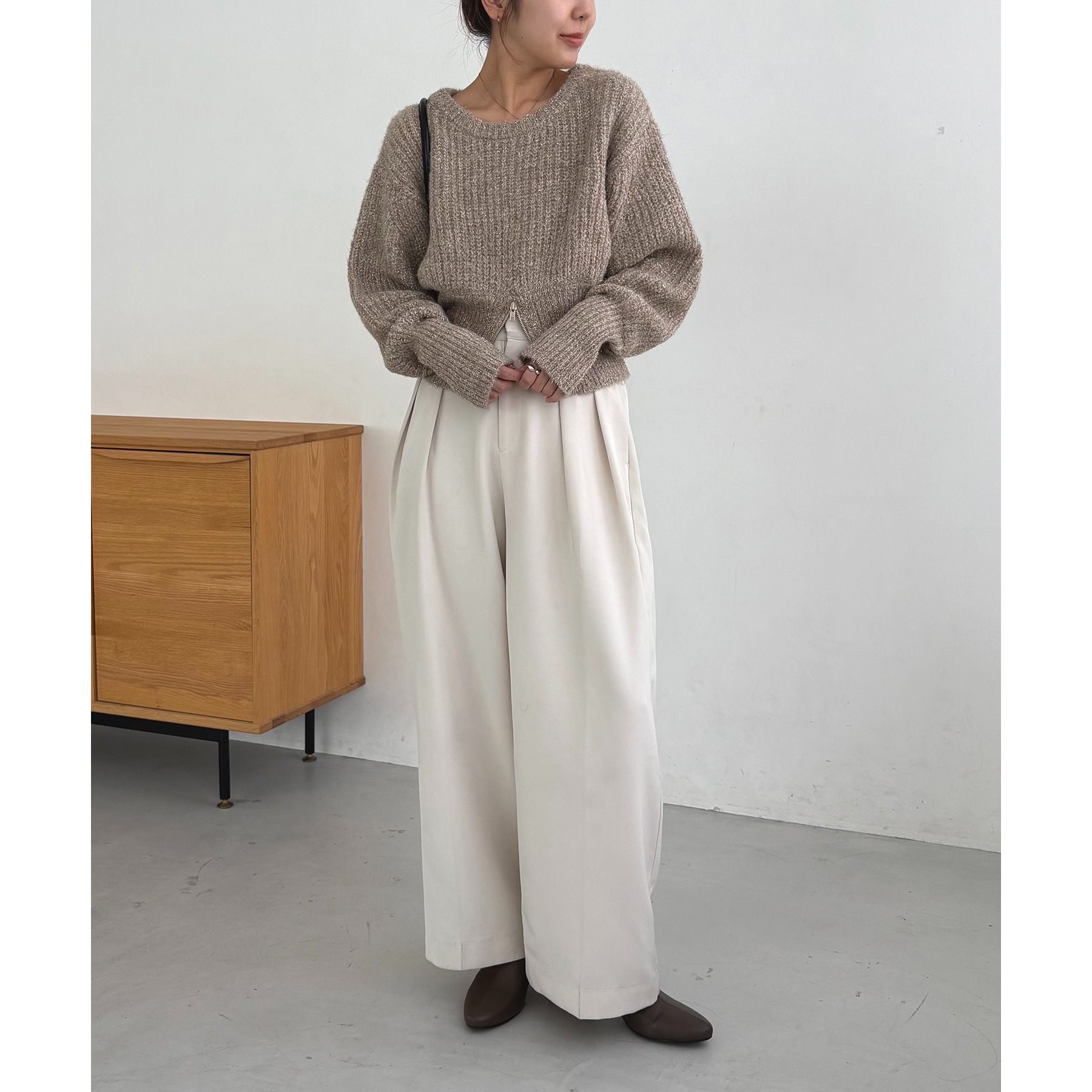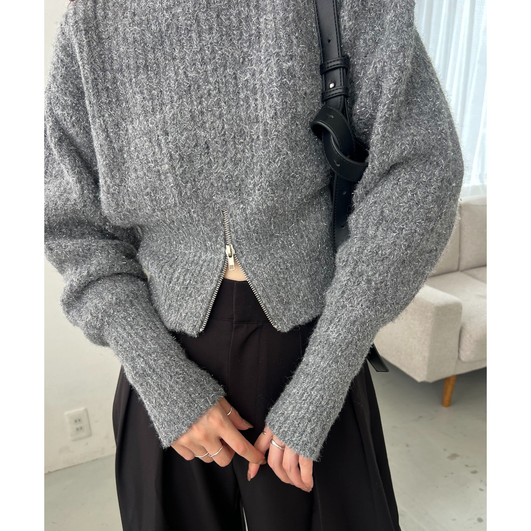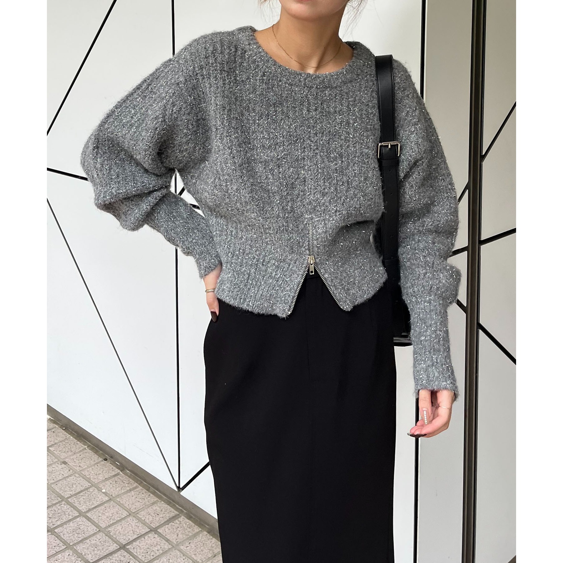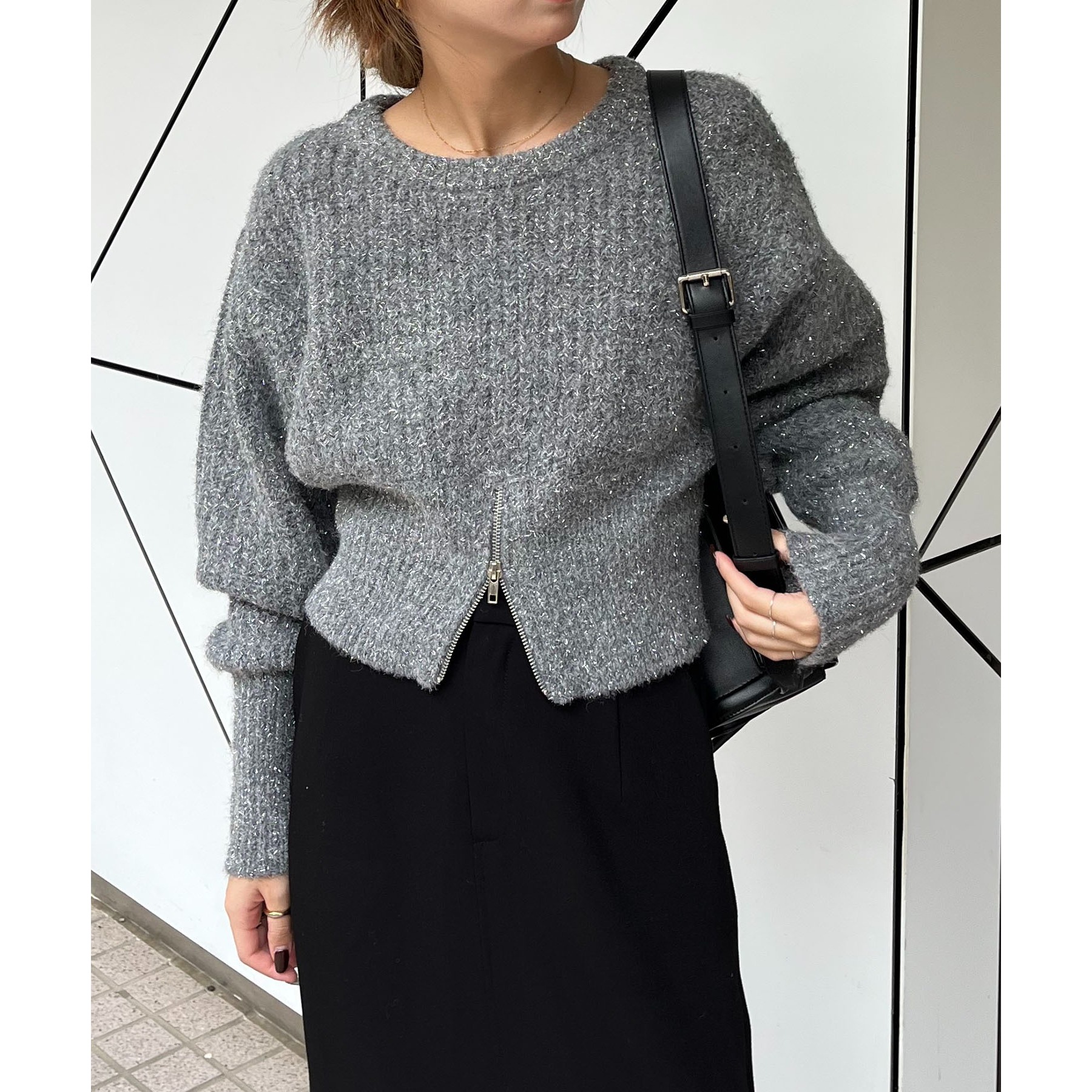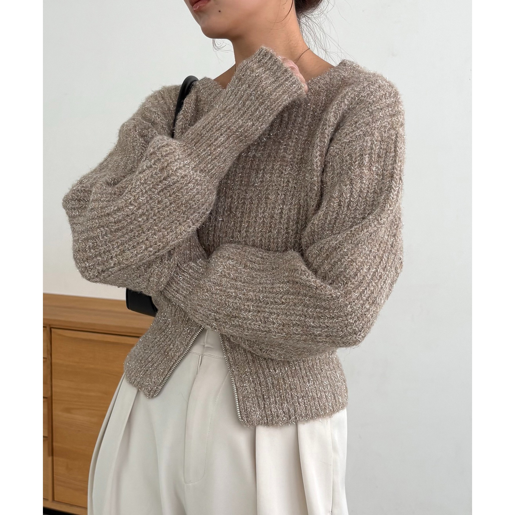 裾ジップラメプルオーバー