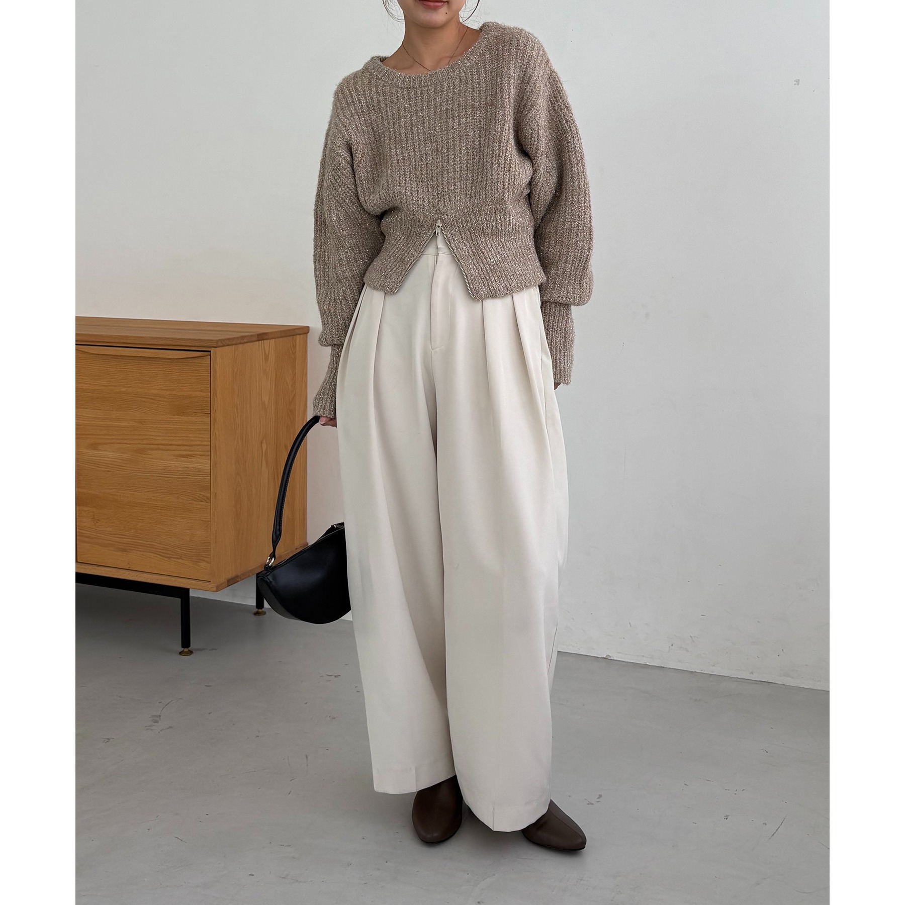 【ベージュ着用アイテム】2タックワイドパンツ