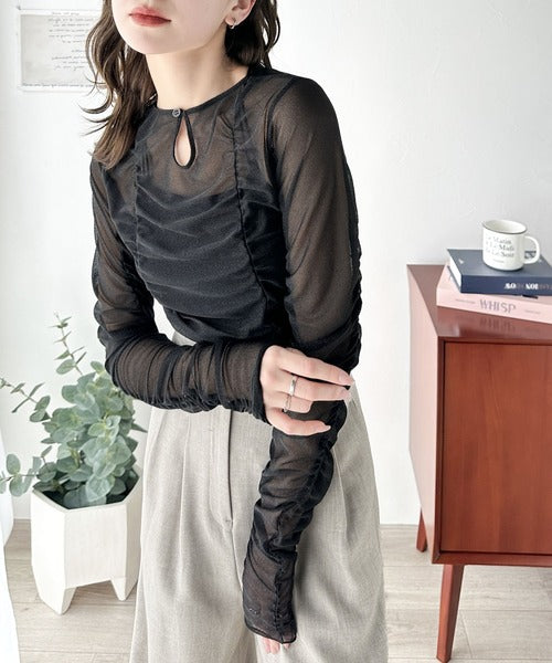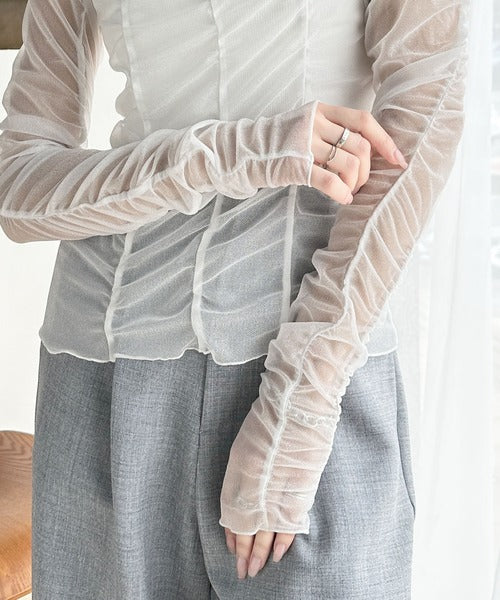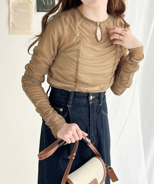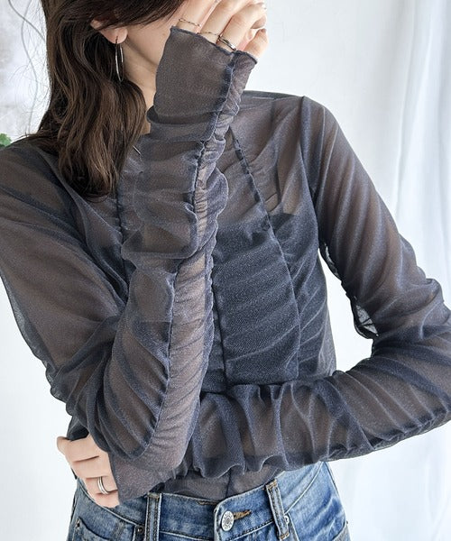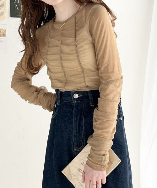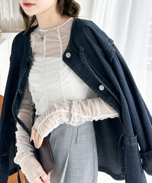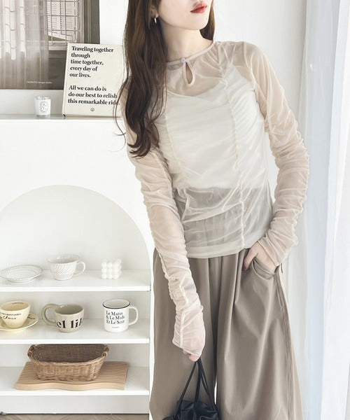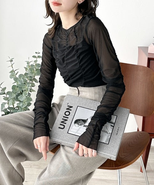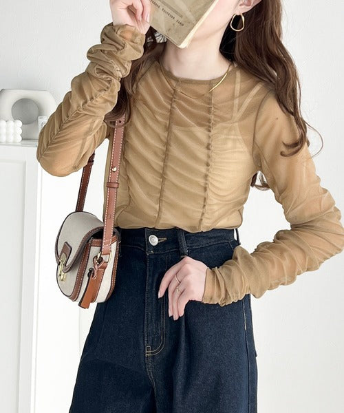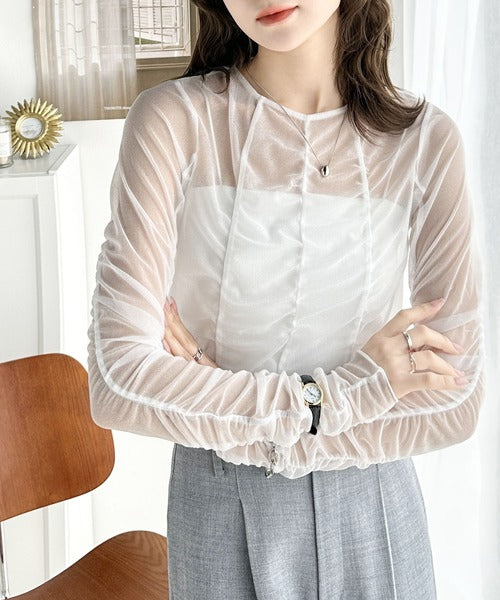 一枚でも、レイヤードでも。華やかに目を惹くシアートップス。