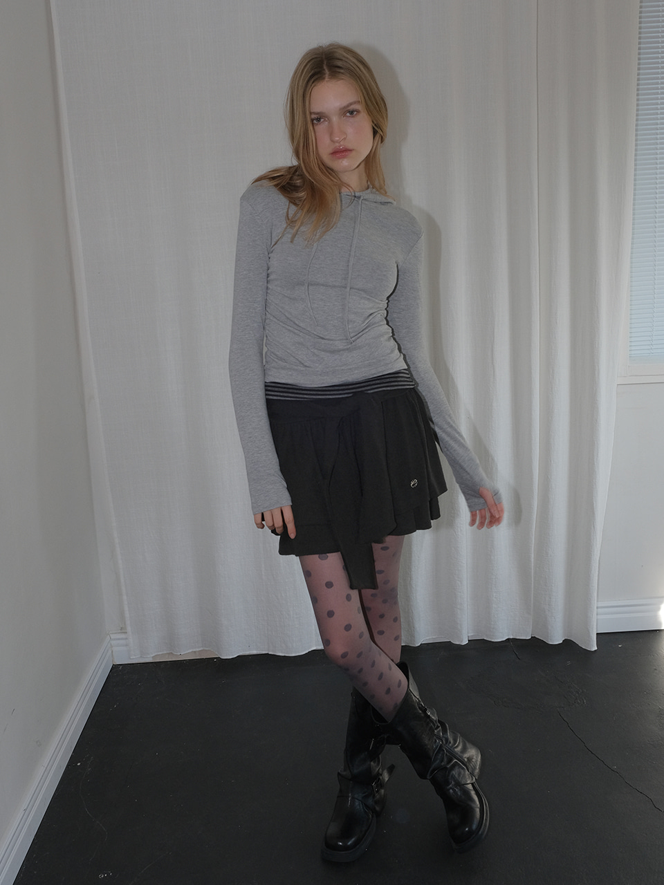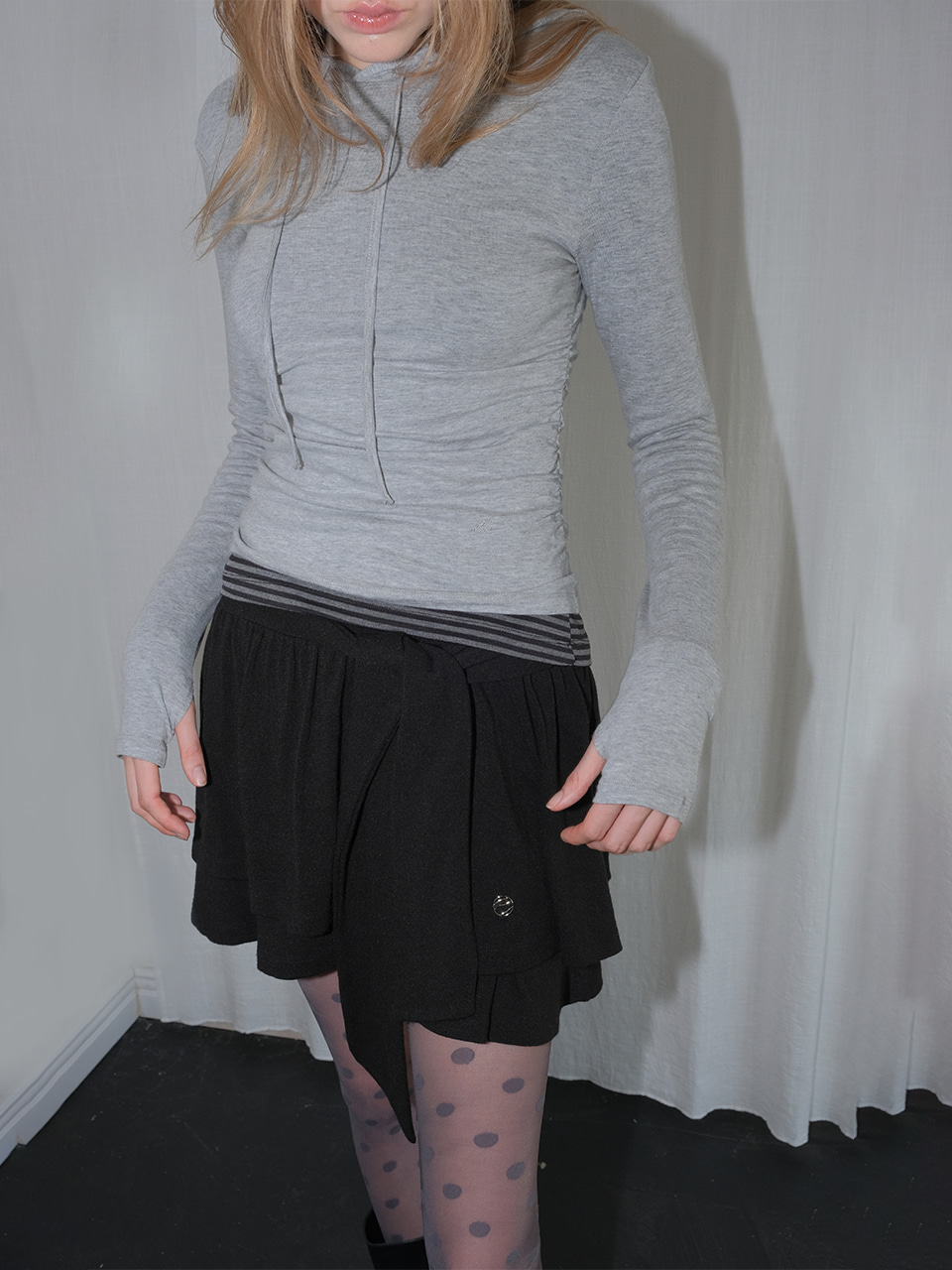 Knotted Frill Mini Skirt, Black