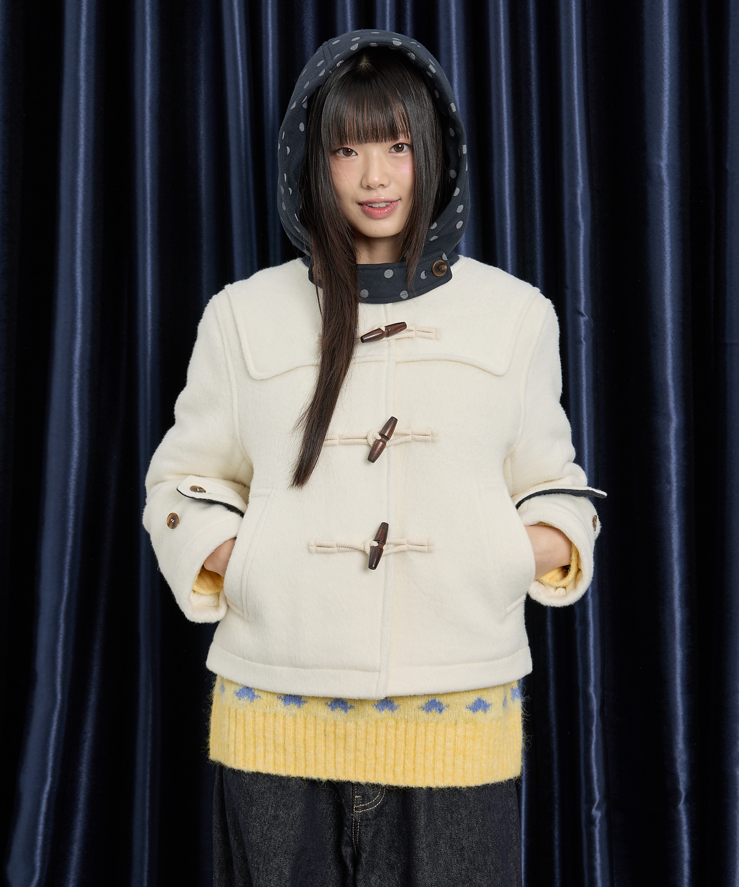 [K-POPアイドル着用] Dot Duffle Crop Coat IVORY
