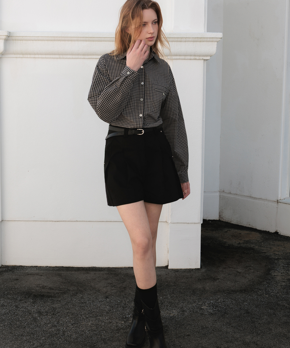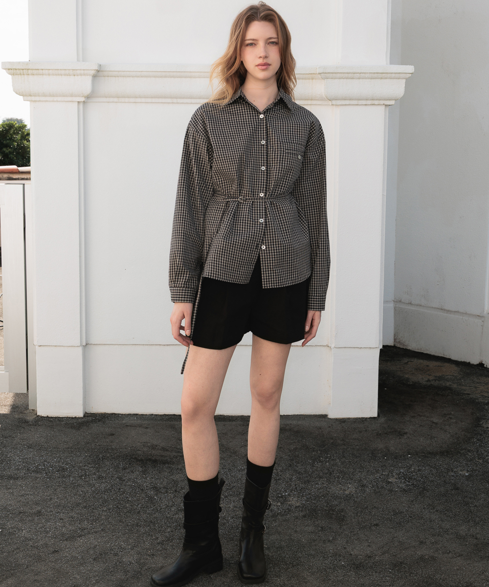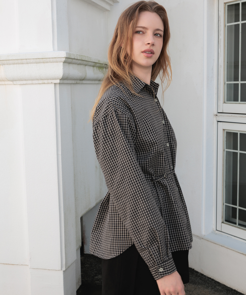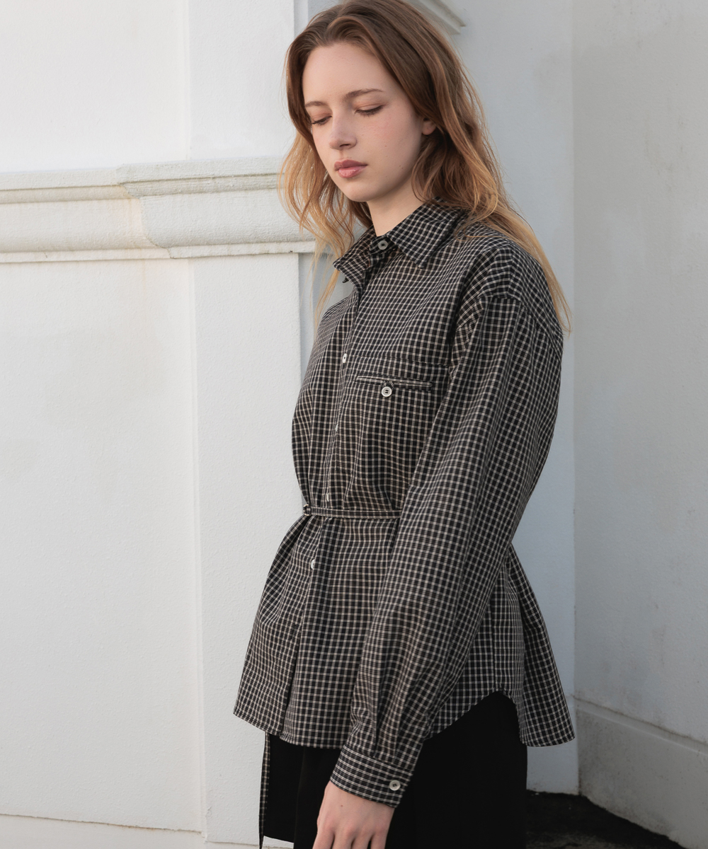 取り外し可能な同素材ベルトで多様なスタイリングができるツーウェイチェックシャツです。