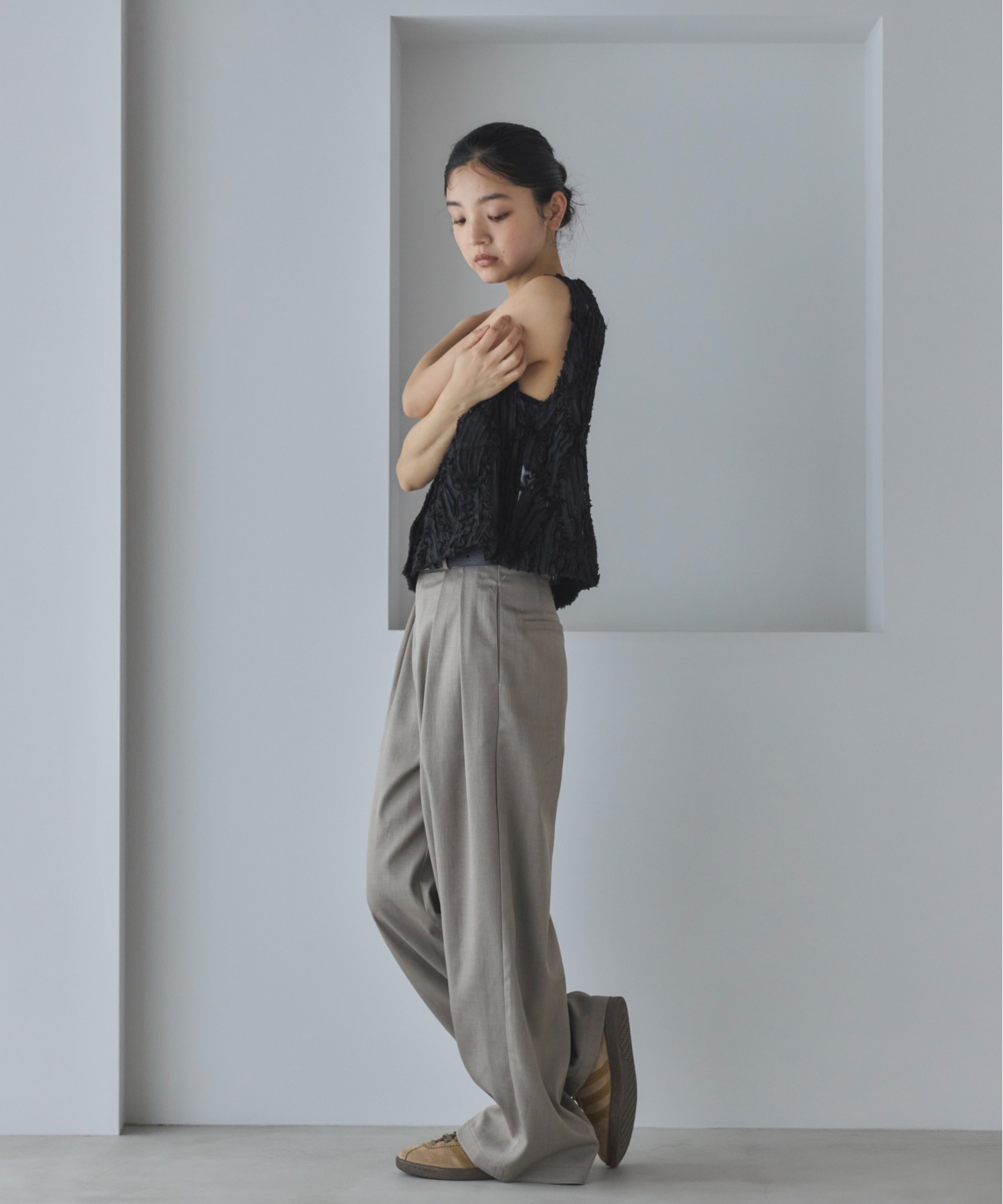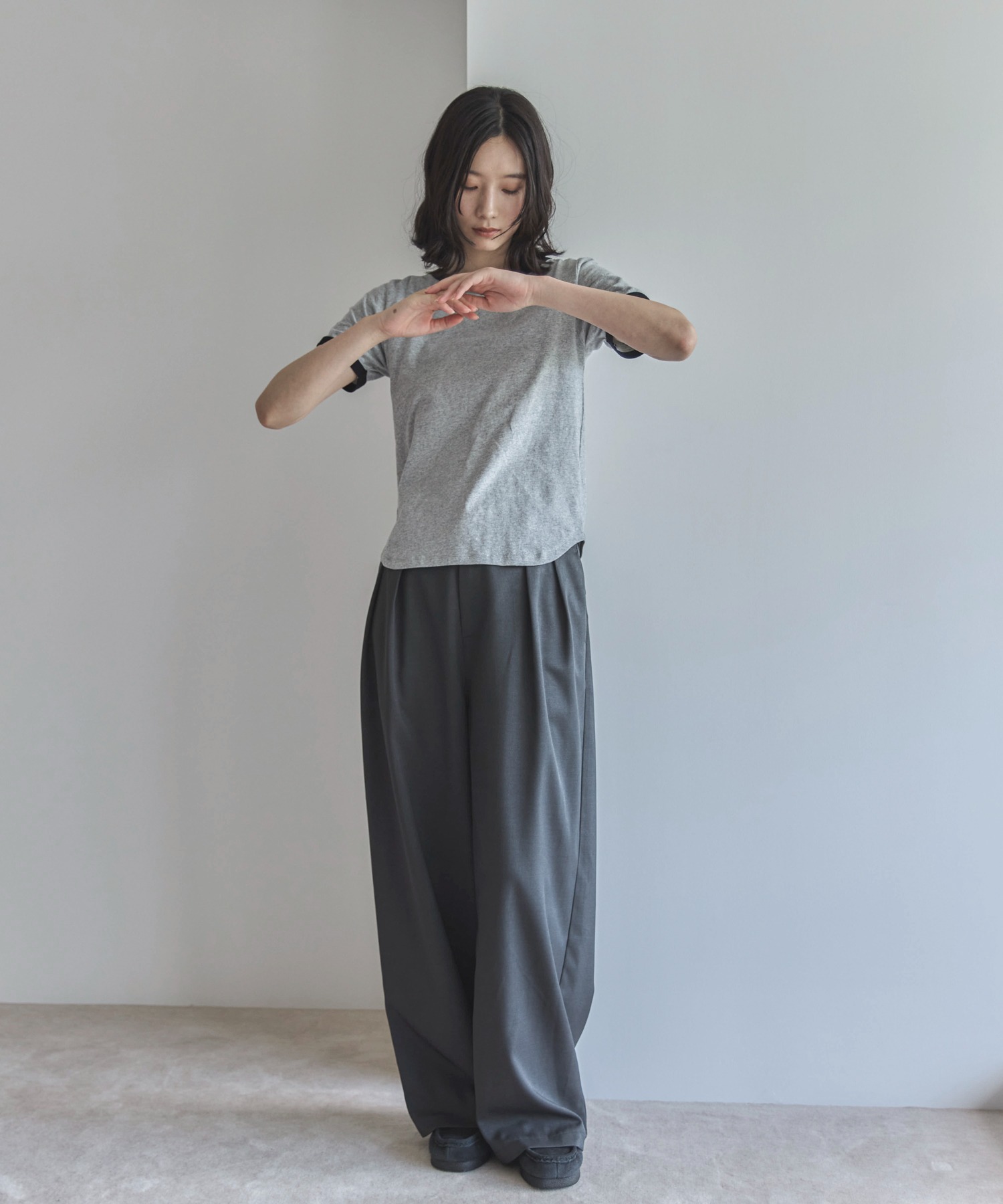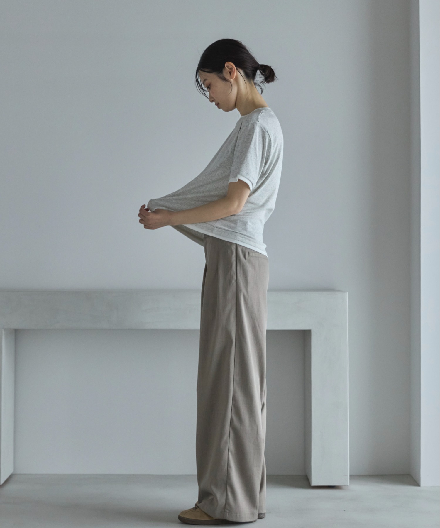 ウエストのダブルタックデザインで腰回りの張り感を軽減しノンストレスな履き心地◎