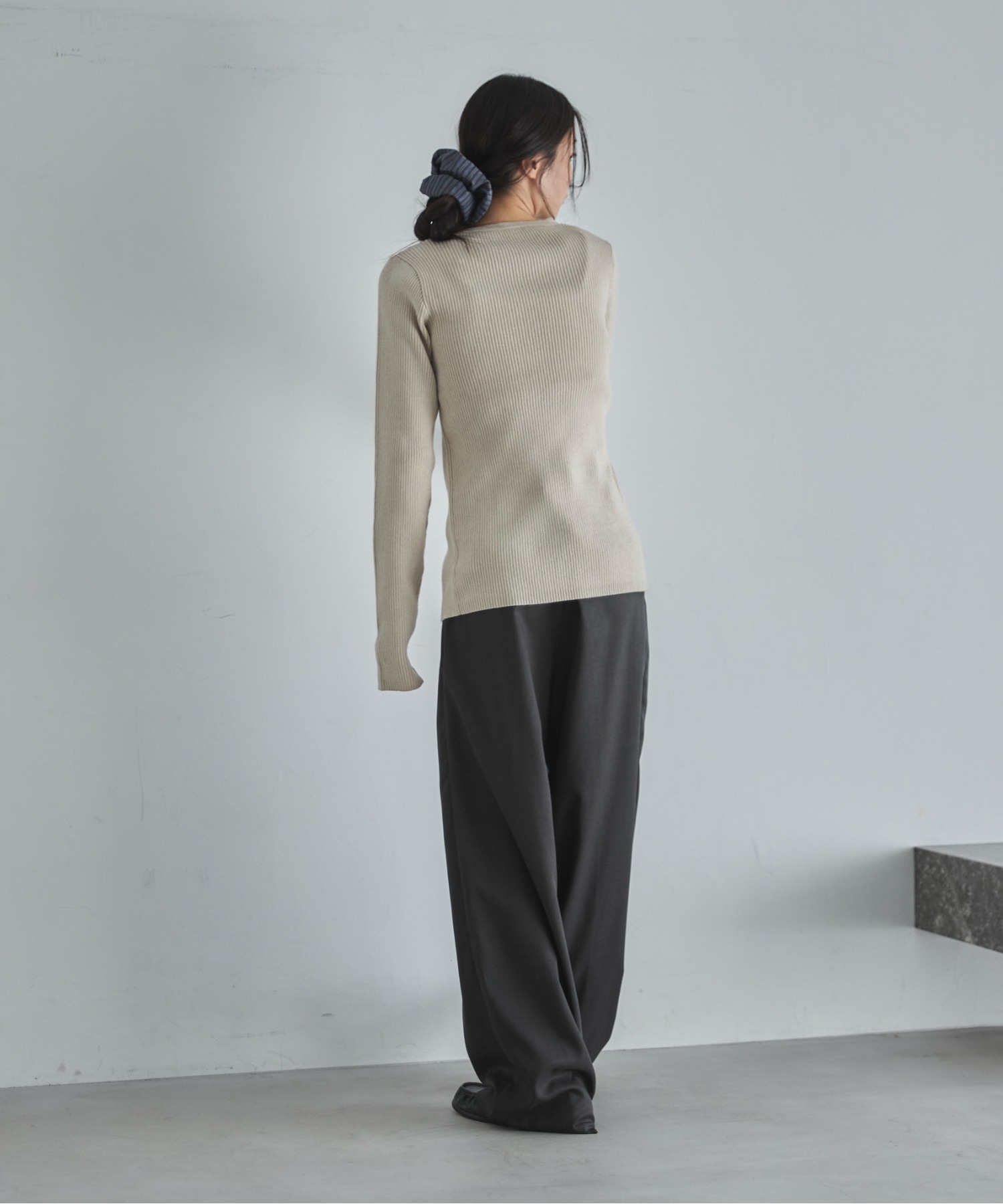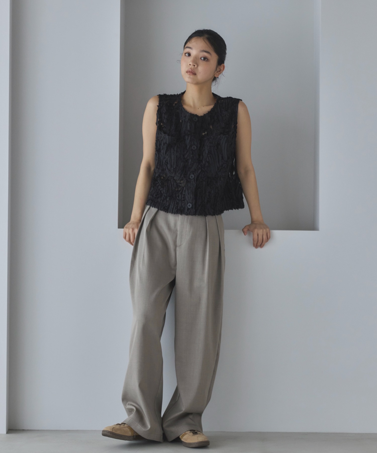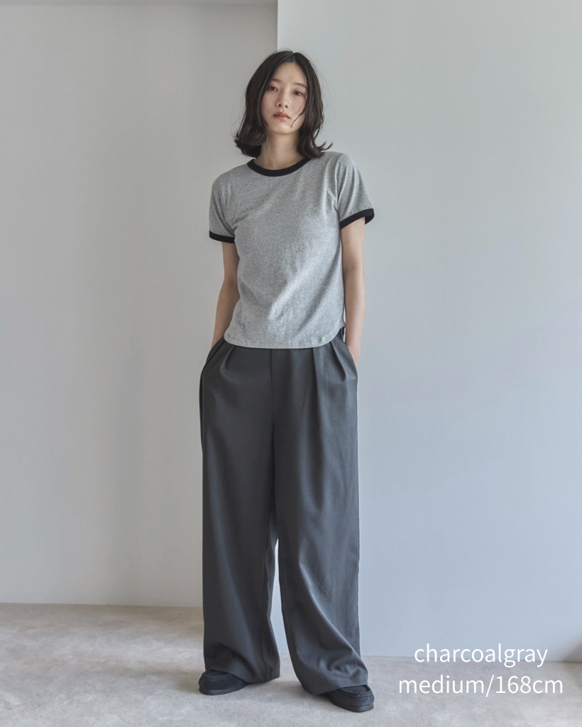 ウエストのダブルタックデザインで腰回りの張り感を軽減しノンストレスな履き心地◎