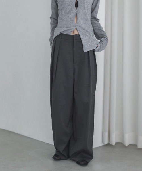 【4size展開/セットアップ可】ダブルタックワイドスラックス