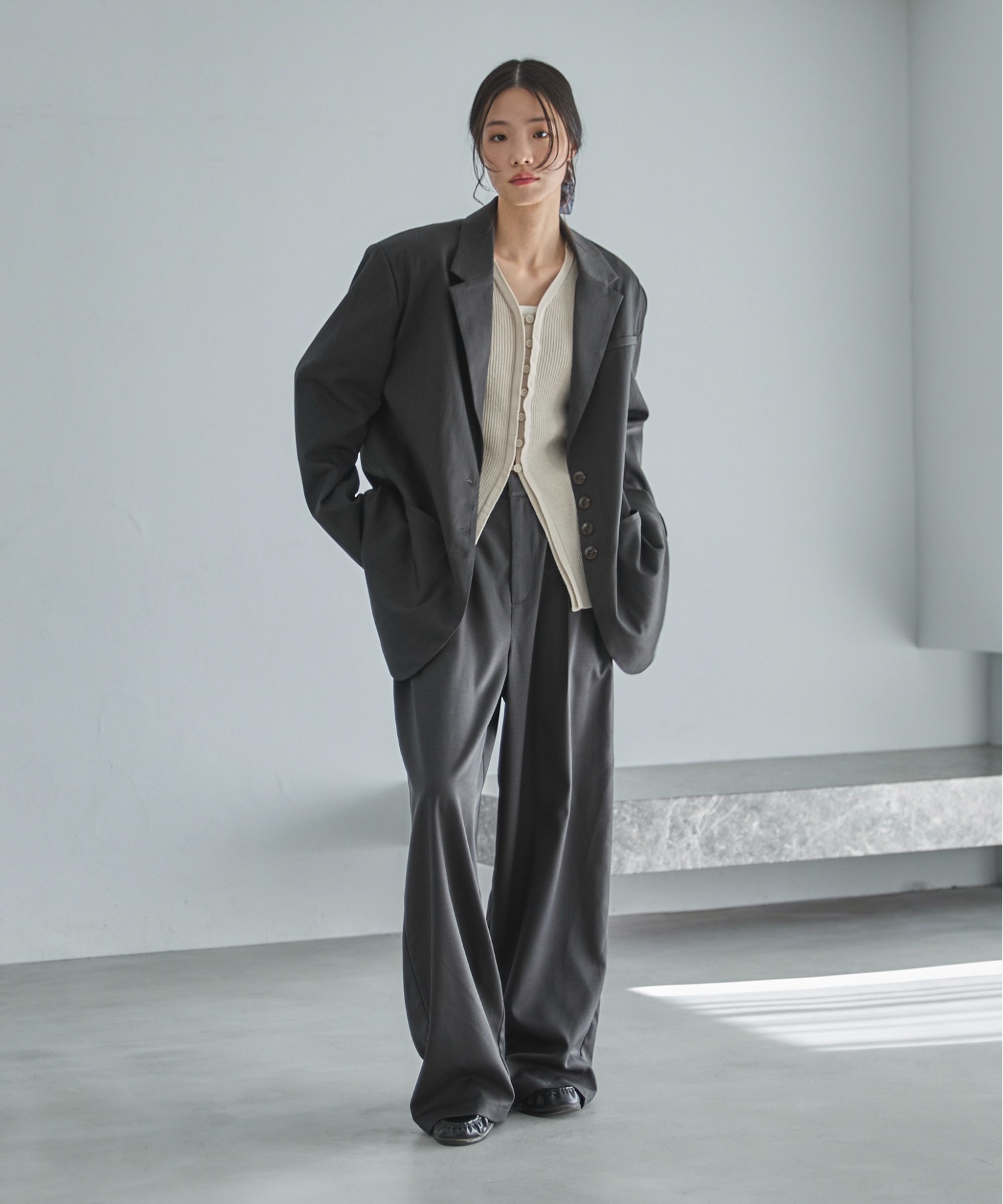 シンプルなストレートシルエットで程よいワイドシルエットがスタイリングを今っぽくアップデートします。