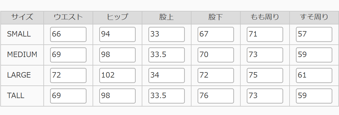 LサイズにはTallサイズと記載された下げ札が、TallサイズにはLLサイズと記載された下げ札が付いている場合がございますのであらかじめご了承ください。