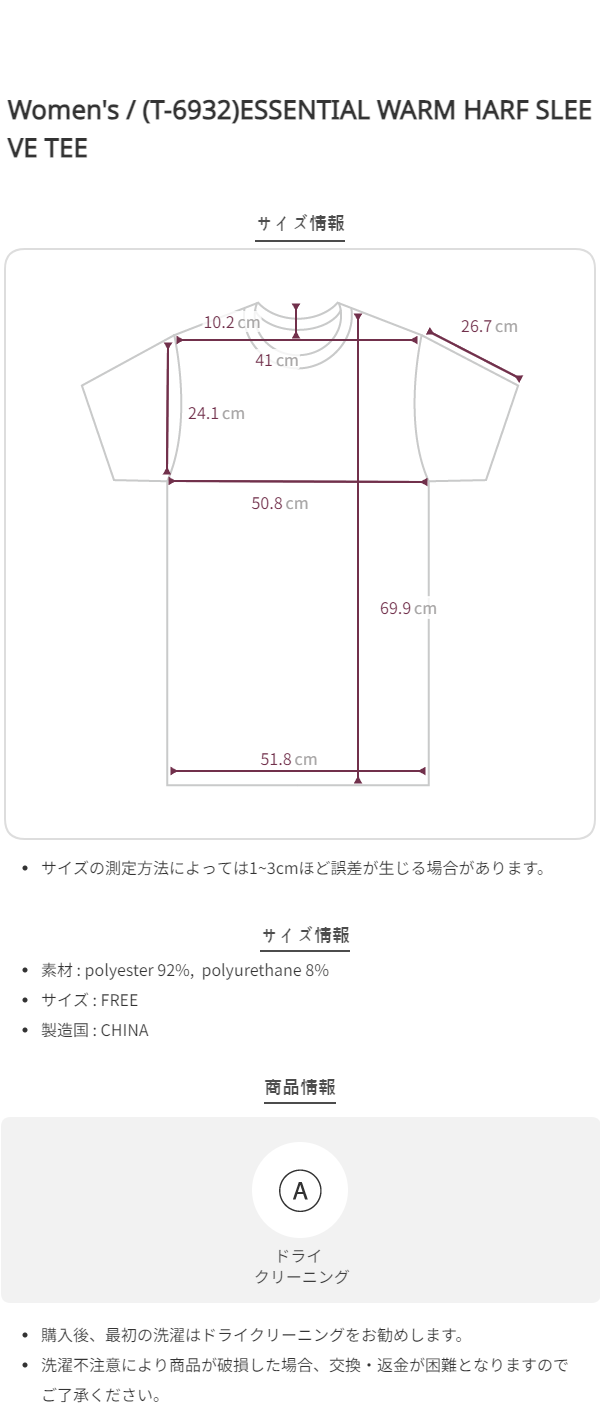 (T-6932)ESSENTIAL WARM HARF SLEEVE TEE