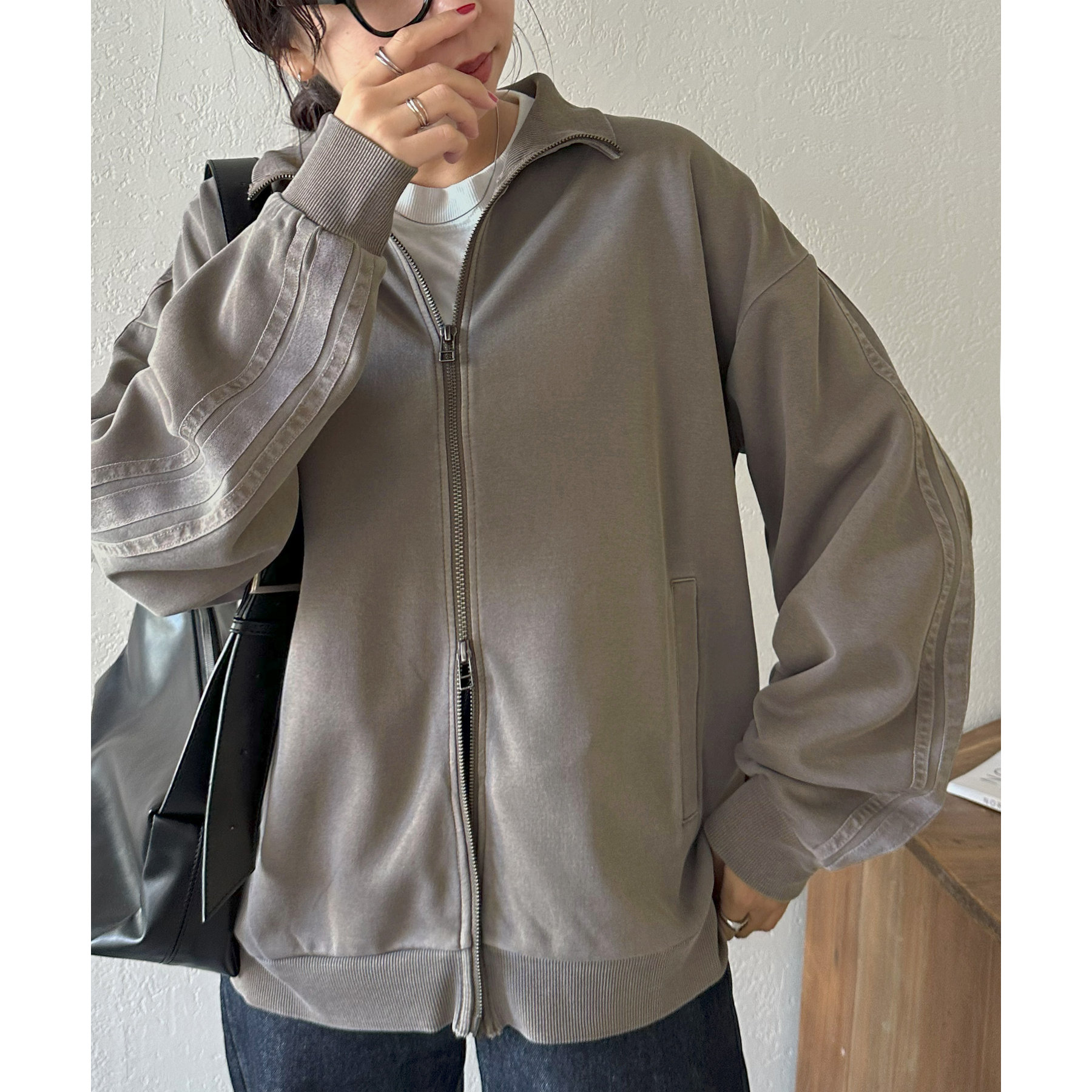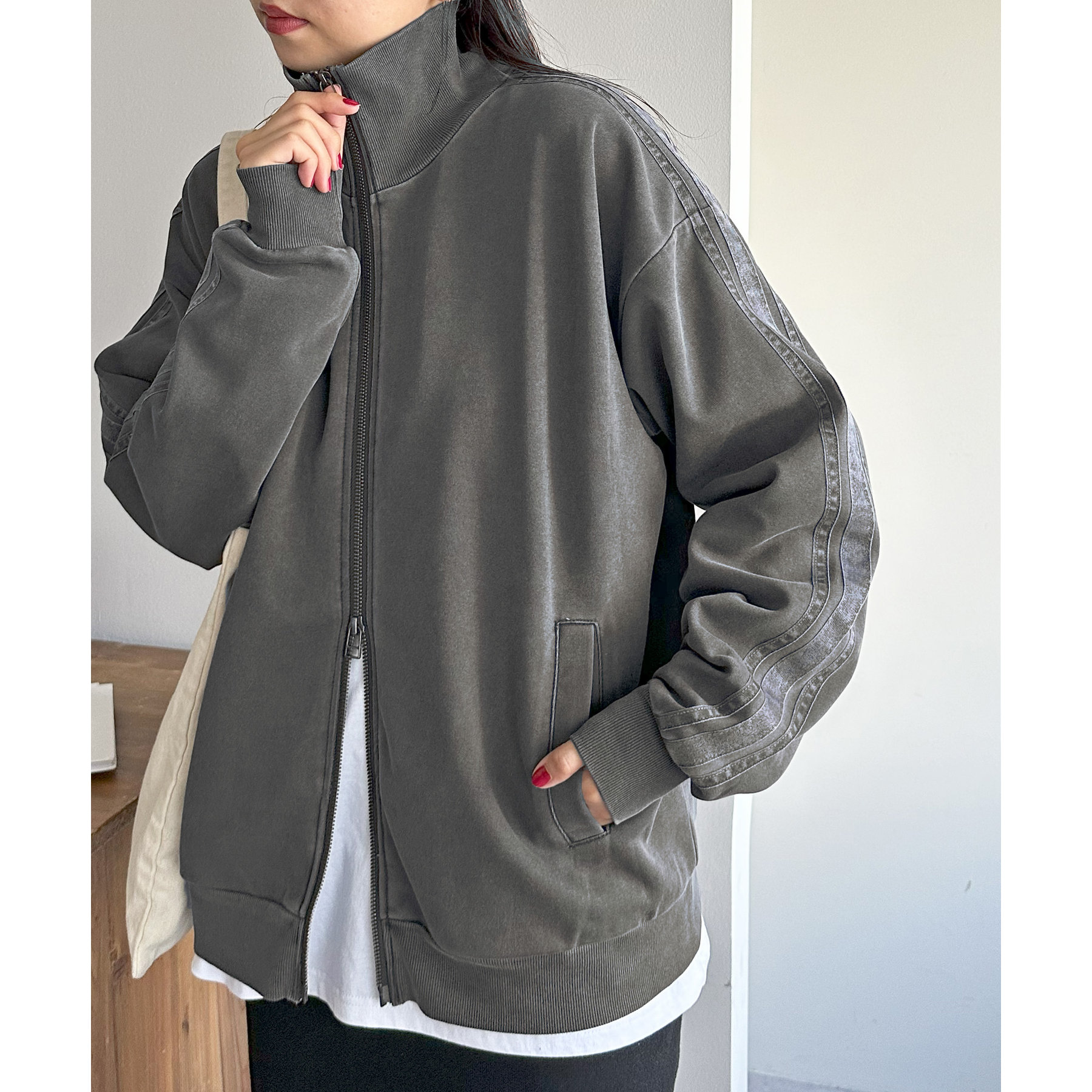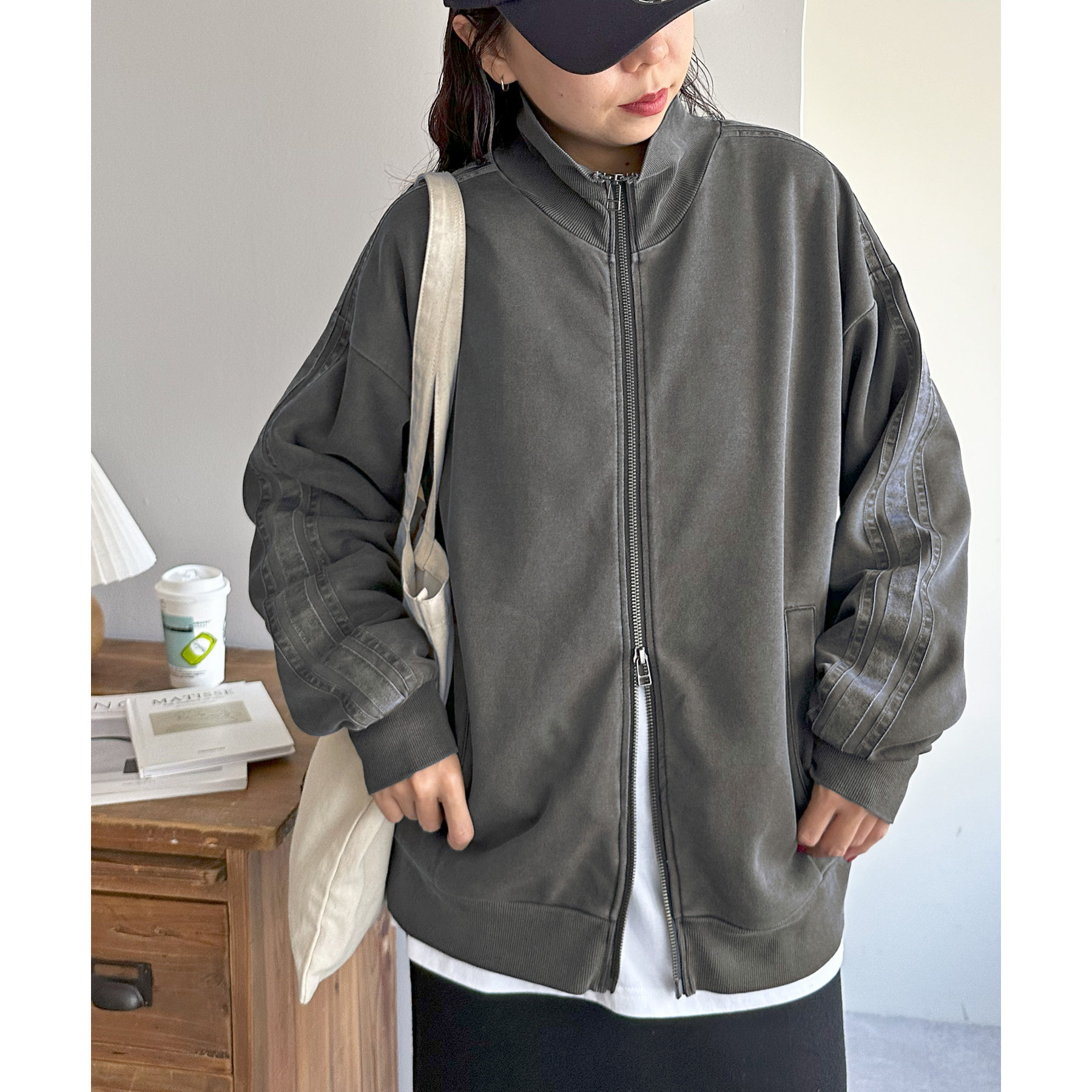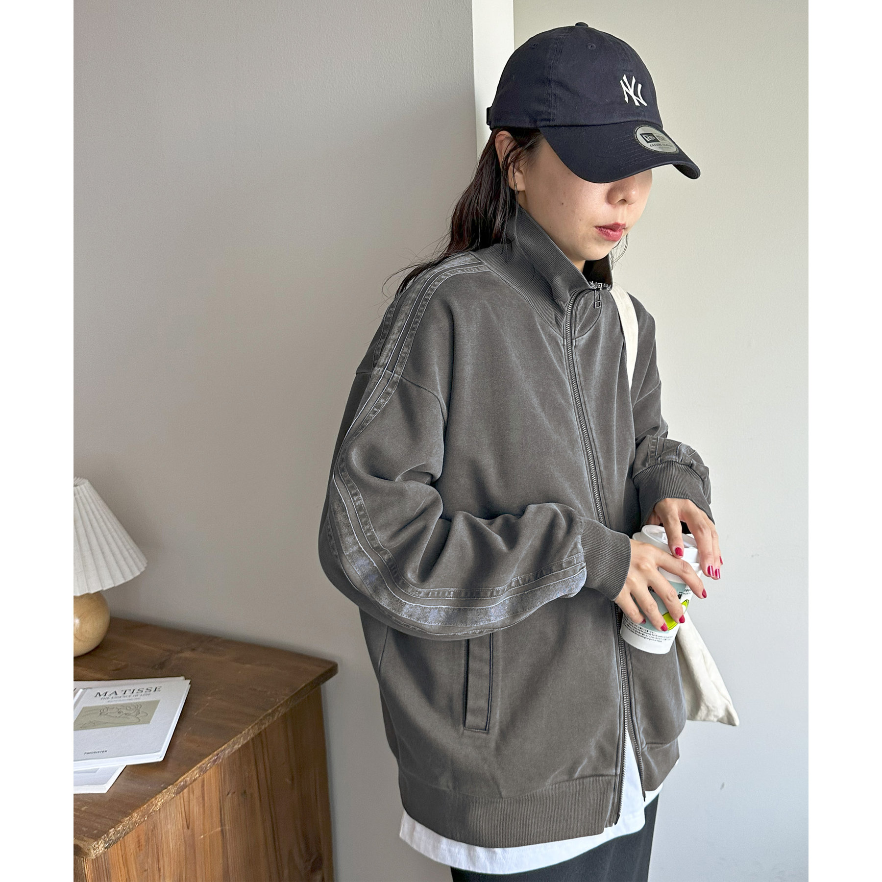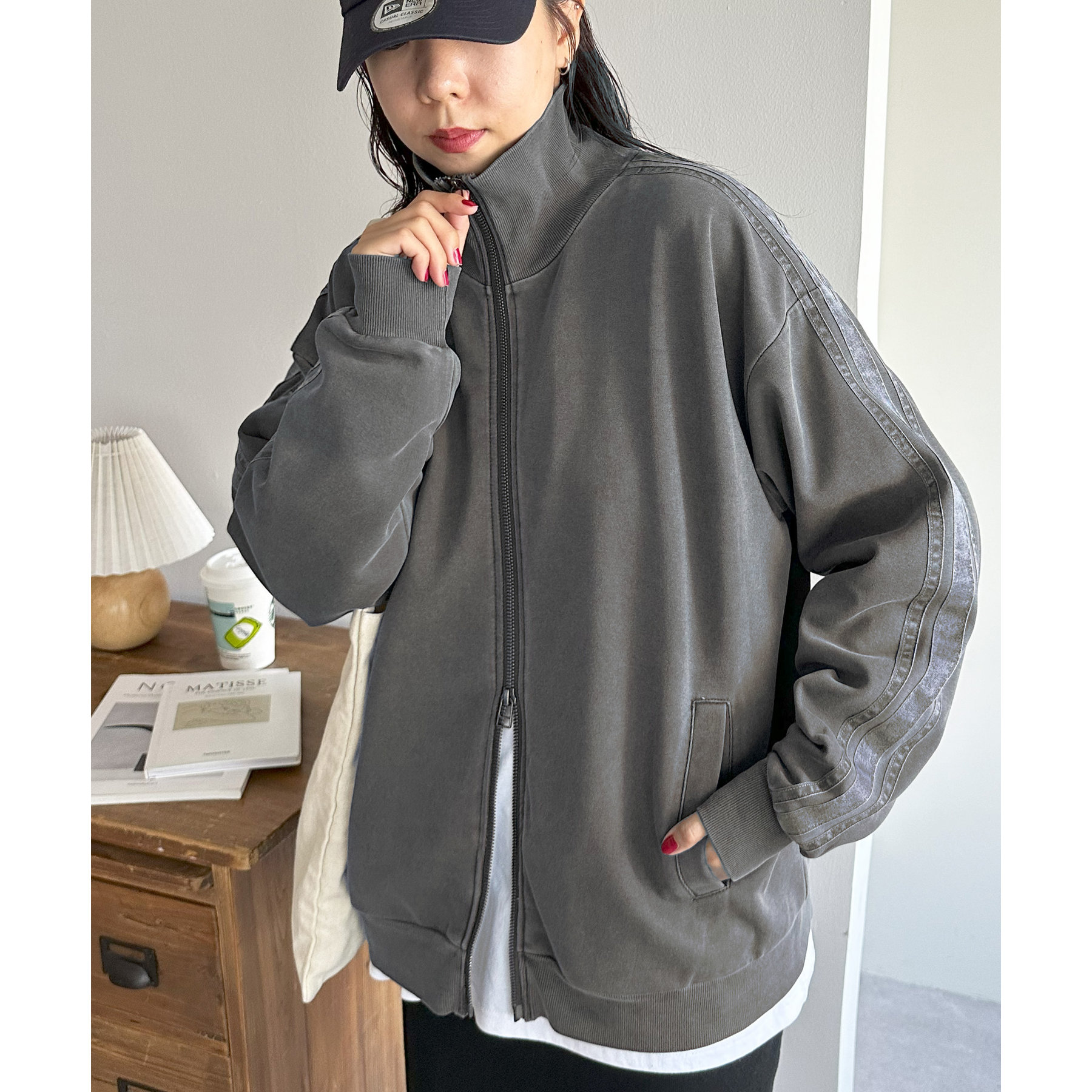 ピグメント加工を施したトラックジャケットは、どこか懐かしいヴィンテージ感のある雰囲気を楽しめます〇