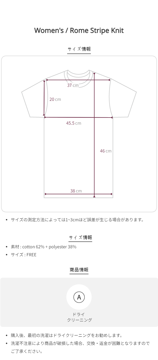 このブランドの商品はお客様の都合による交換および返品はお受けいたしかねます。 十分にご注意の上、ご注文をお願い致します。
