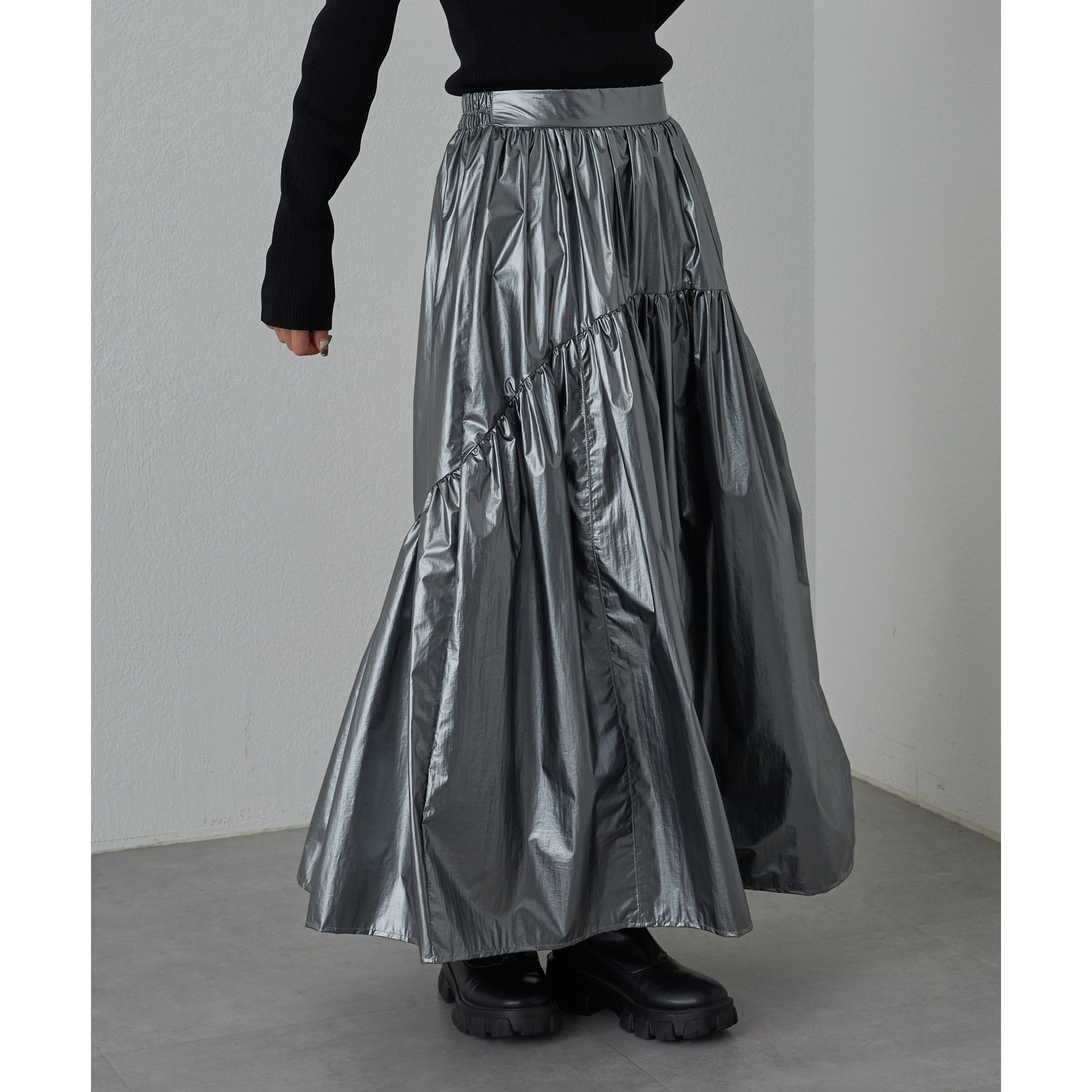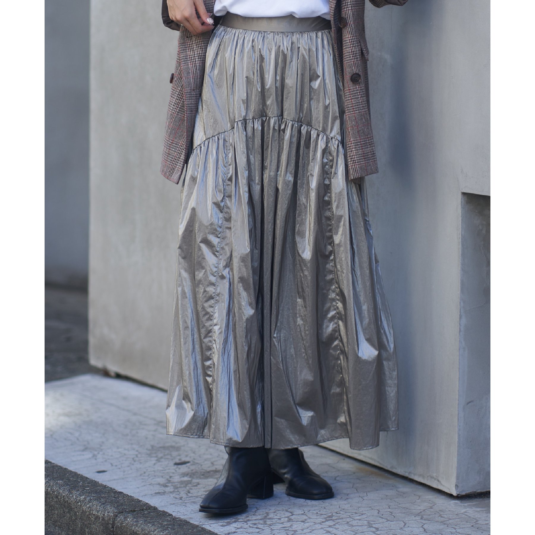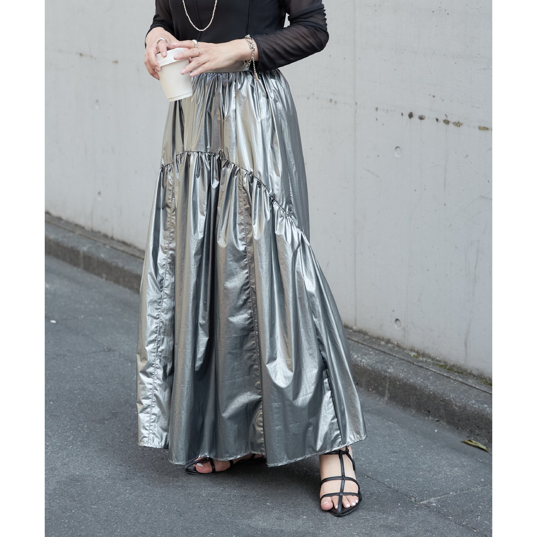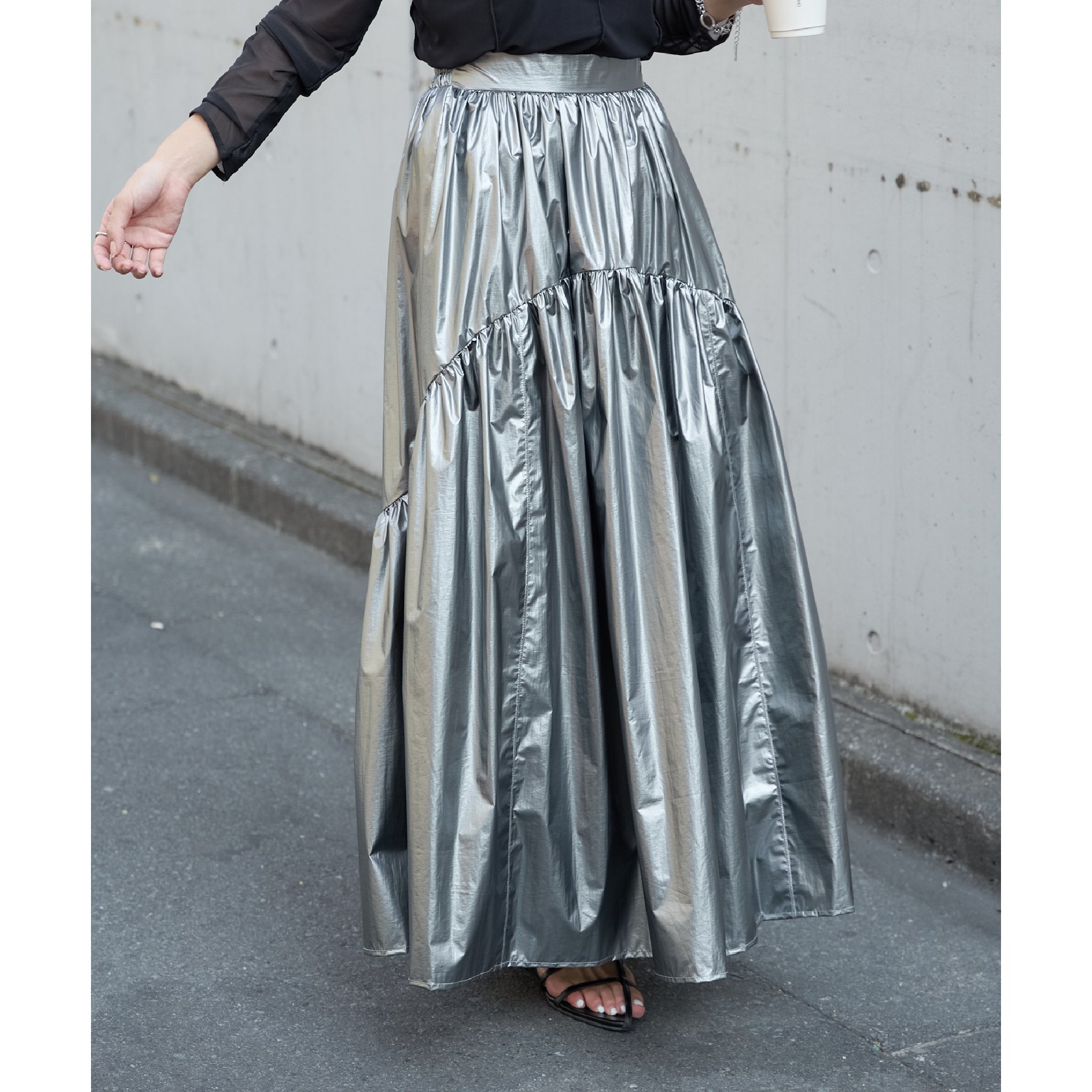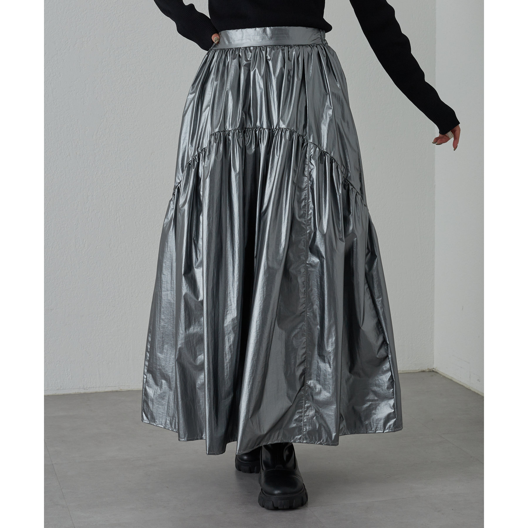 【着用動画あり】メタリックラウンドティアードスカート